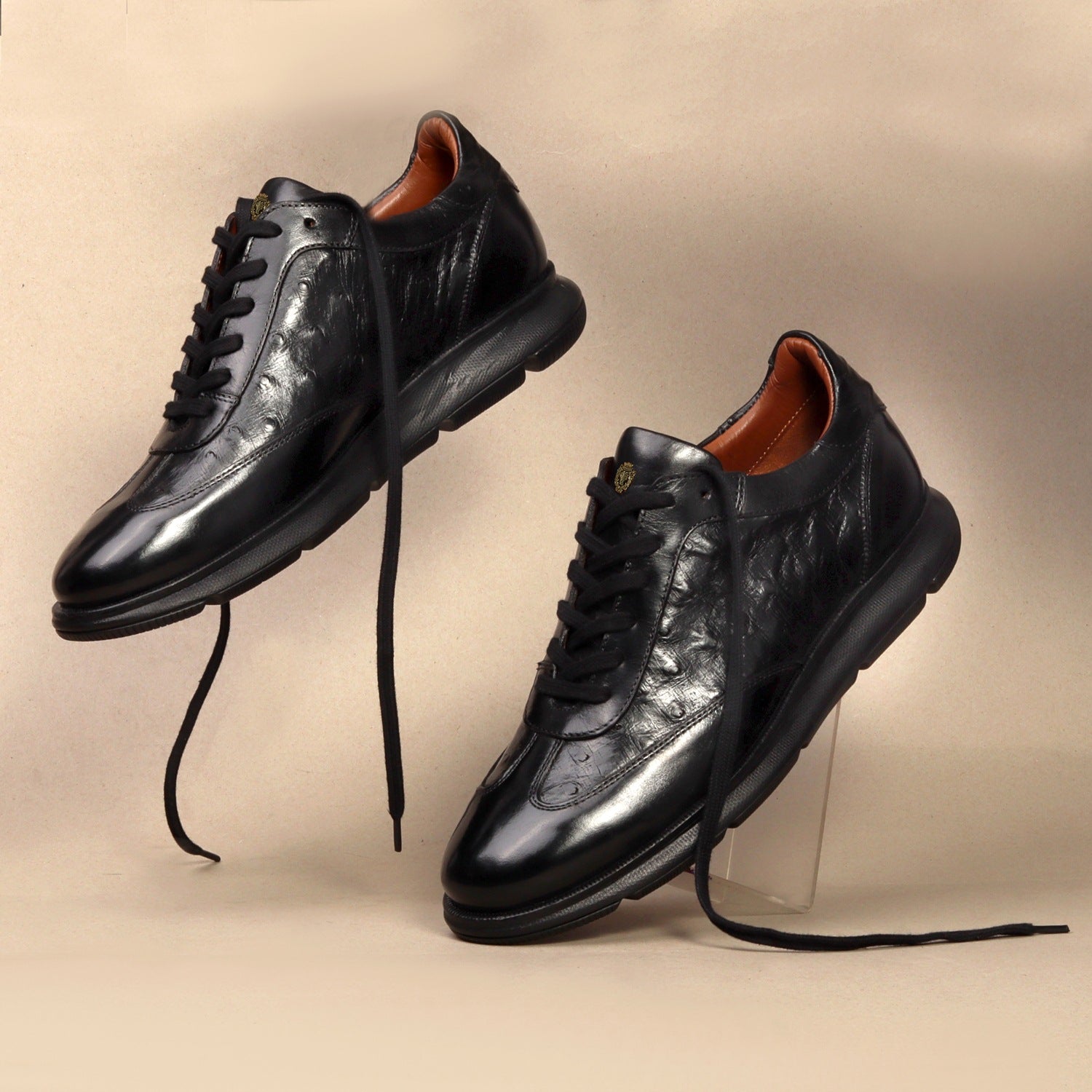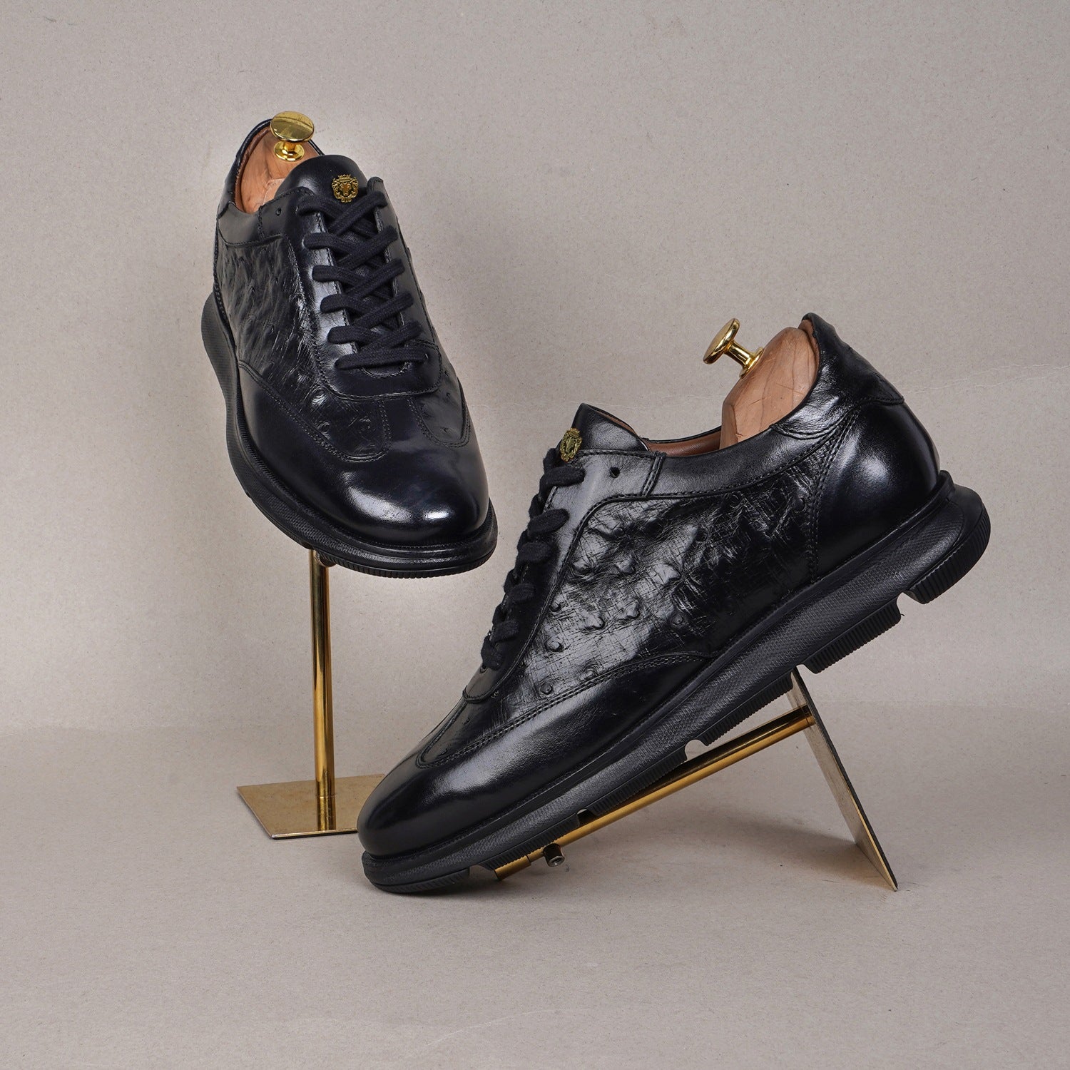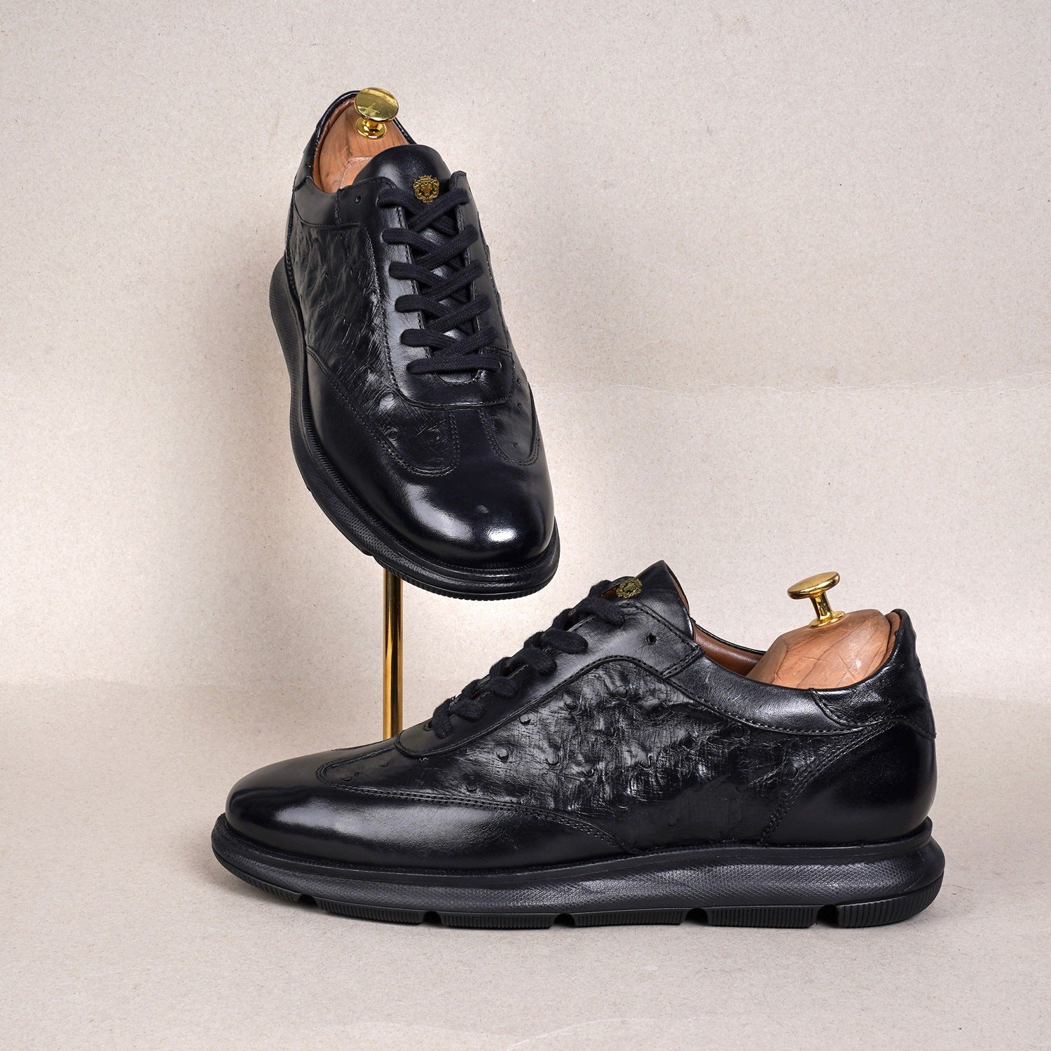 Black Ostrich Leather Light Weight Jogger By Brune & Bareskin