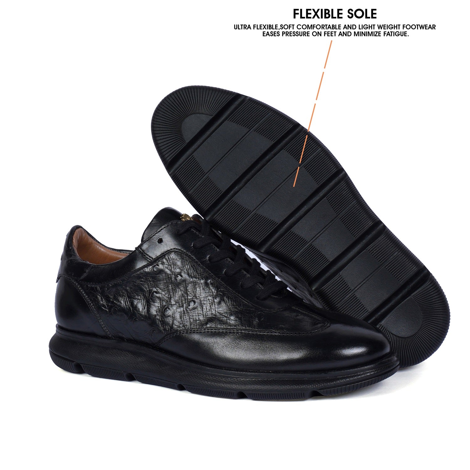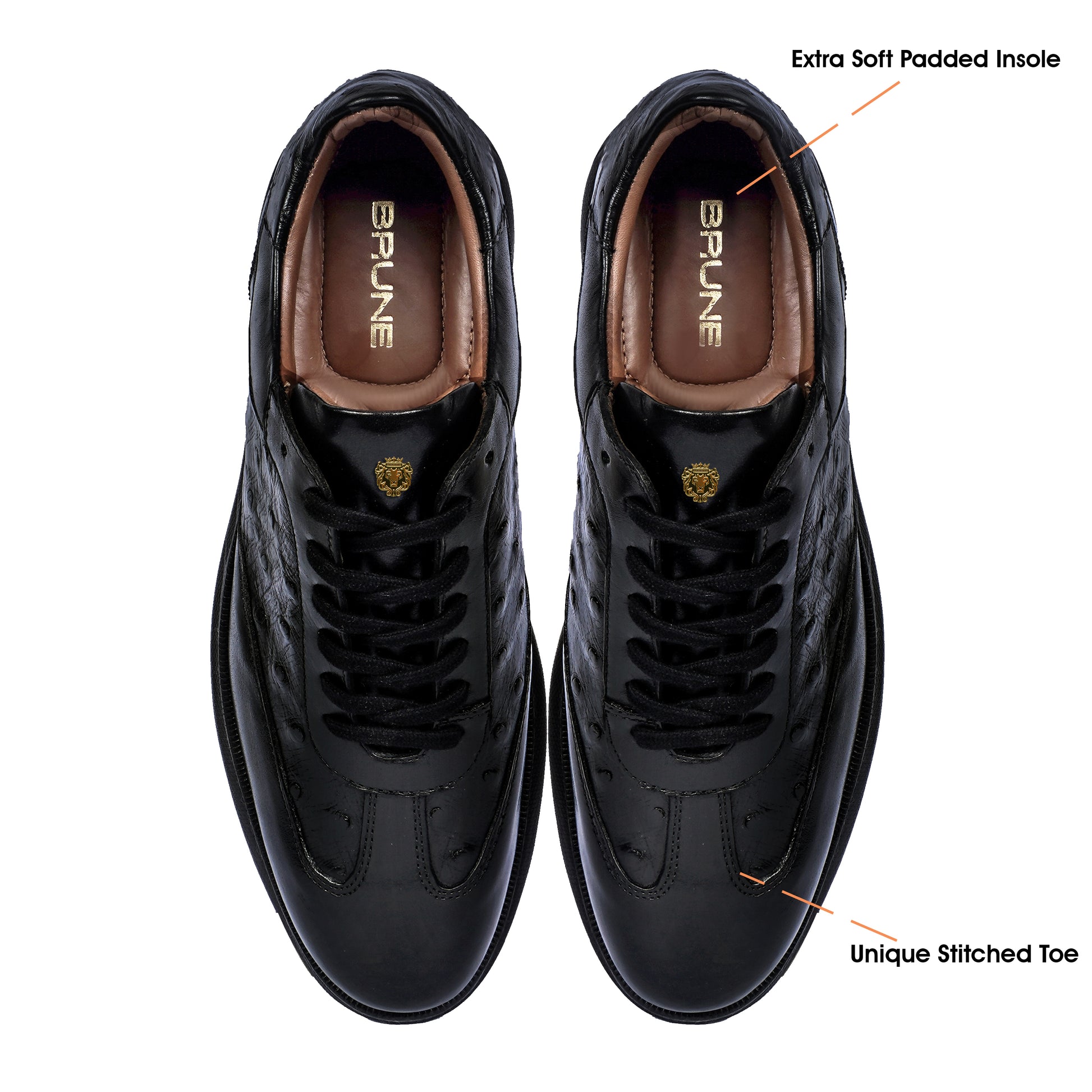Look no further than these Light Weight Mid-Top Sneakers from Brune & Bareskin. Handcrafted with premium quality genuine leather, these sneakers are not only light in weight but also super flexible and extremely comfortable. The unique fine line stitched Ostrich Leather add a touch of elegance, making them a versatile choice for any outfit. Whether you're going for a casual look or a more semi-formal one, these sneakers will provide the perfect fit with their oxford lace-up design. And with the anti-skid rubberized flat sole, you can walk confidently in any terrain. Upgrade your shoe game with these stylish and functional sneakers today!