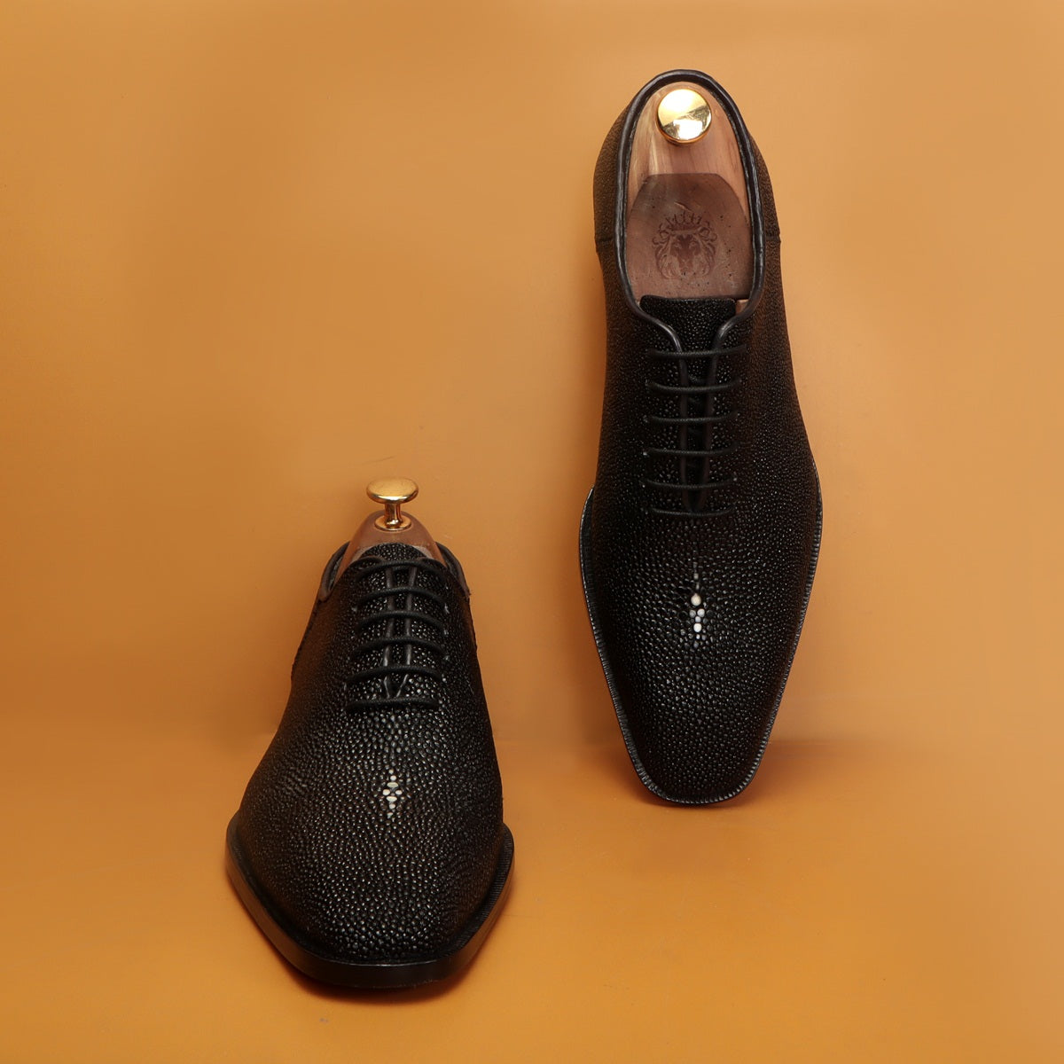 Black Oxfords Lace-Up Formal Shoes in Exotic Black Stingray Fish Leather
