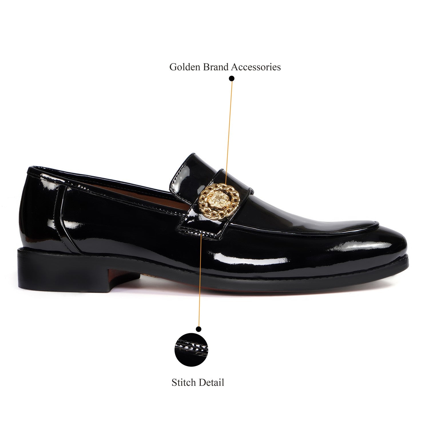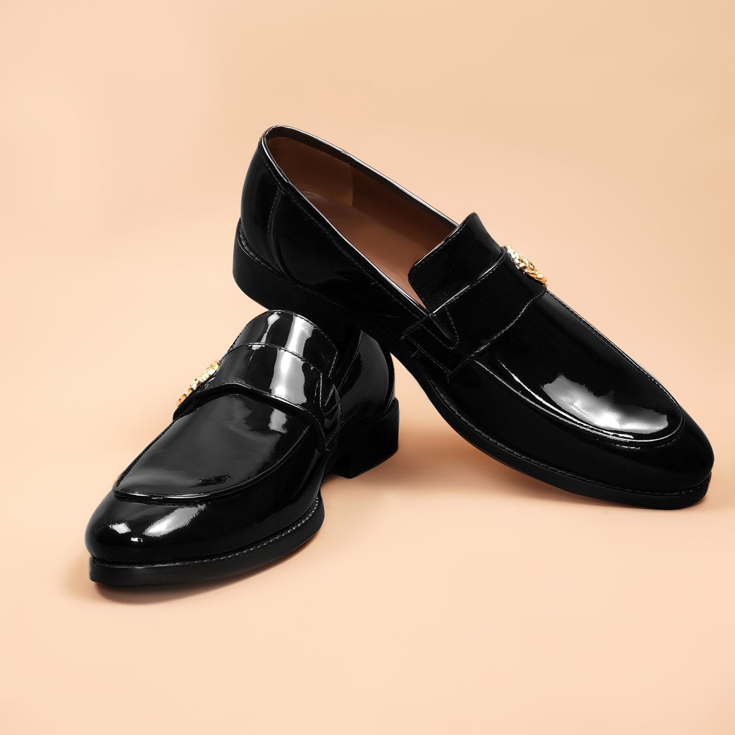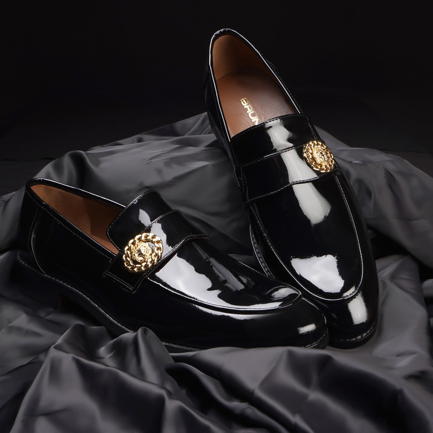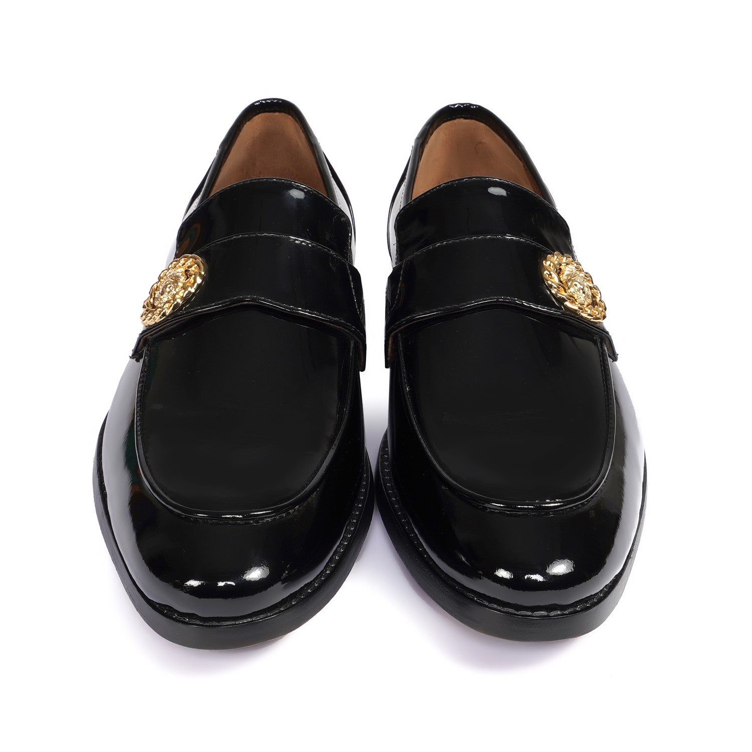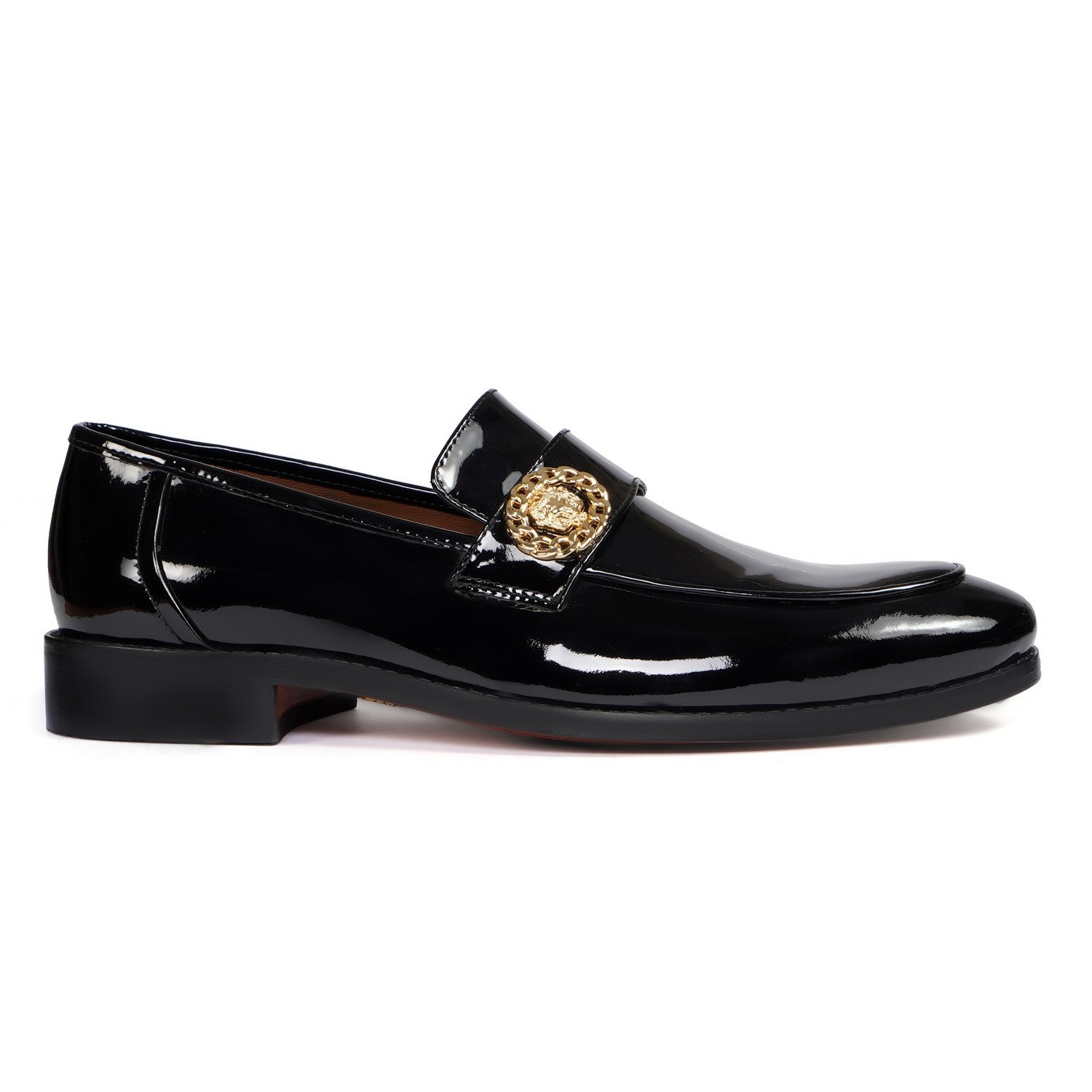 Black Patent Formal Slip on with Gun Metal Lion Logo