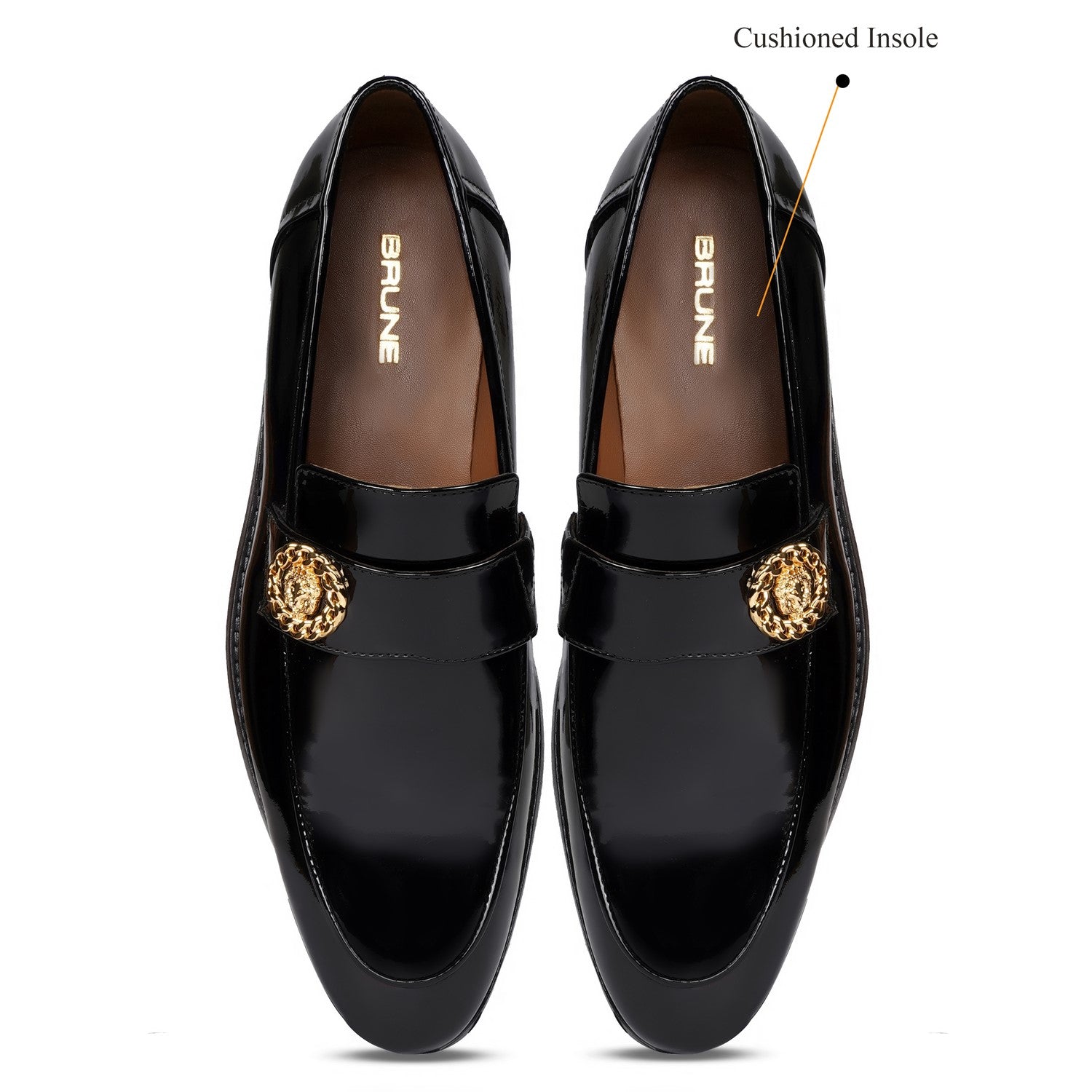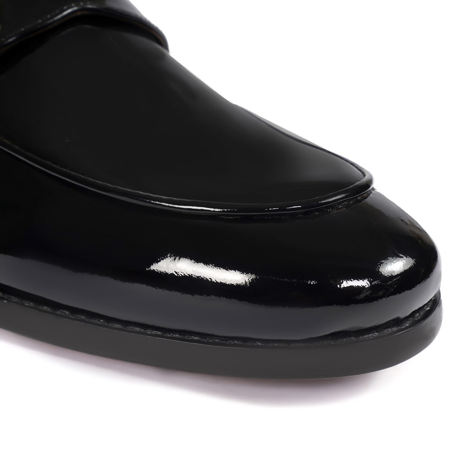 Get ready to make a bold statement with the Brune & Bareskin Black Patent Formal Loafer. These loafers are perfect for any party. The Italian-shaped squared apron toe adds a touch of sophistication, handcrafted by our expertise for a one-of-a-kind look. Step out in style with these leather-soled shoes.