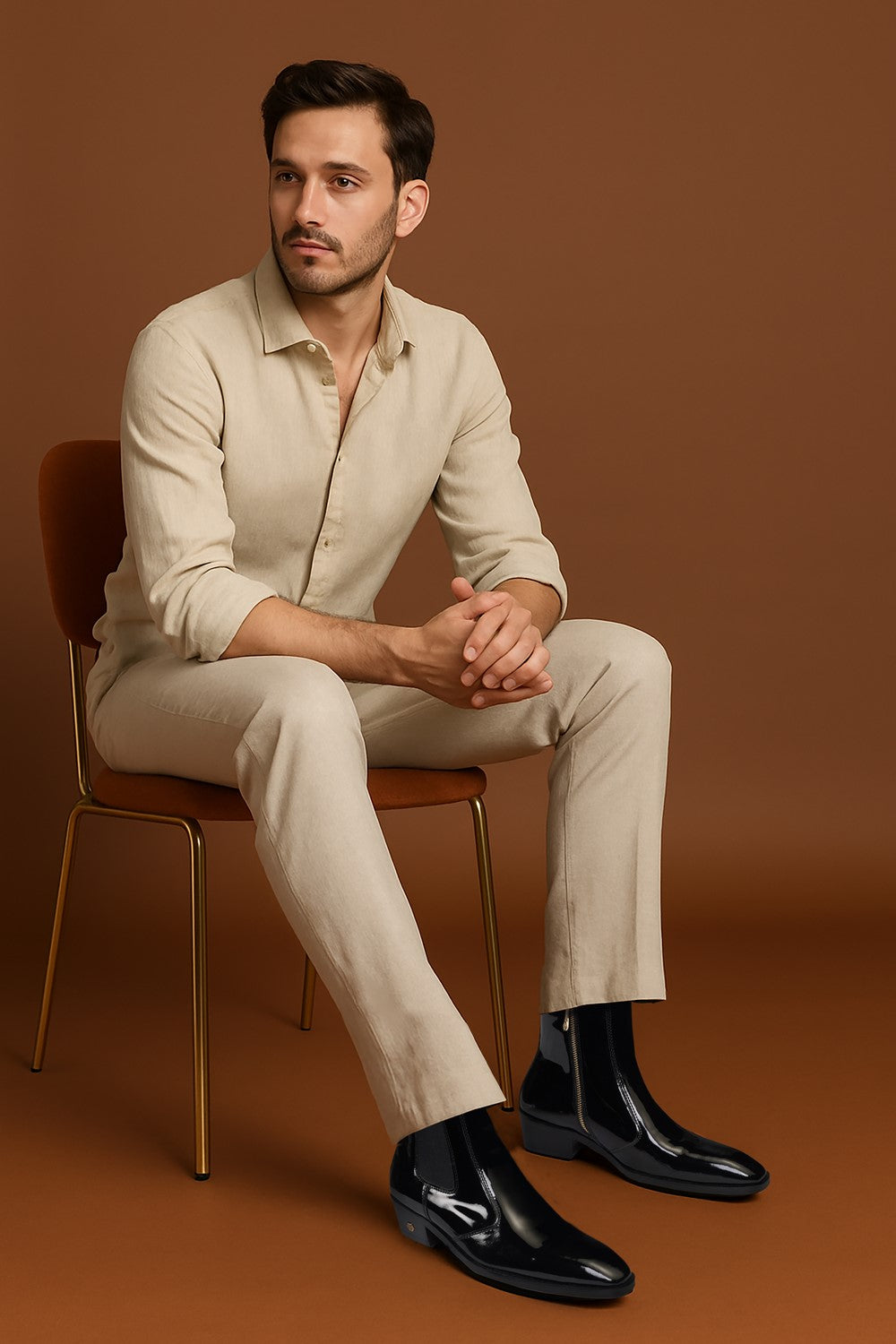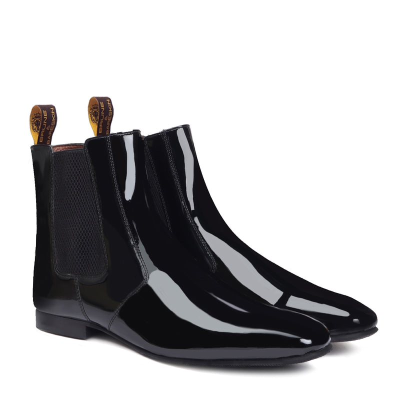 Black Patent Leather Cuban Boot with Elastic Closure