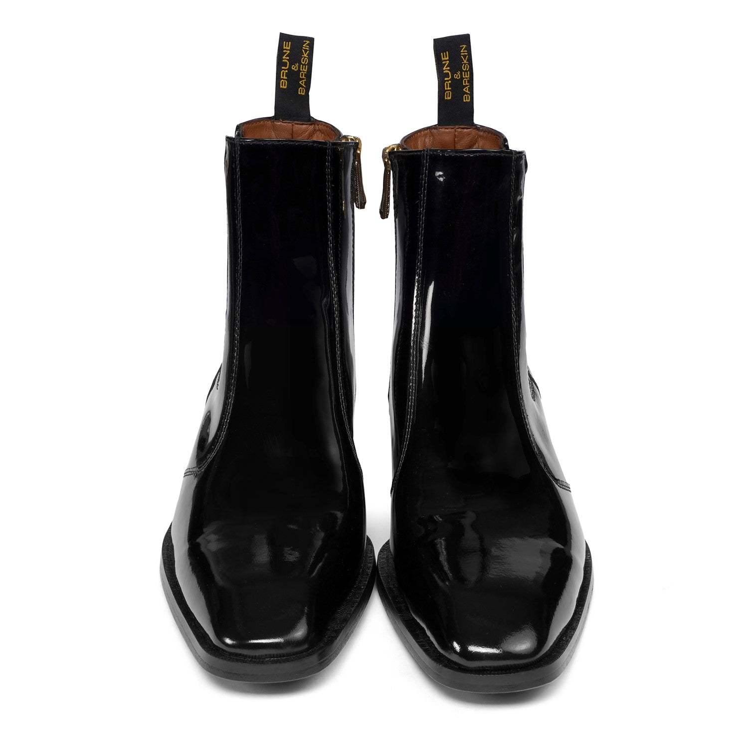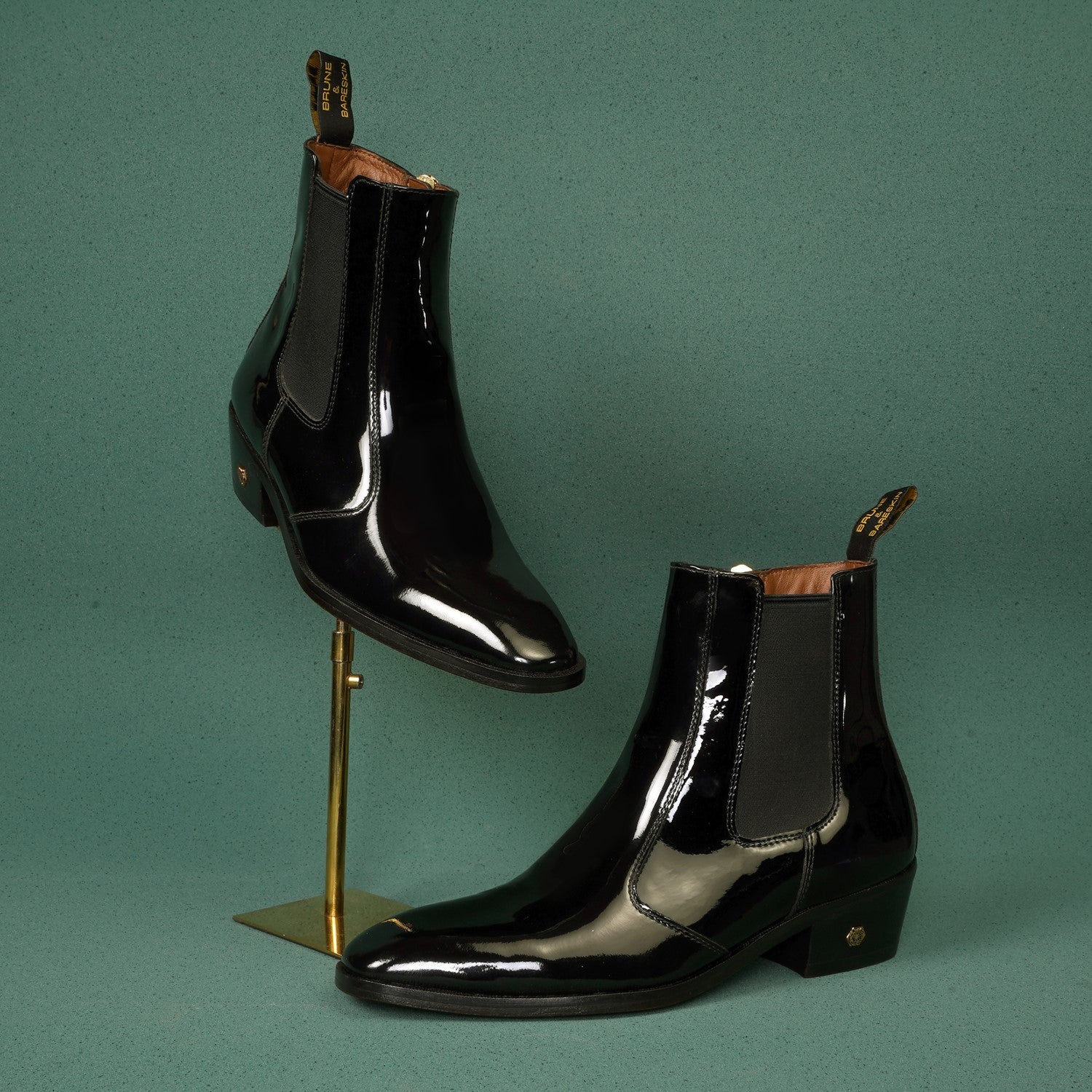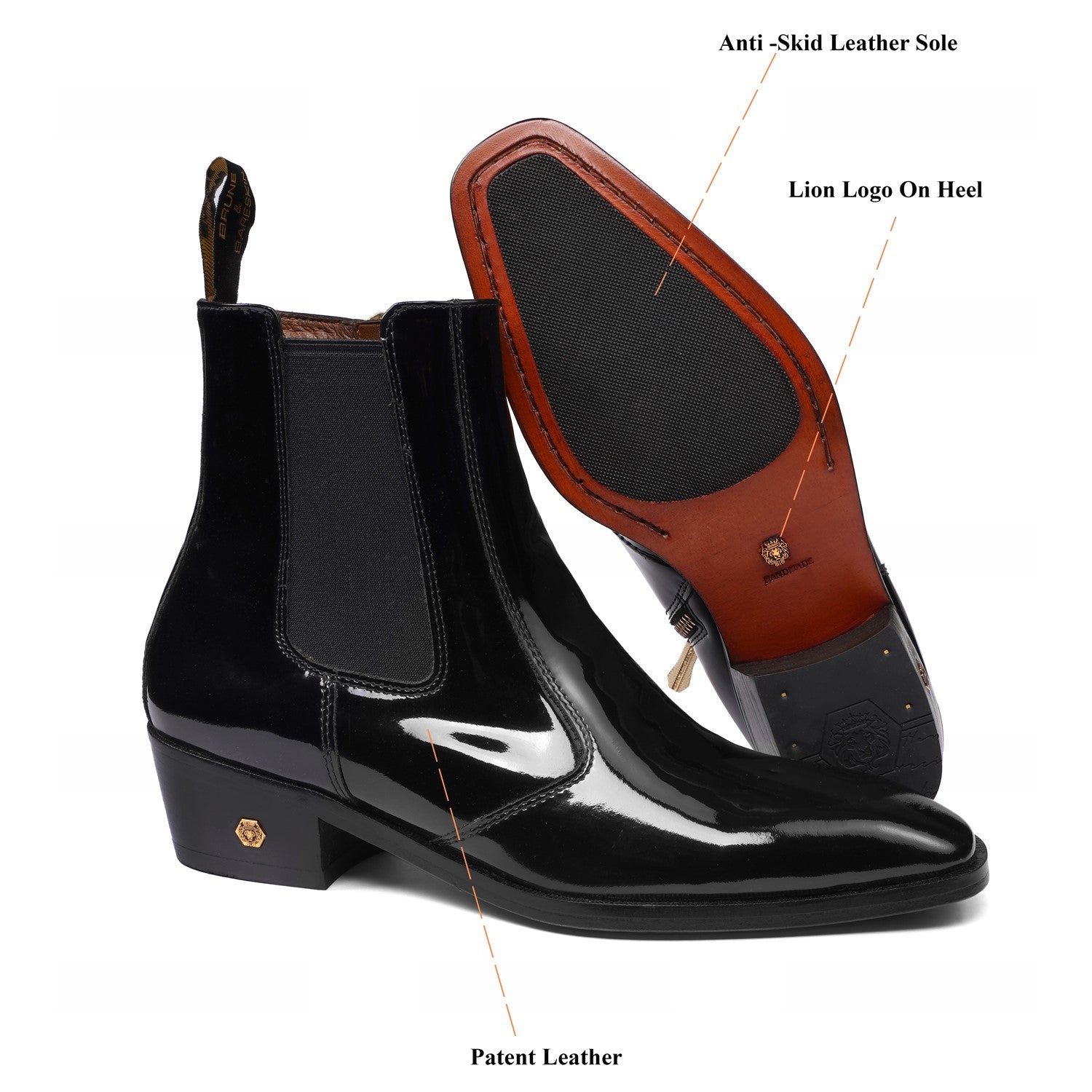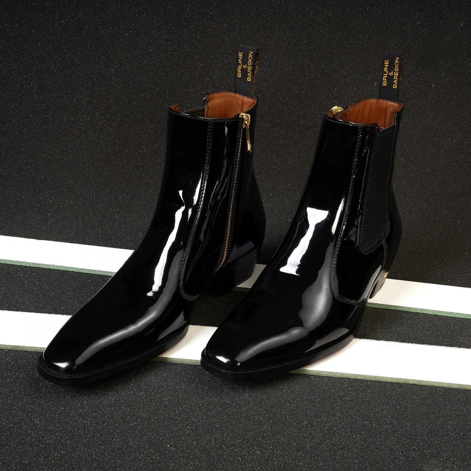 Add an elegant touch to any outfit with these Cuban black patent leather boots from the distinguished Brune & Bareskin Brand. With a convenient elastic closure and rubber sole, you'll be able to walk with ease throughout the party and wedding occasions you attend. An elastic pocket provides a secure fit while the smooth patent leather finish will make you stand out from the crowd.