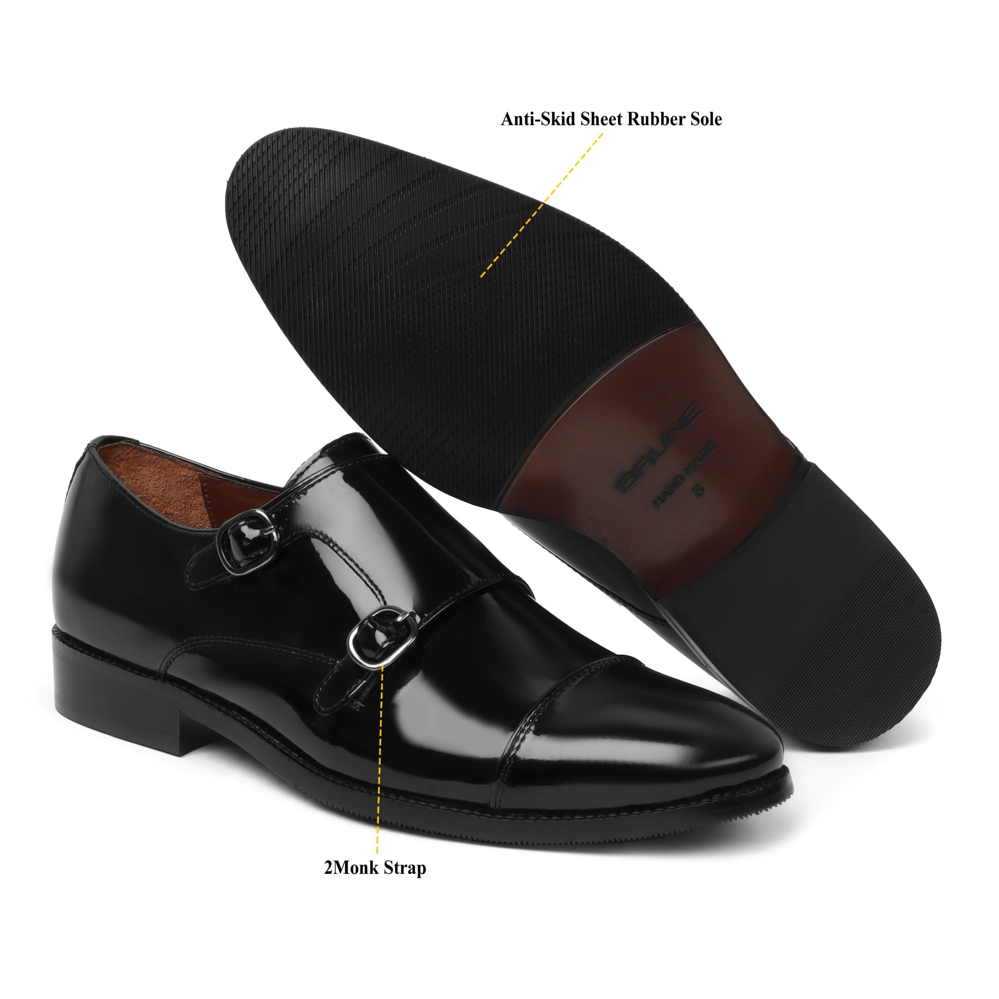 Black Patent Leather Rounded Cap Toe Double Monk Strap Formal Shoes By Brune & Bareskin