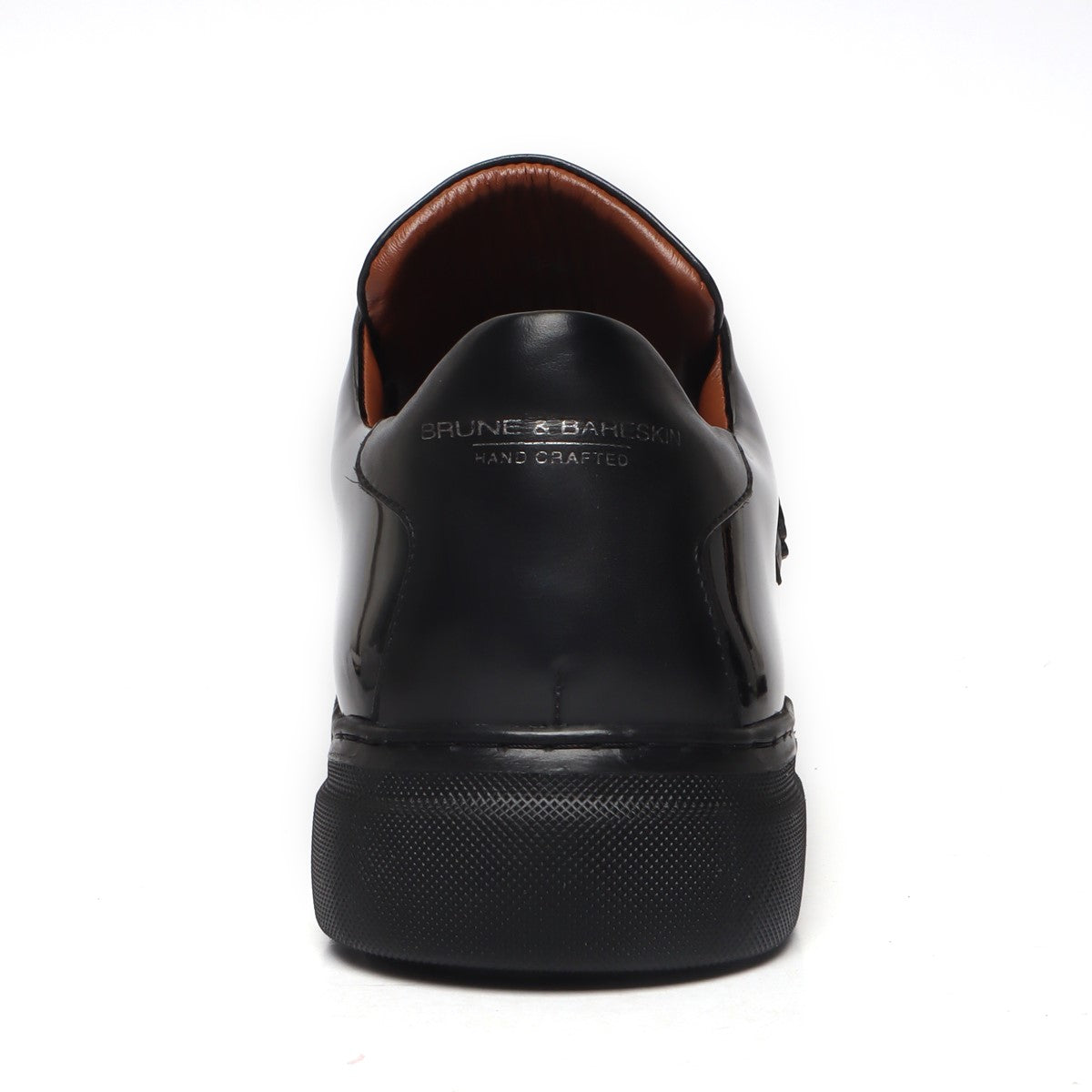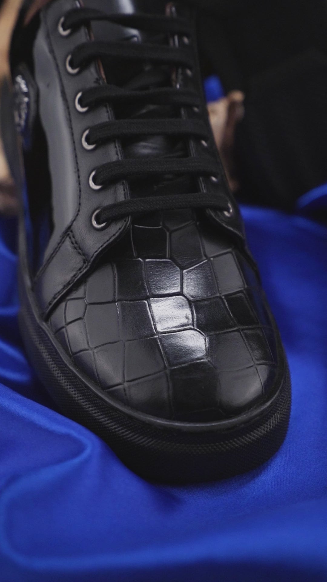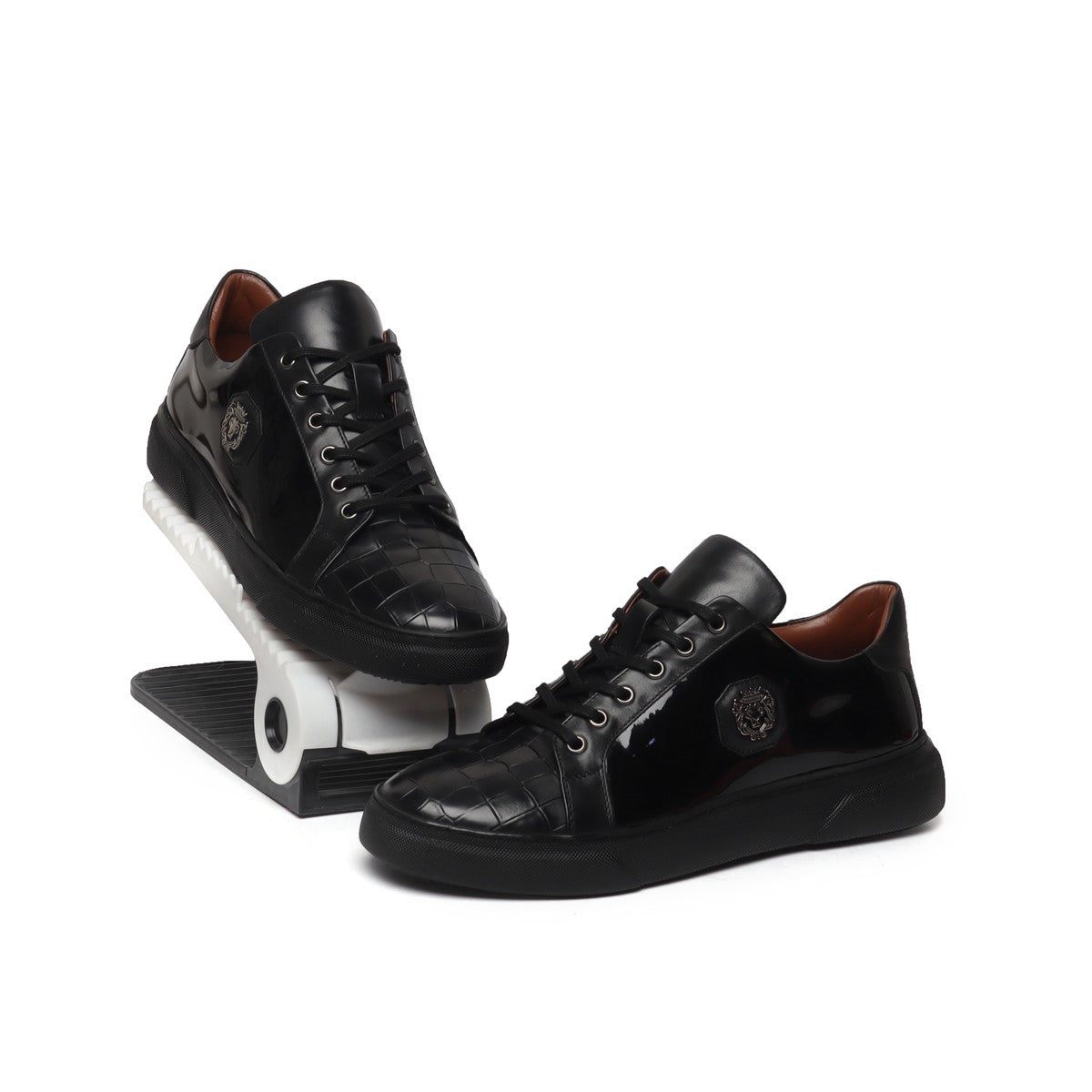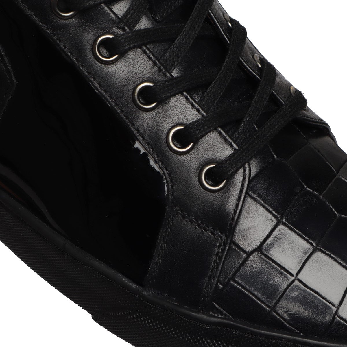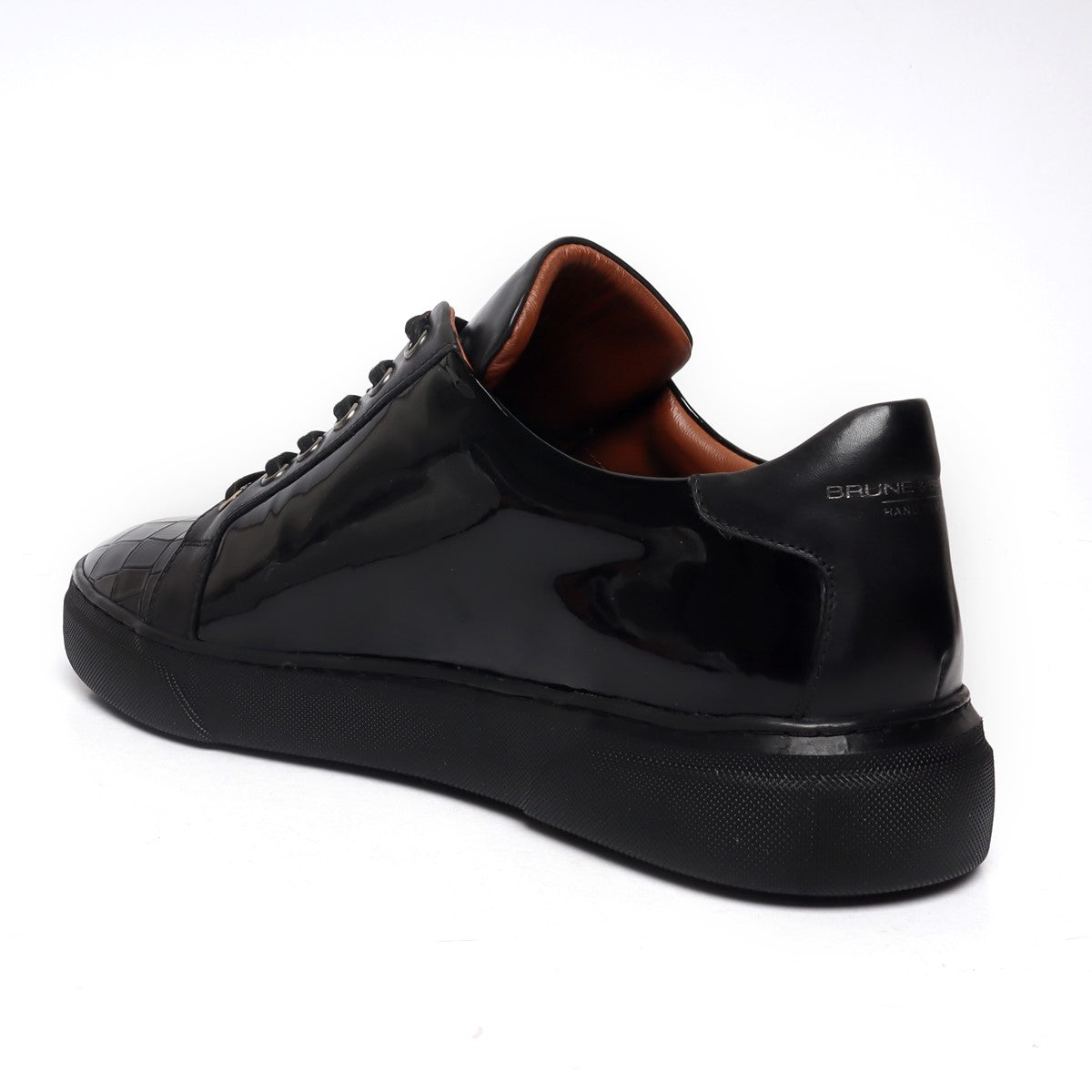 Black Low-Top Sneakers Patent with Deep Cut Croco Toe Leather