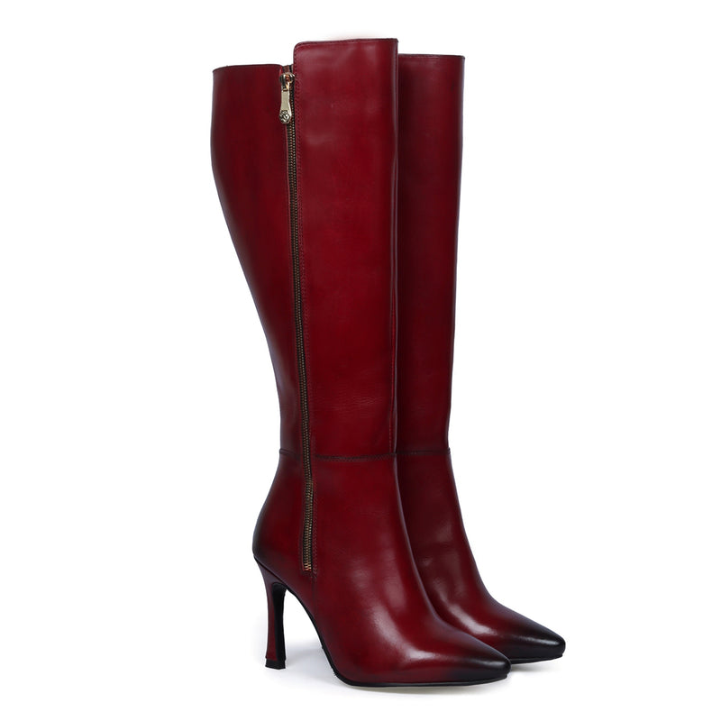 Ladies Stiletto Pencil Heel Boots Black Pointed Toe Zip Closure Knee Heights Leather By Brune & Bareskin
