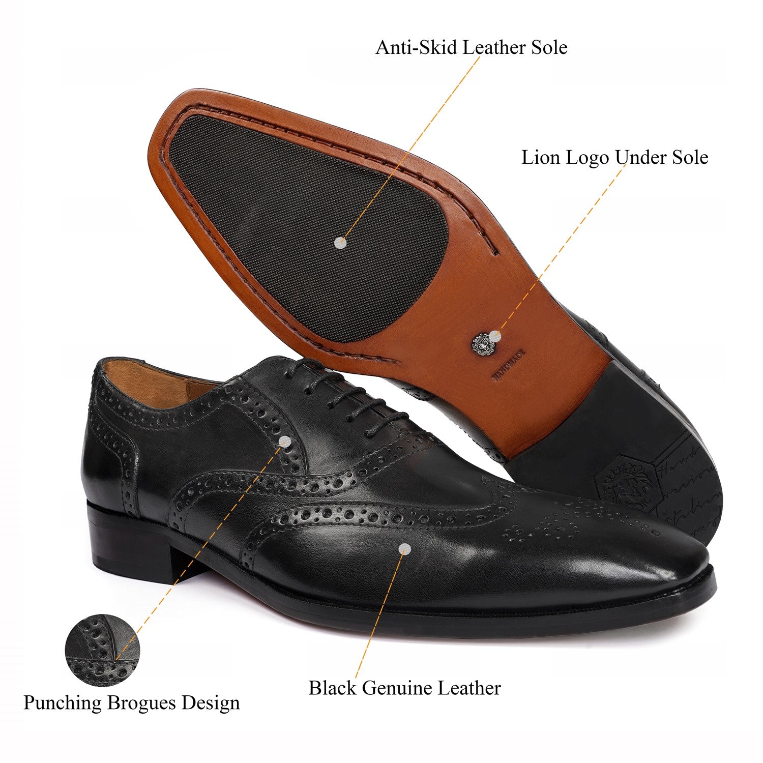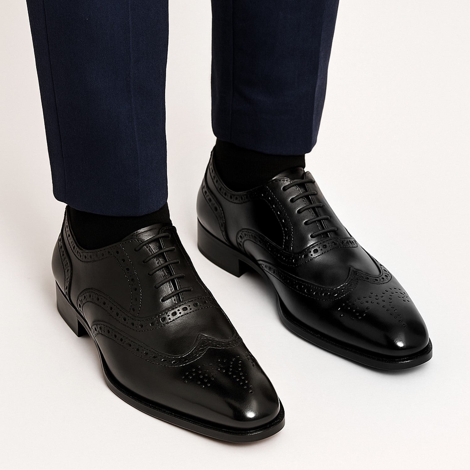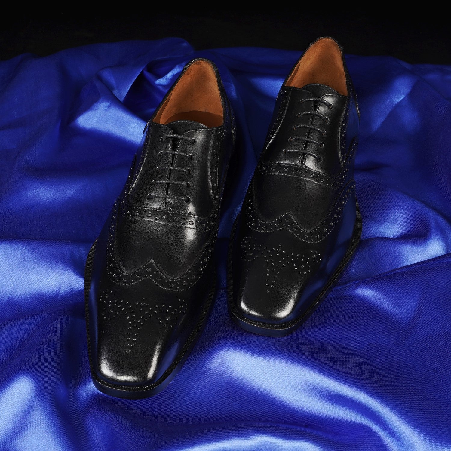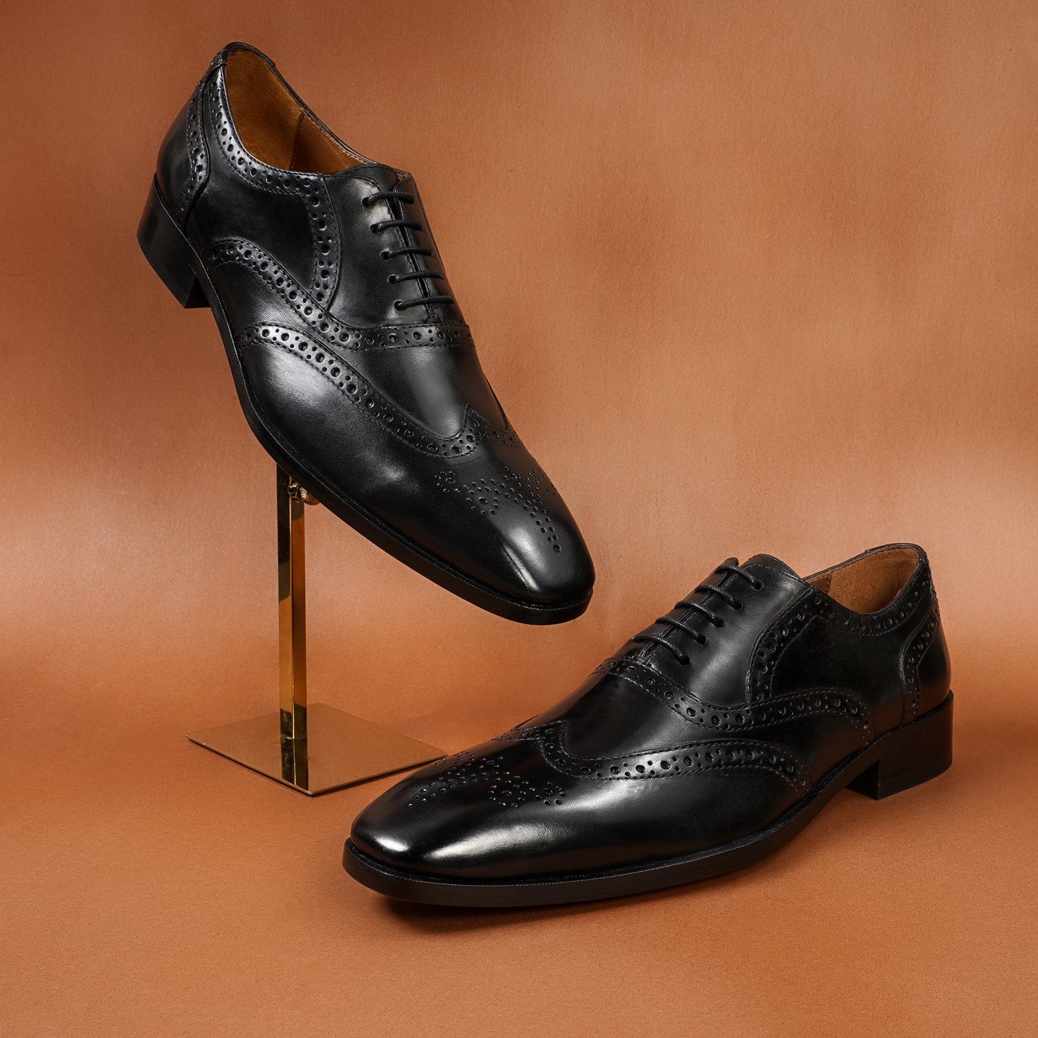 Black Punching Brogues Oxford Lace-Up Leather Shoes