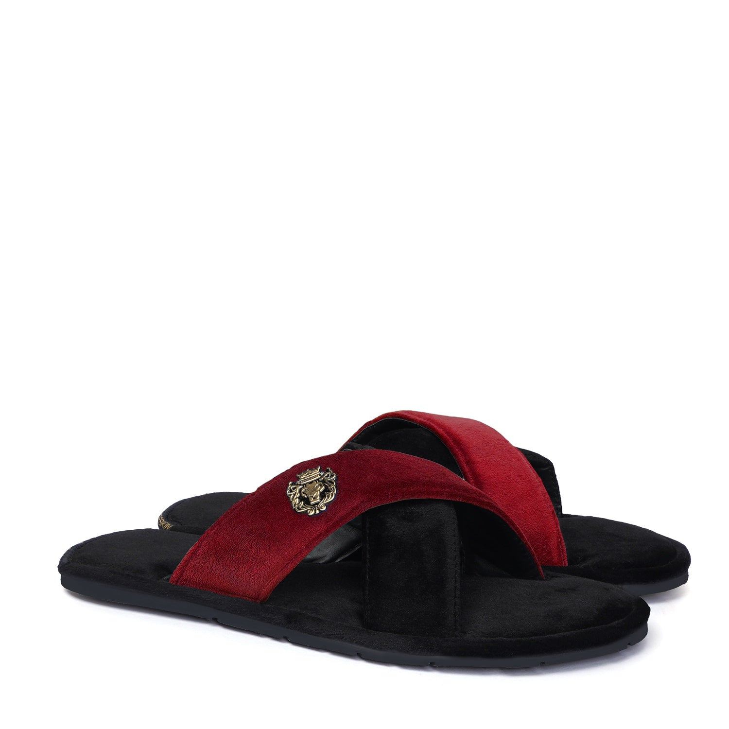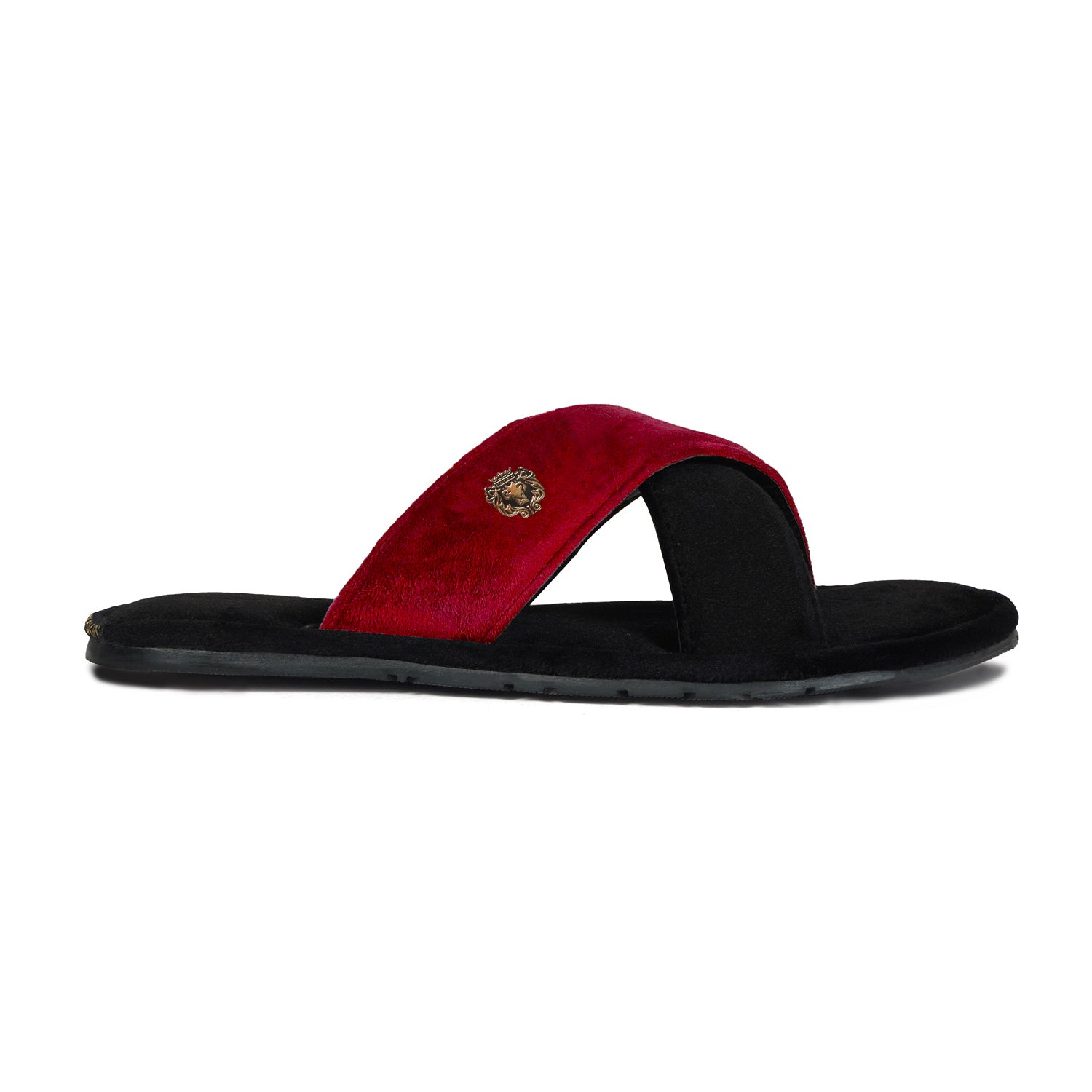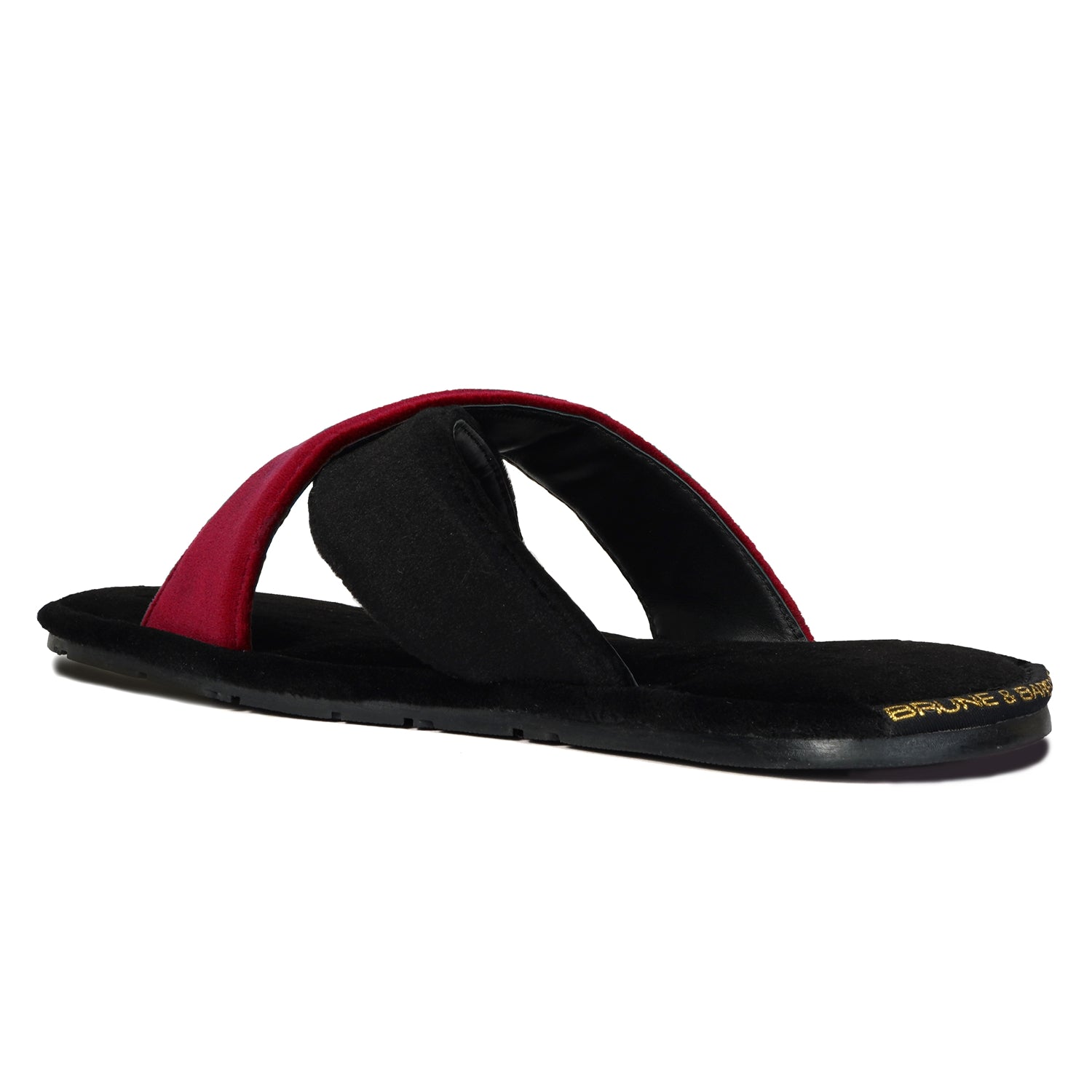 Red and Black velvet cross strap sliders are must-have footwear this season. These super-soft velvet base slippers are a must-have of the season. The gel injected memory foam base is designed to provide you comfort while walking. We use special layering techniques to keep the base cozy and retain its shape. The wider cross-design straps with BRUNE & BARESKIN Lion Logo enhance the elegance further. Carry these with Jeans, Shorts, Capris, and other casual wear to be a style leader. Anti-Skid Rubber outer sole ensures the perfect walking grip.
