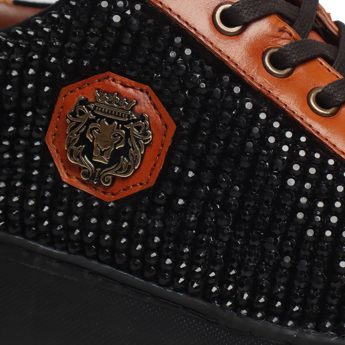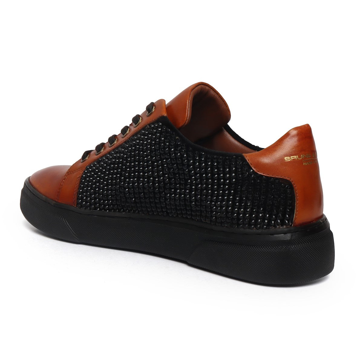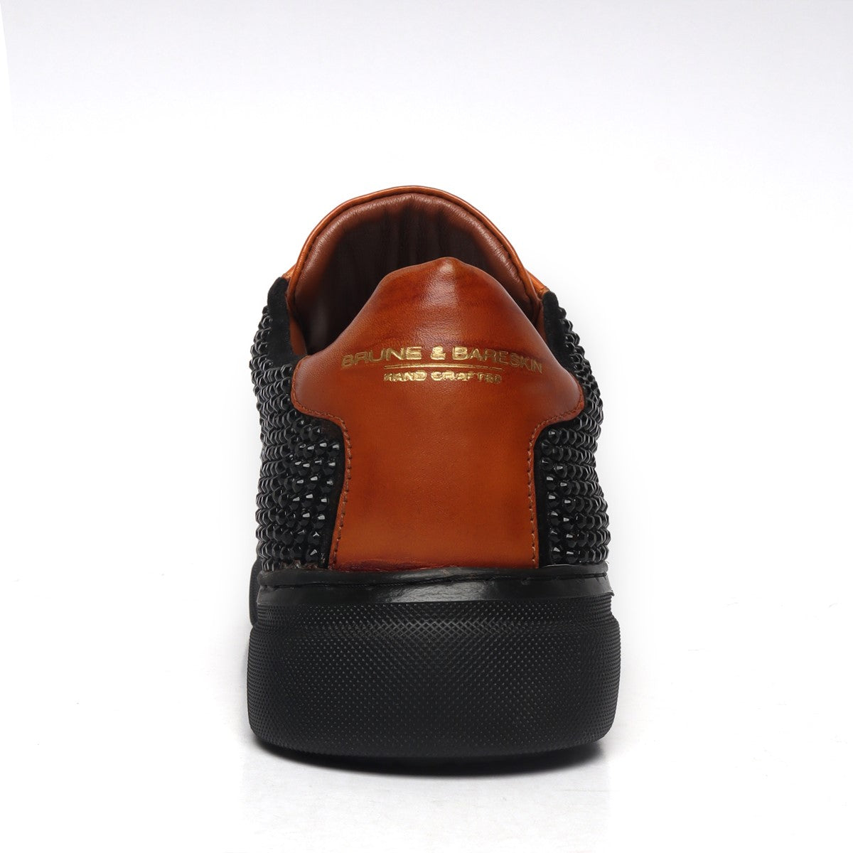 Low Top Sneakers Black Rhinestones Tan Leather by Brune & Bareskin