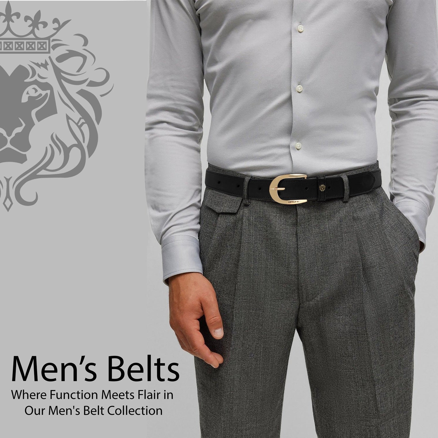 Infuse sophistication into your formal attire with our Black Semi-Formal Belt. Made from high quality genuine leather, this hand painted belt features an oval shaped Golden finish buckle with a Micro Size Lion logo, adding a touch of elegance to any outfit. Designed by Brune & Bareskin, this men's belt is the perfect accessory for a polished and refined look.