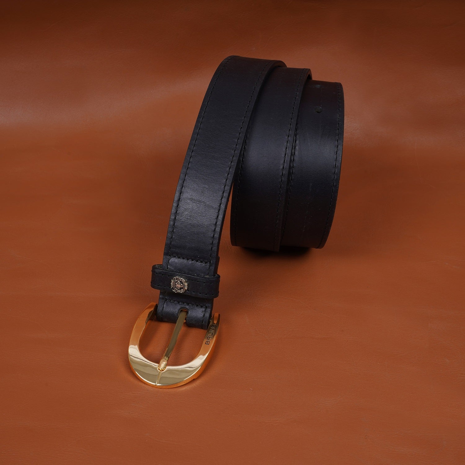 Black Semi-Formal Belt with Oval Shape Golden Buckle