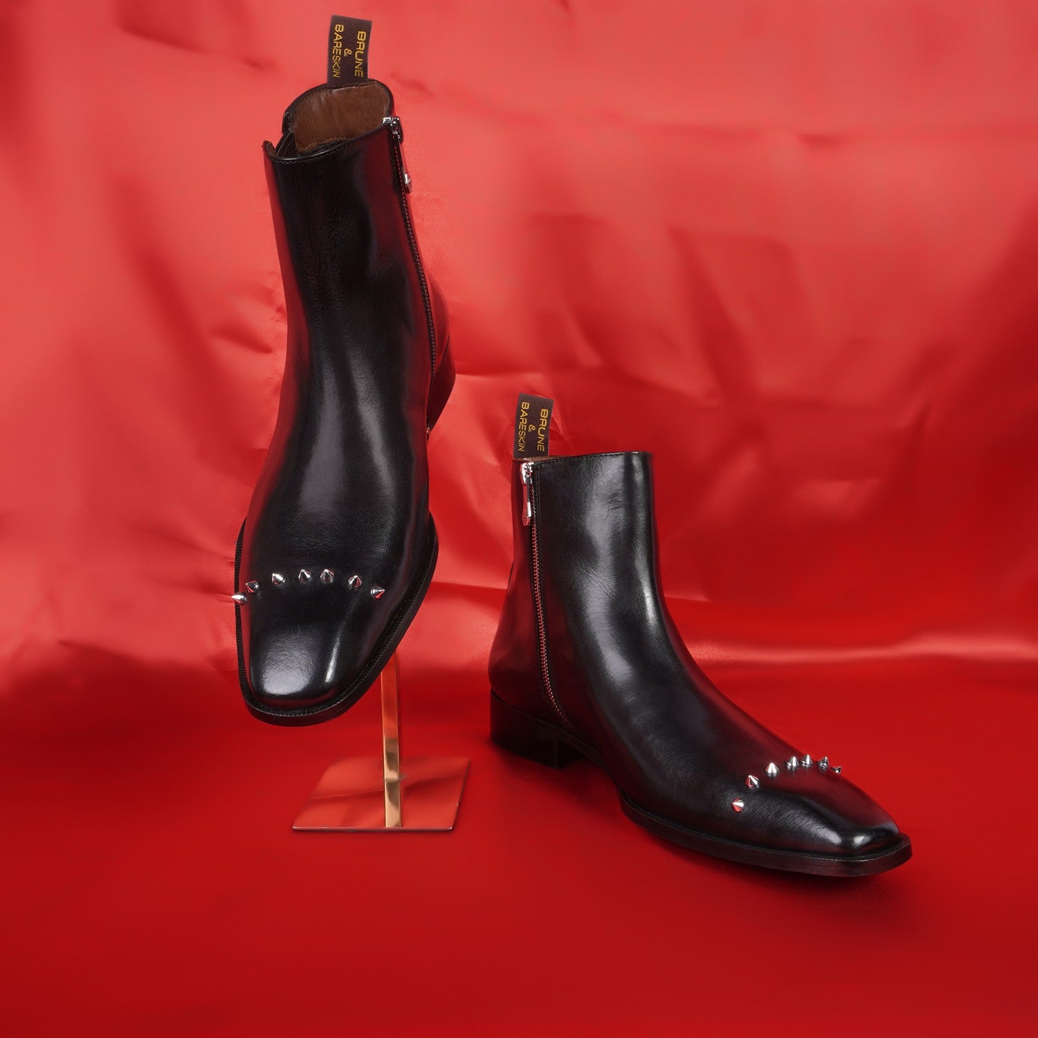 Black Silver Studded Chelsea Boots by Brune & Bareskin
