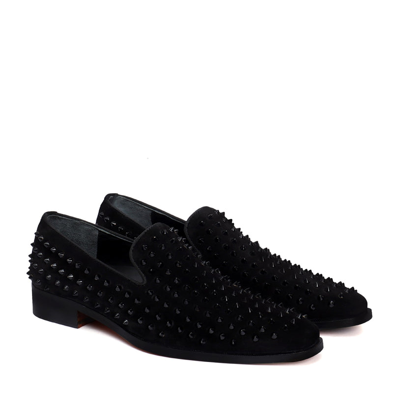 Black Studded Sleek Toe Italian Velvet Loafer For Men by Brune & Bareskin