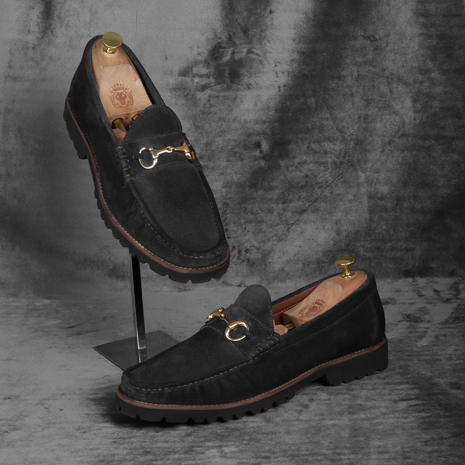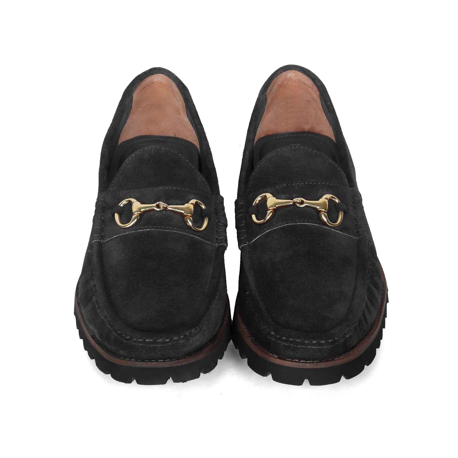 Black Suede Chunky Sole Leather Loafers With Horse-bit Buckle