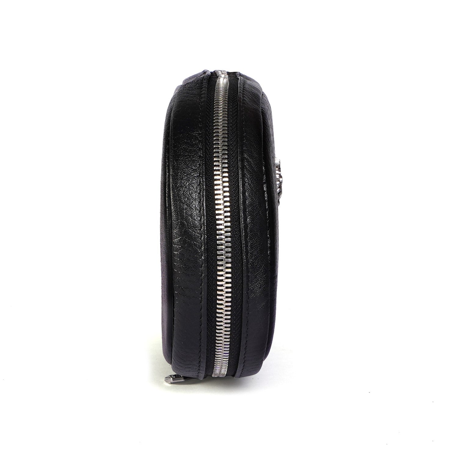 Black Textured Handcrafted 3D Lion Logo Slippers Pouch