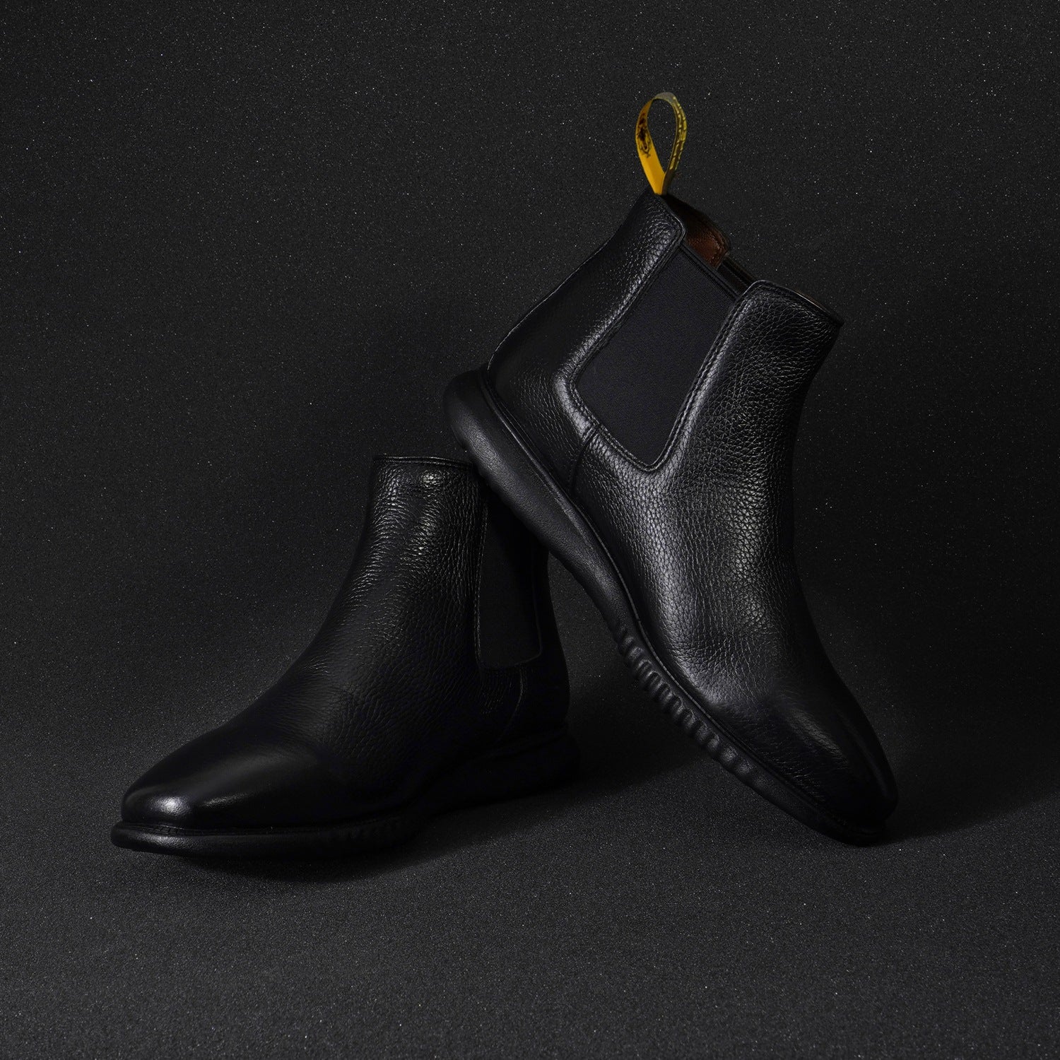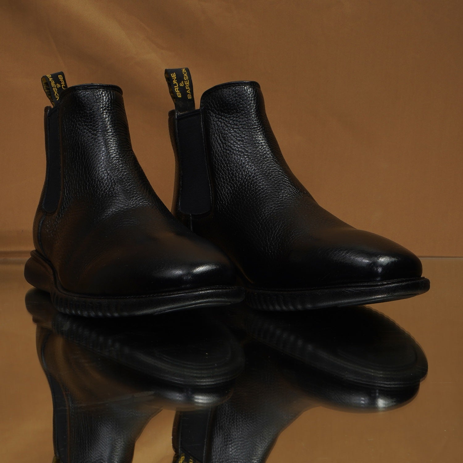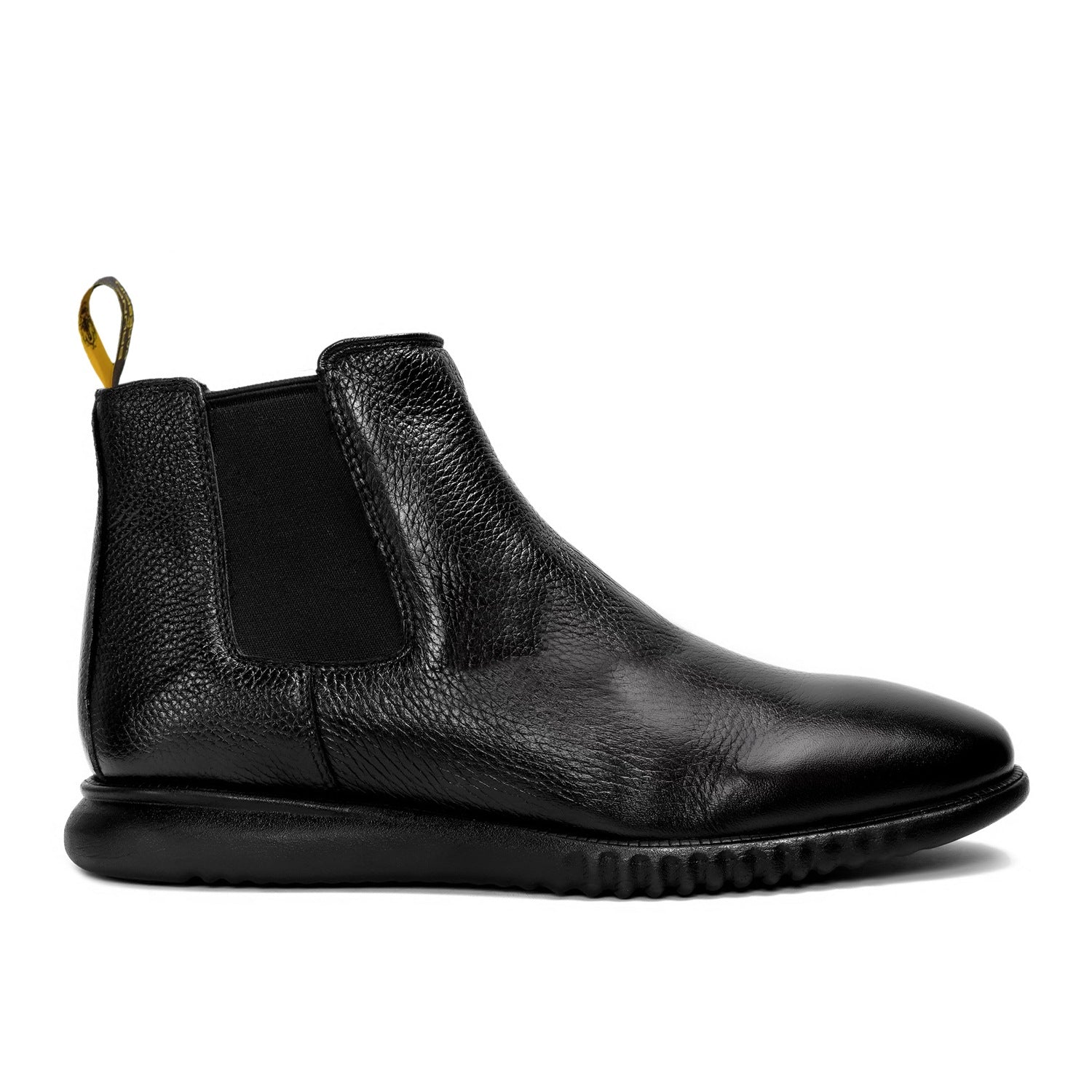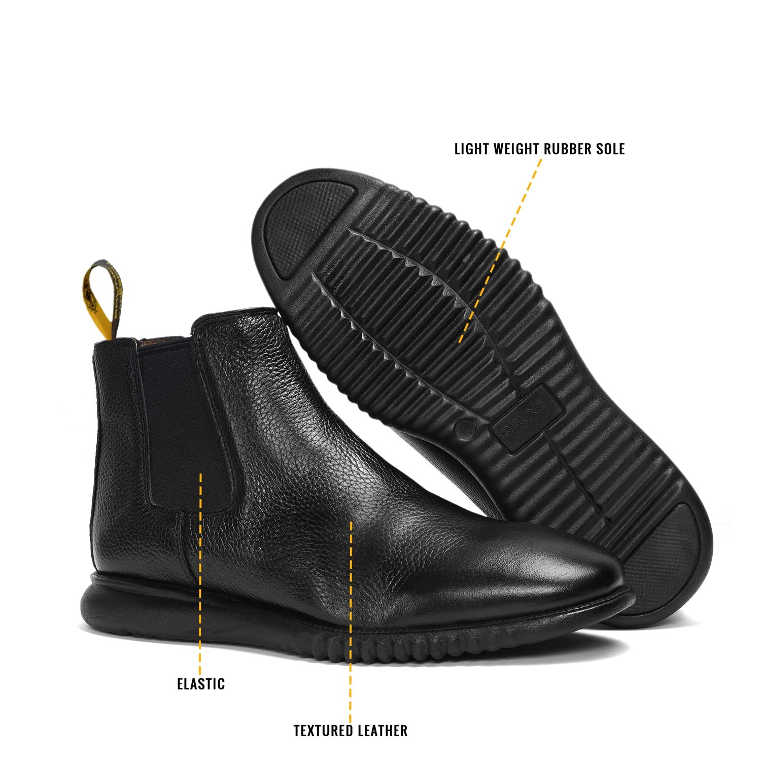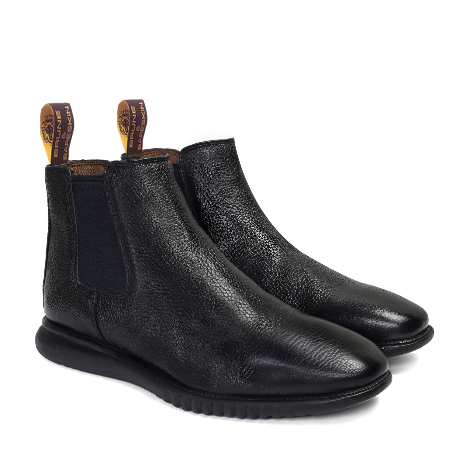 Black Textured Leather Chelsea Boot with Light weight sole by Brune & Bareskin