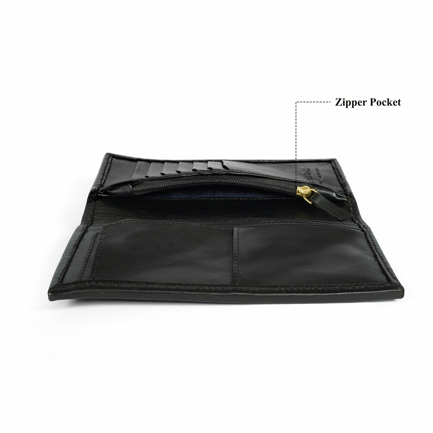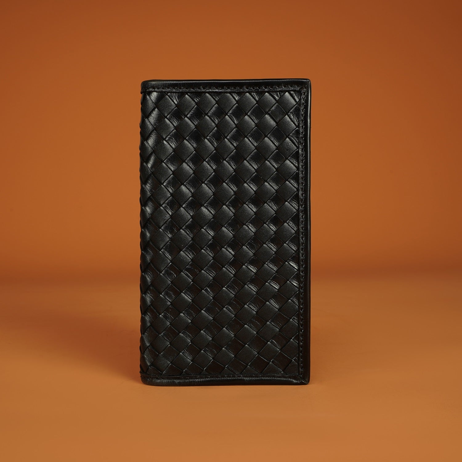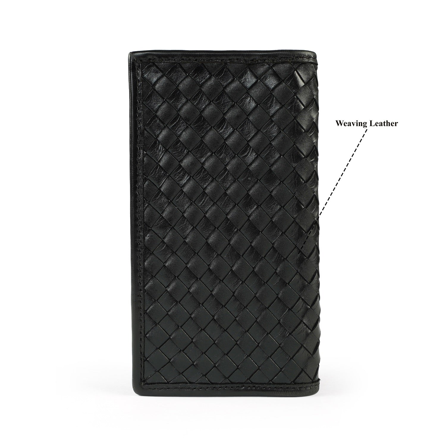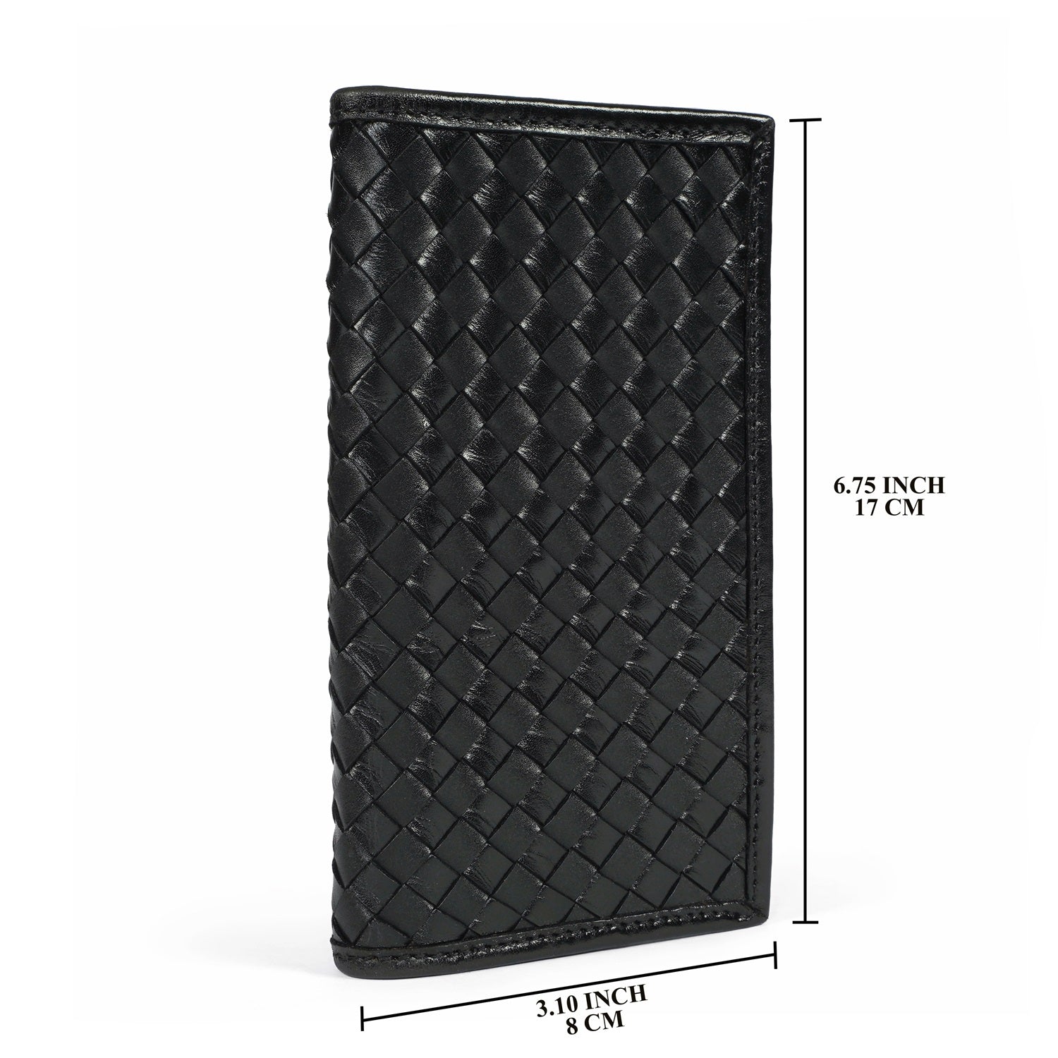Black Weaved Leather Long Wallet with Inside Zipper Multi-Pockets