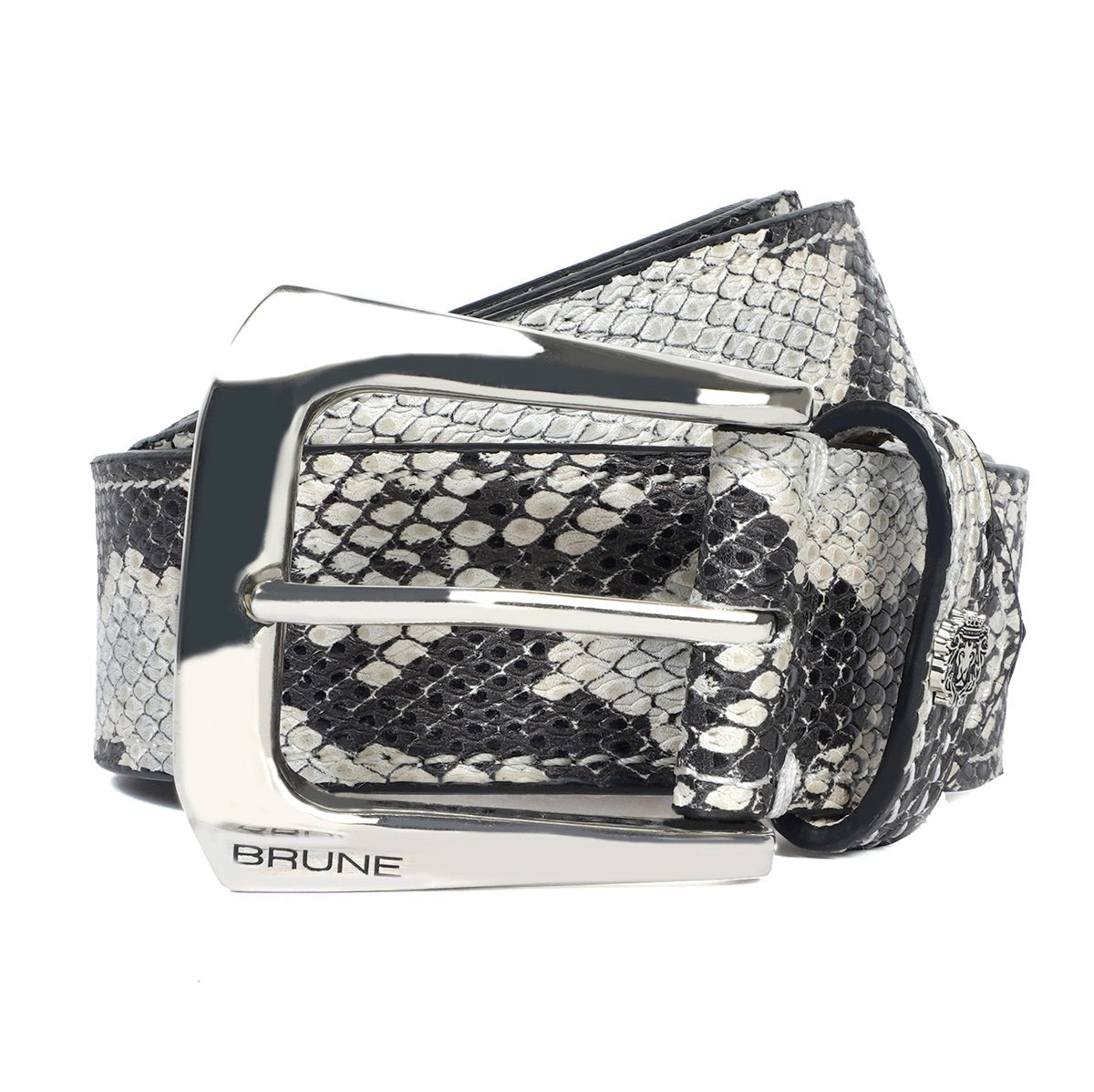 Make a bold statement with this hand-crafted Black-White Belt in Snake Print Leather by Brune & Bareskin! Experience the exact feel of snake skin and tantalize your senses with the silver finish buckle. A sophisticated accessory for the modern, discerning man, this black-white belt from Brune & Bareskin boasts a snake skin textured leather construction, giving it an eye-catching look and a truly desirable feel. The black-white snake print leather men's belt looks very elegant. Enhancing its luxurious aesthetic, the silver finish buckle adds the perfect finishing touch. Match this belt with your shoes and accessories for a unique look. What are you waiting for? Get it today!