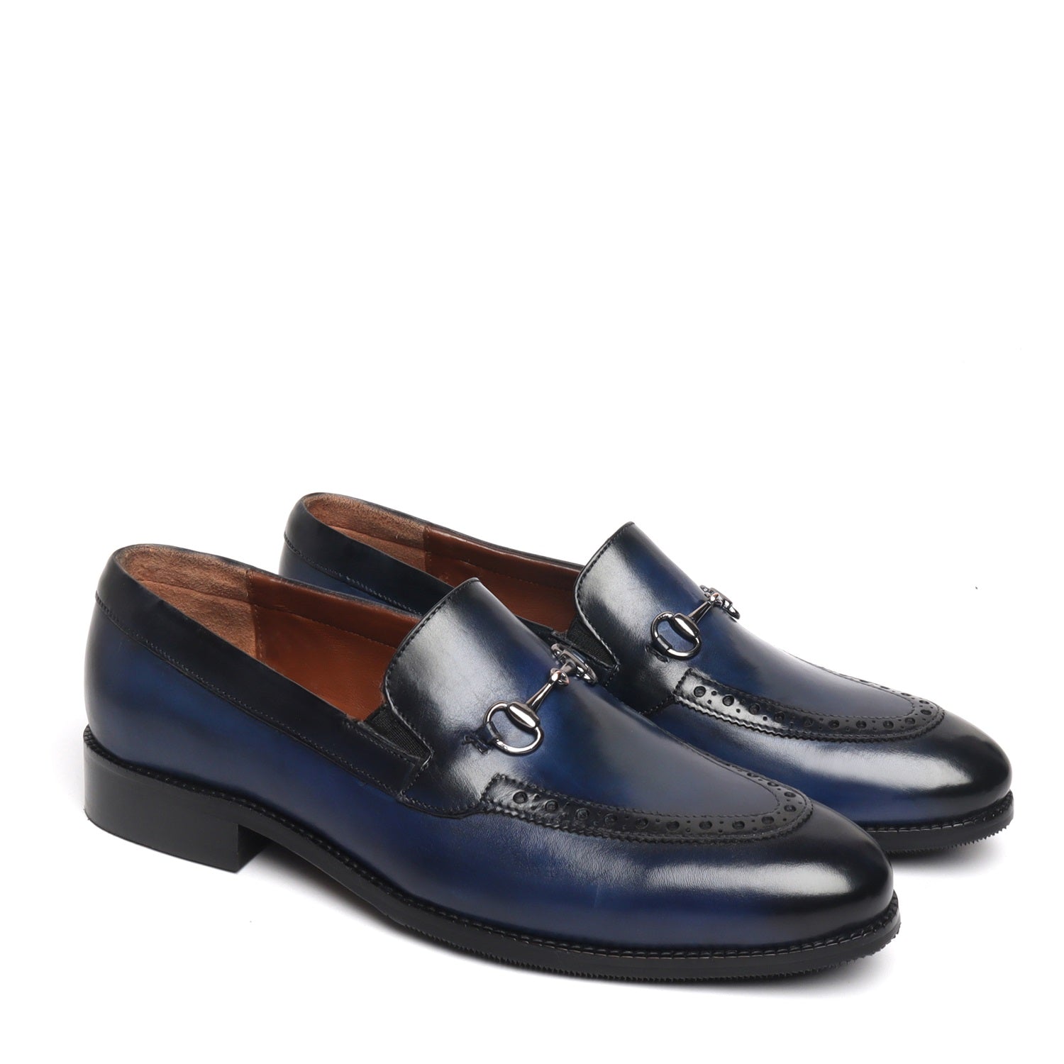 Blue Brogue Leather Loafer with Horse bit Detailing