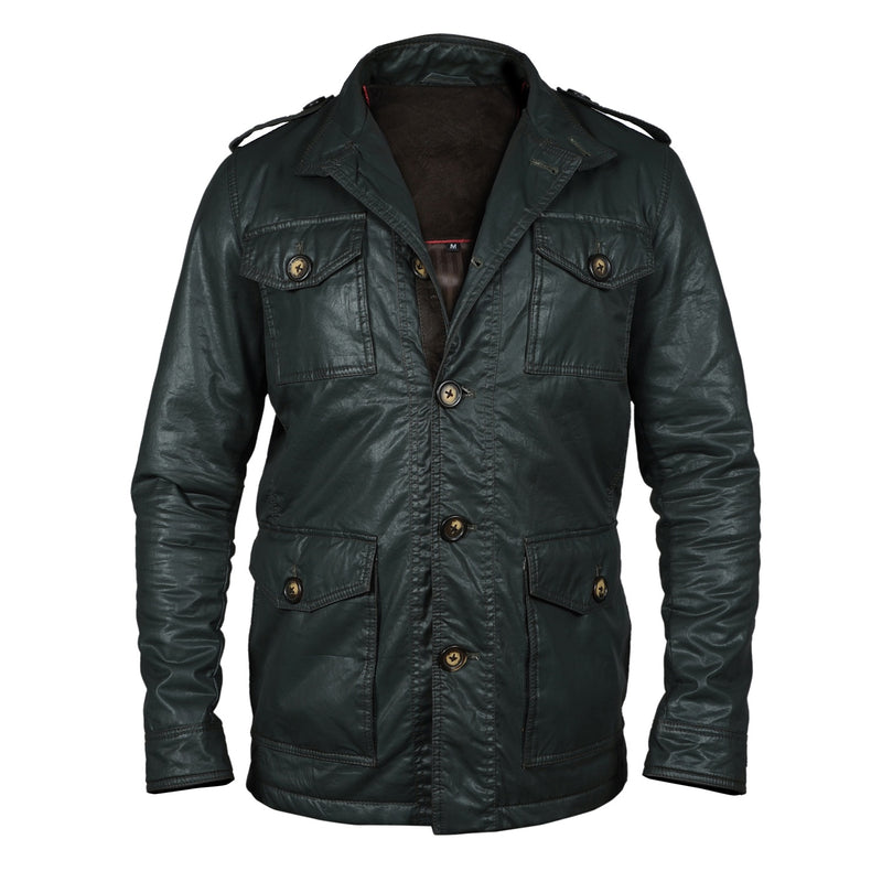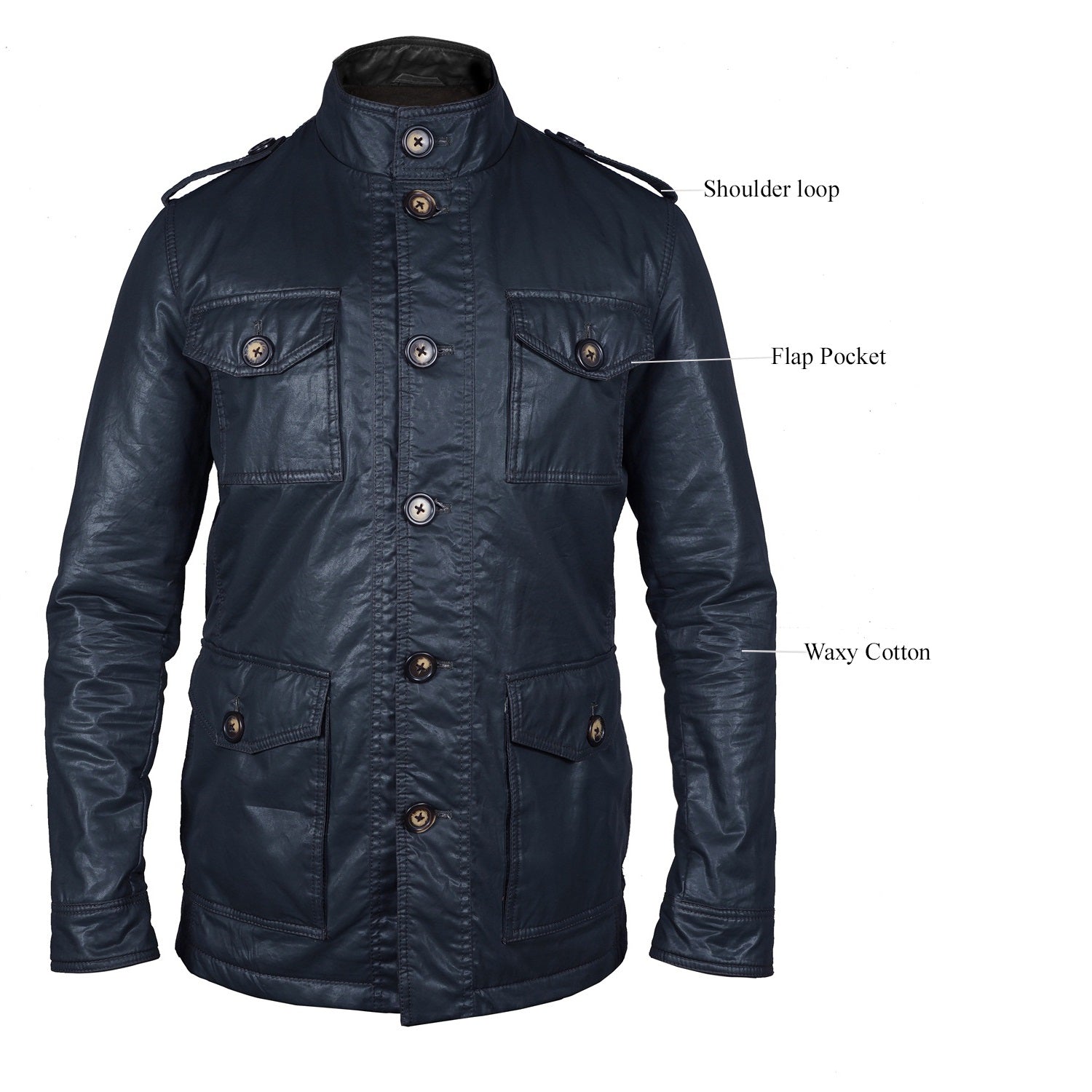 Blue Coat & Jacket with Contrasting Waxy Cotton and Leather Trims,
