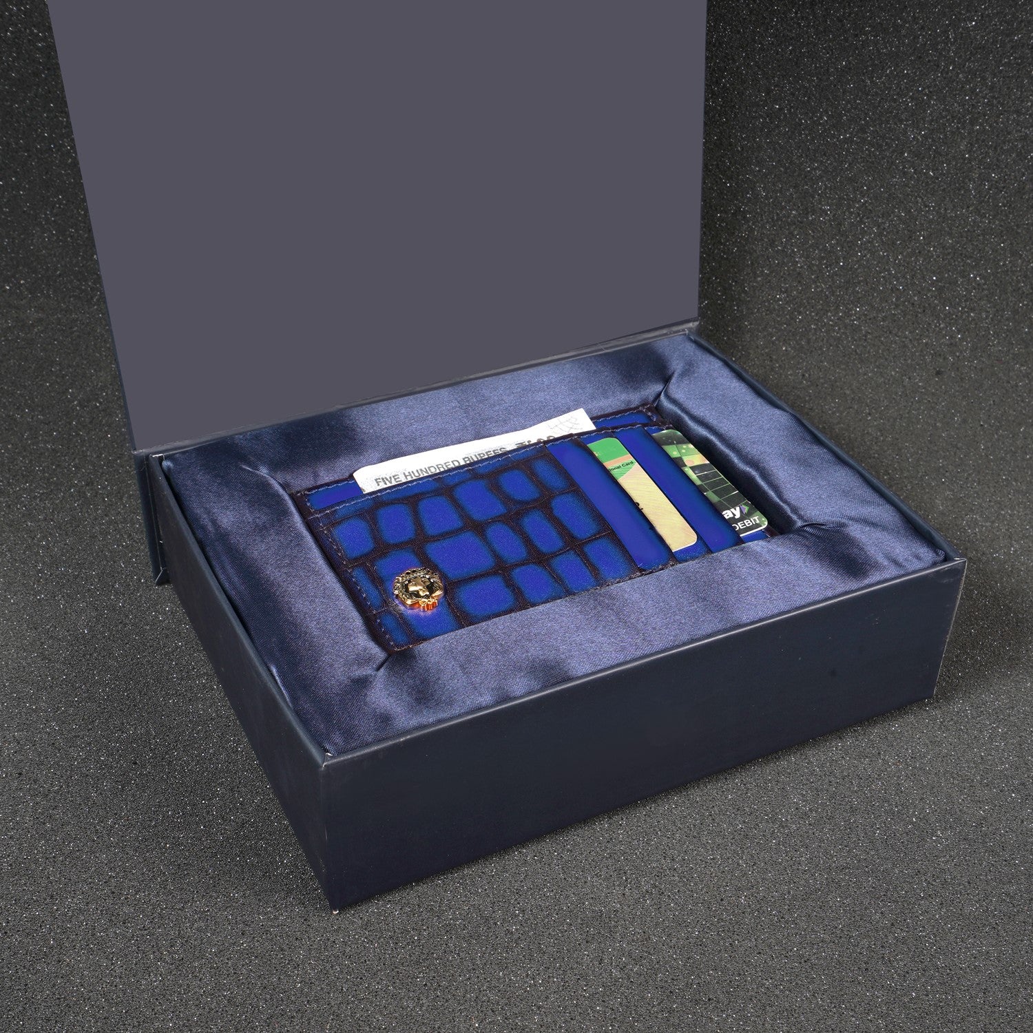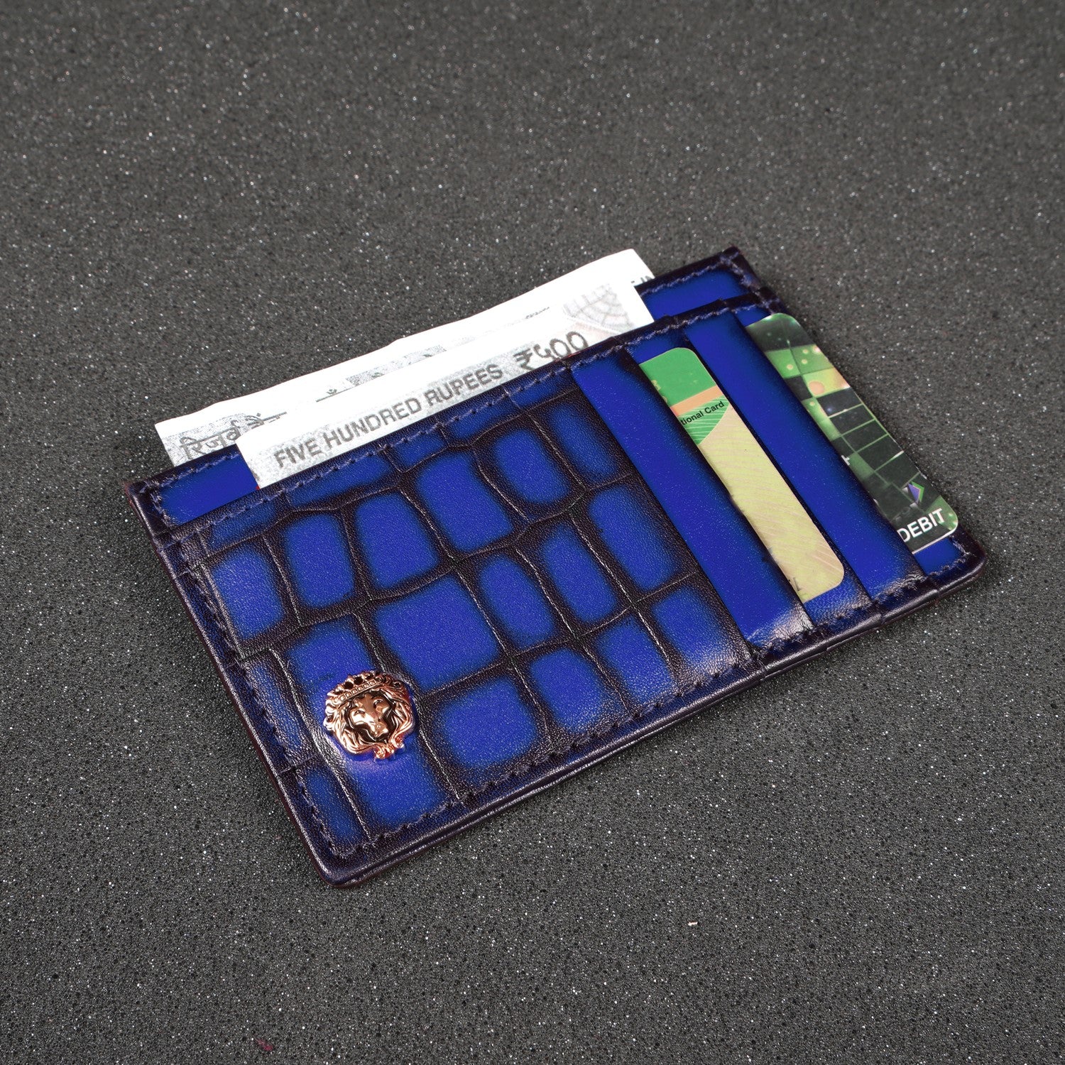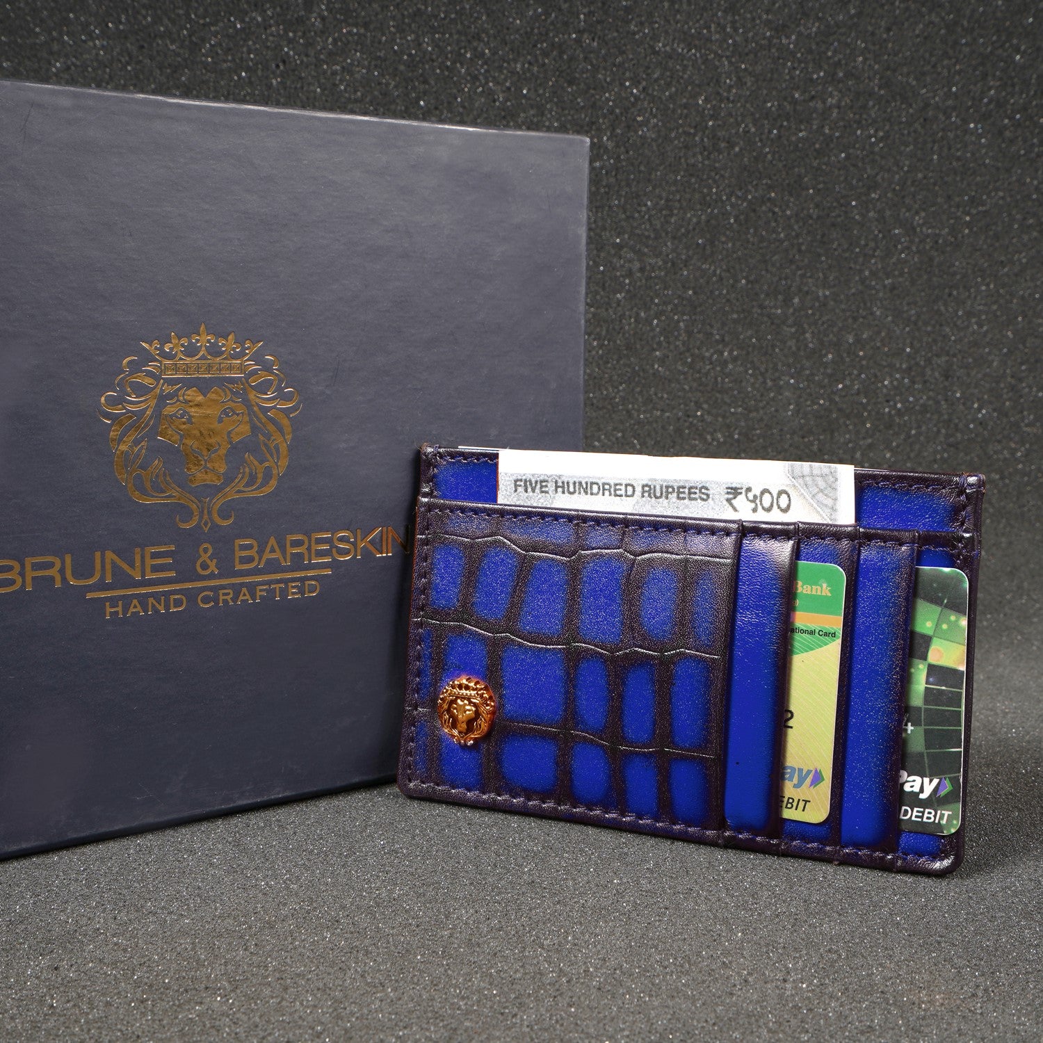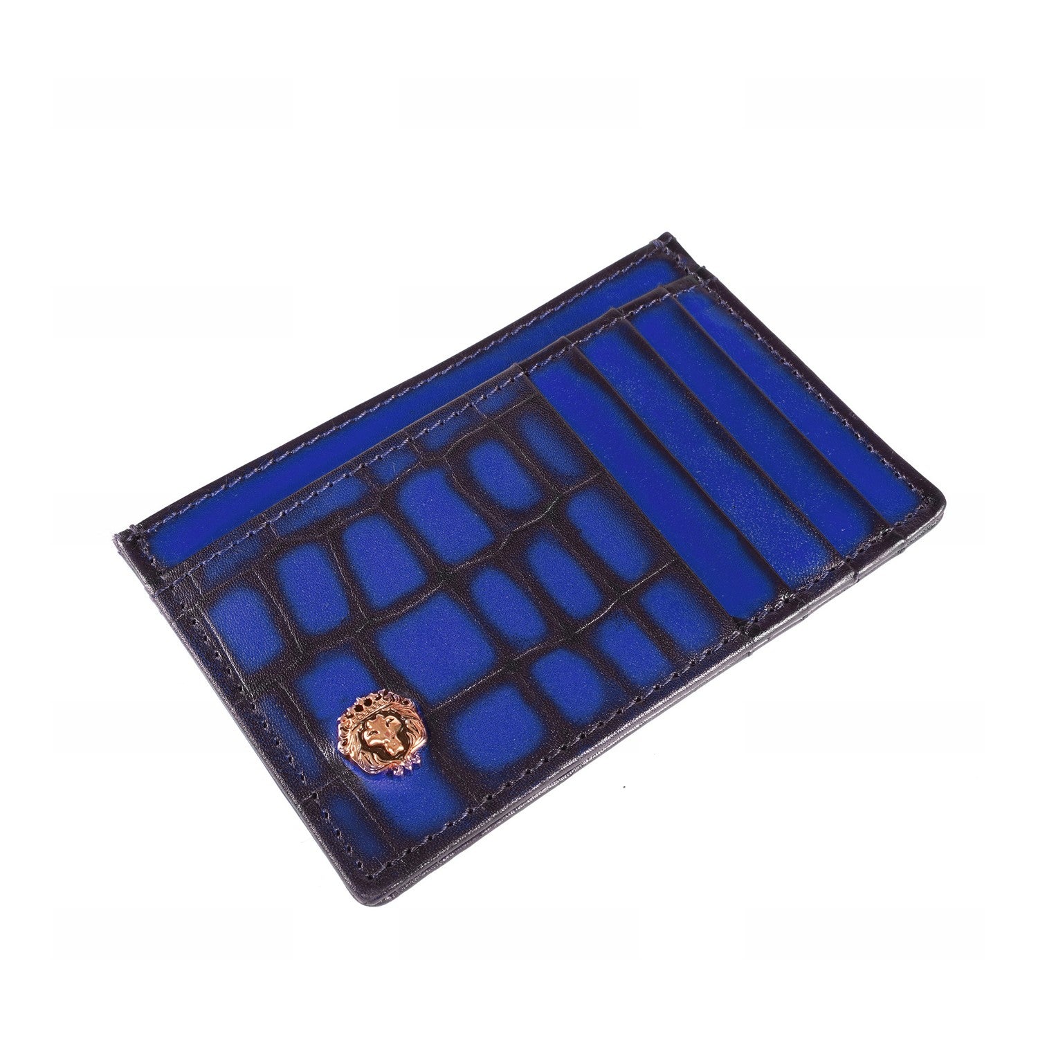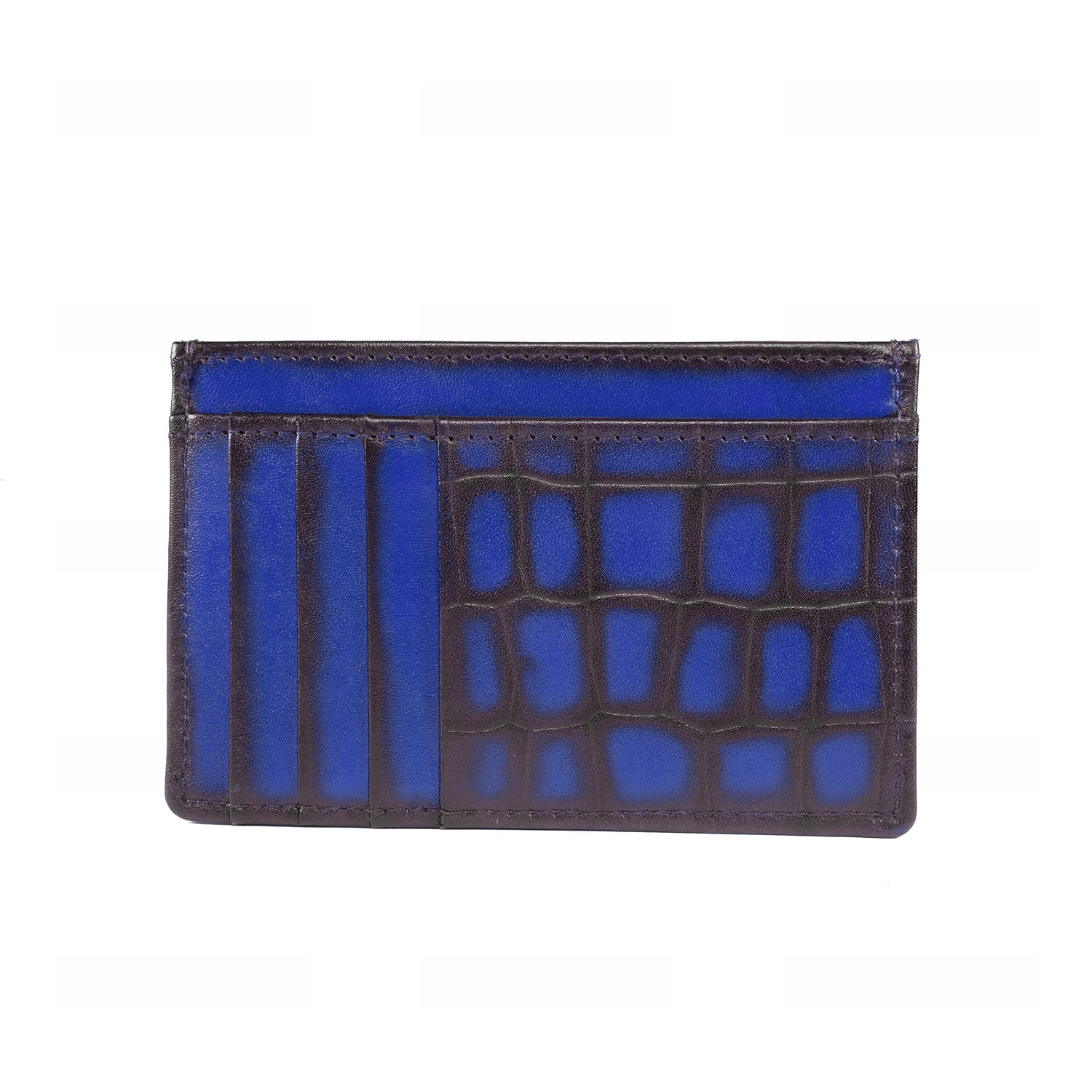 Blue Croco Deep Cut Leather Prolonged Card Holder By Brune & Bareskin