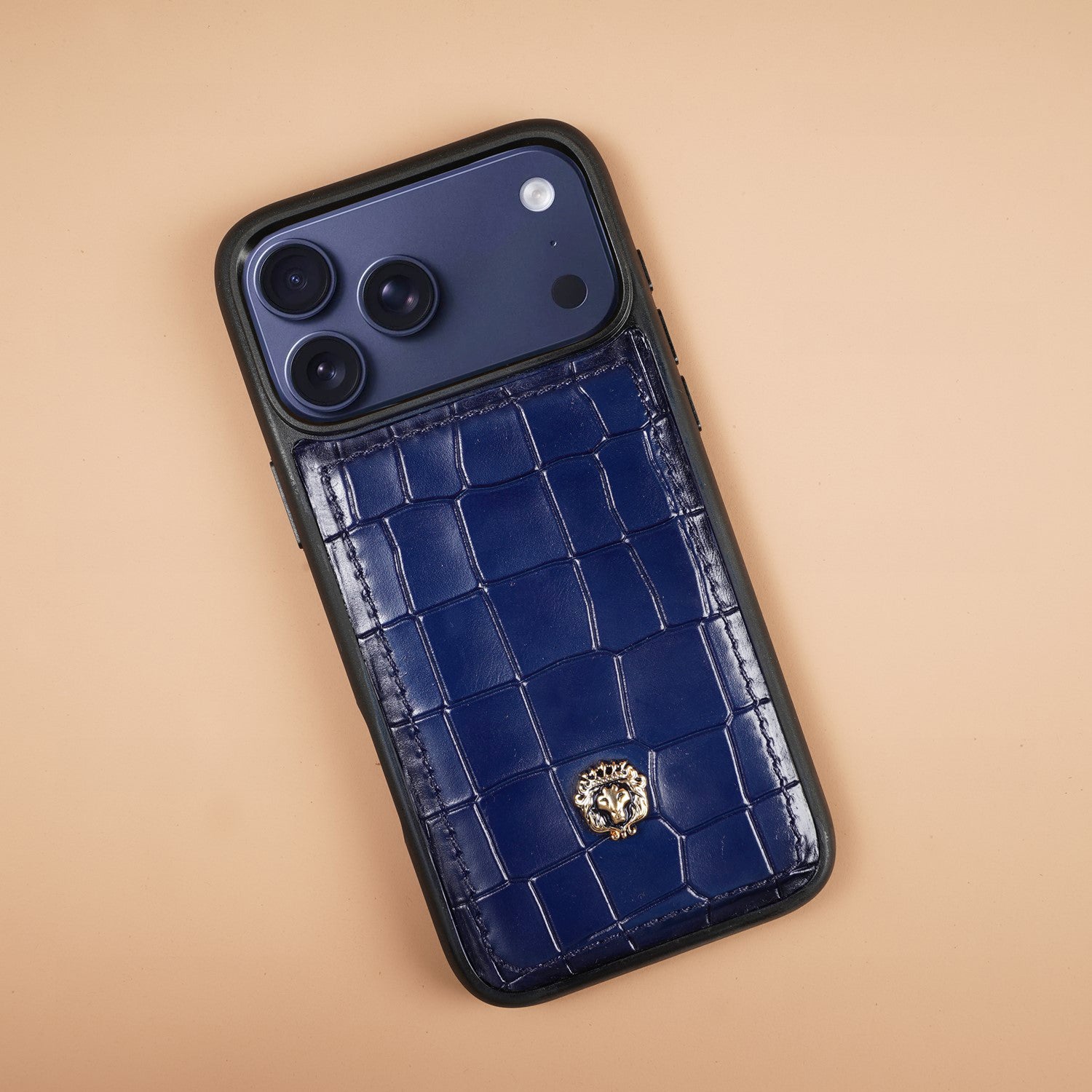 Stand out in style with this bold handcrafted iPhone 17 Pro & 17 Pro Max case. Made from premium blue croco-textured leather, it brings a striking blend of luxury and vibrance. The sleek black frame adds a modern contrast, while the iconic Brune & Bareskin lion emblem in gold detailing completes the design with a touch of power and elegance. Designed with precision and care, this case isn’t just about protection—it’s about making a statement every time you hold your phone.