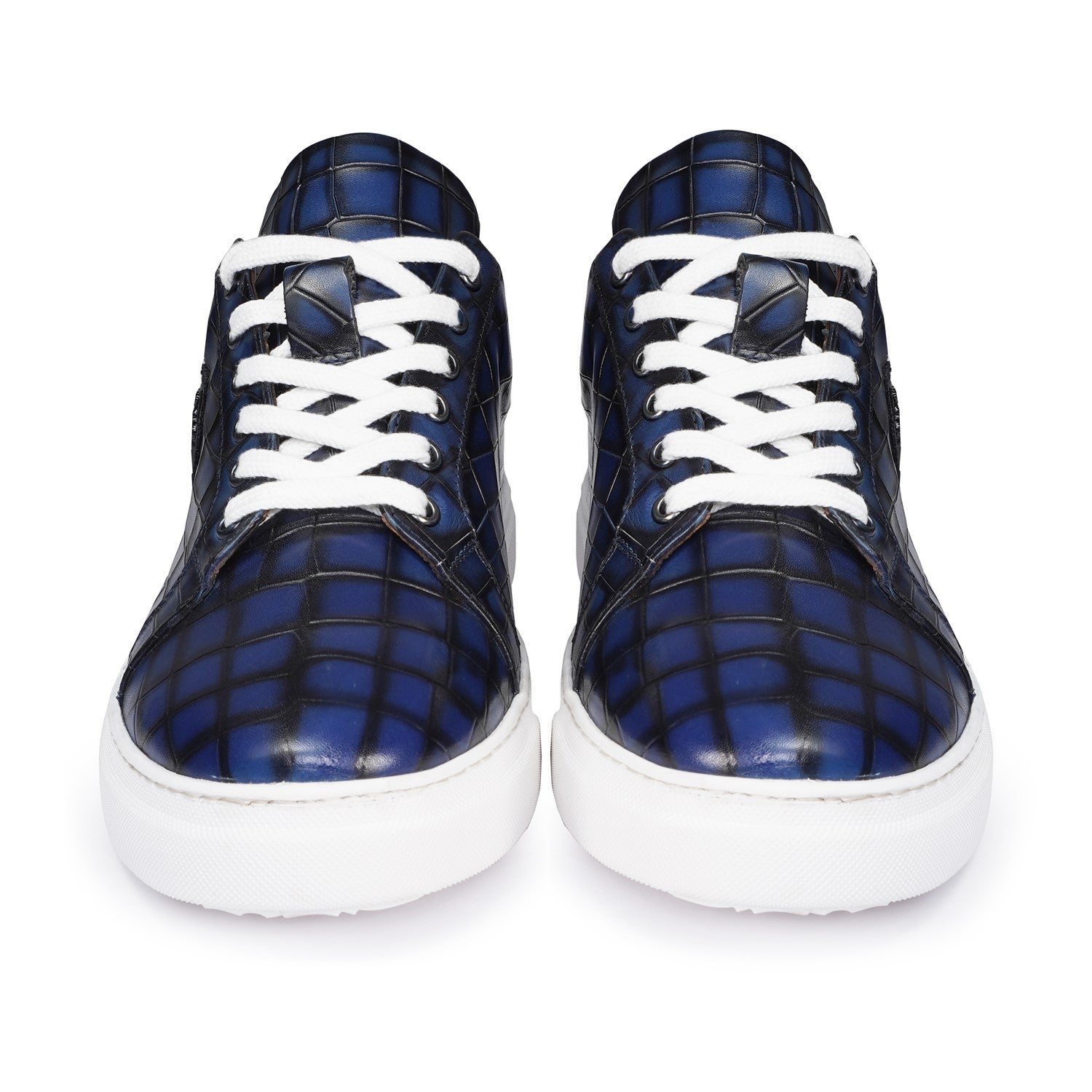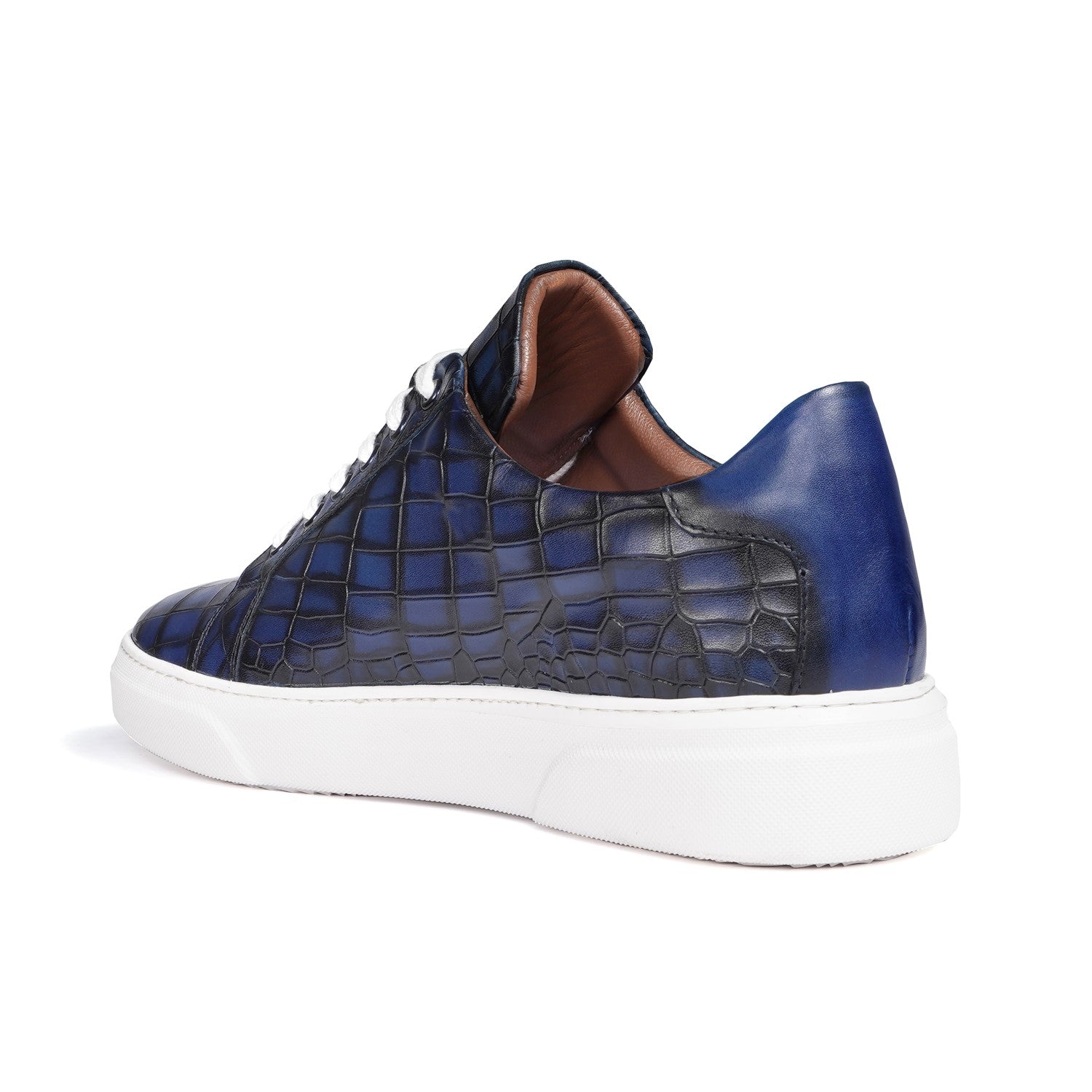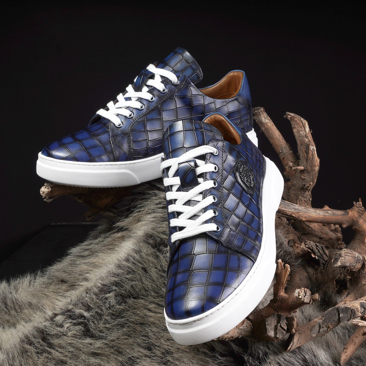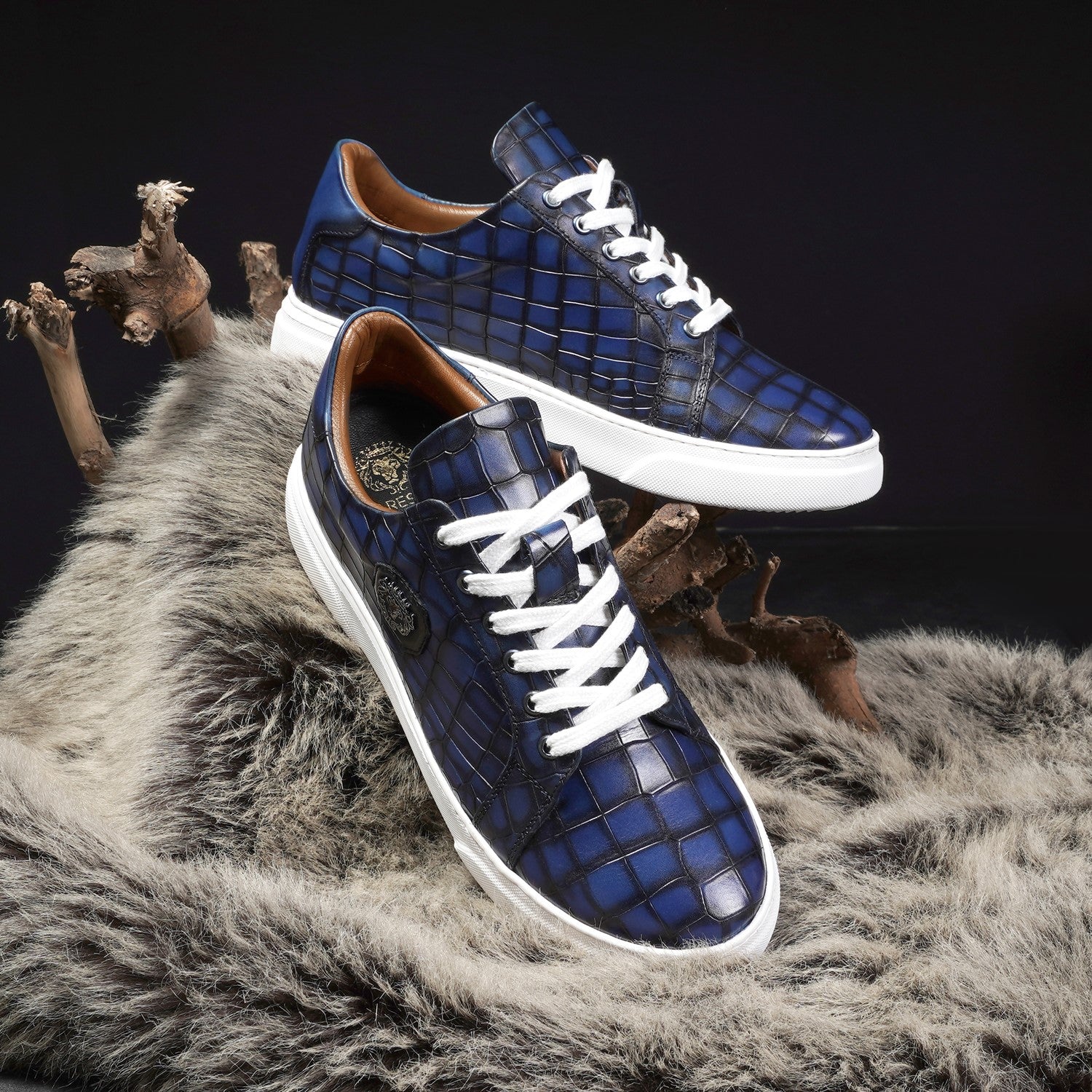 Blue Deep Cut Croco Leather White Sole Low Top Sneakers