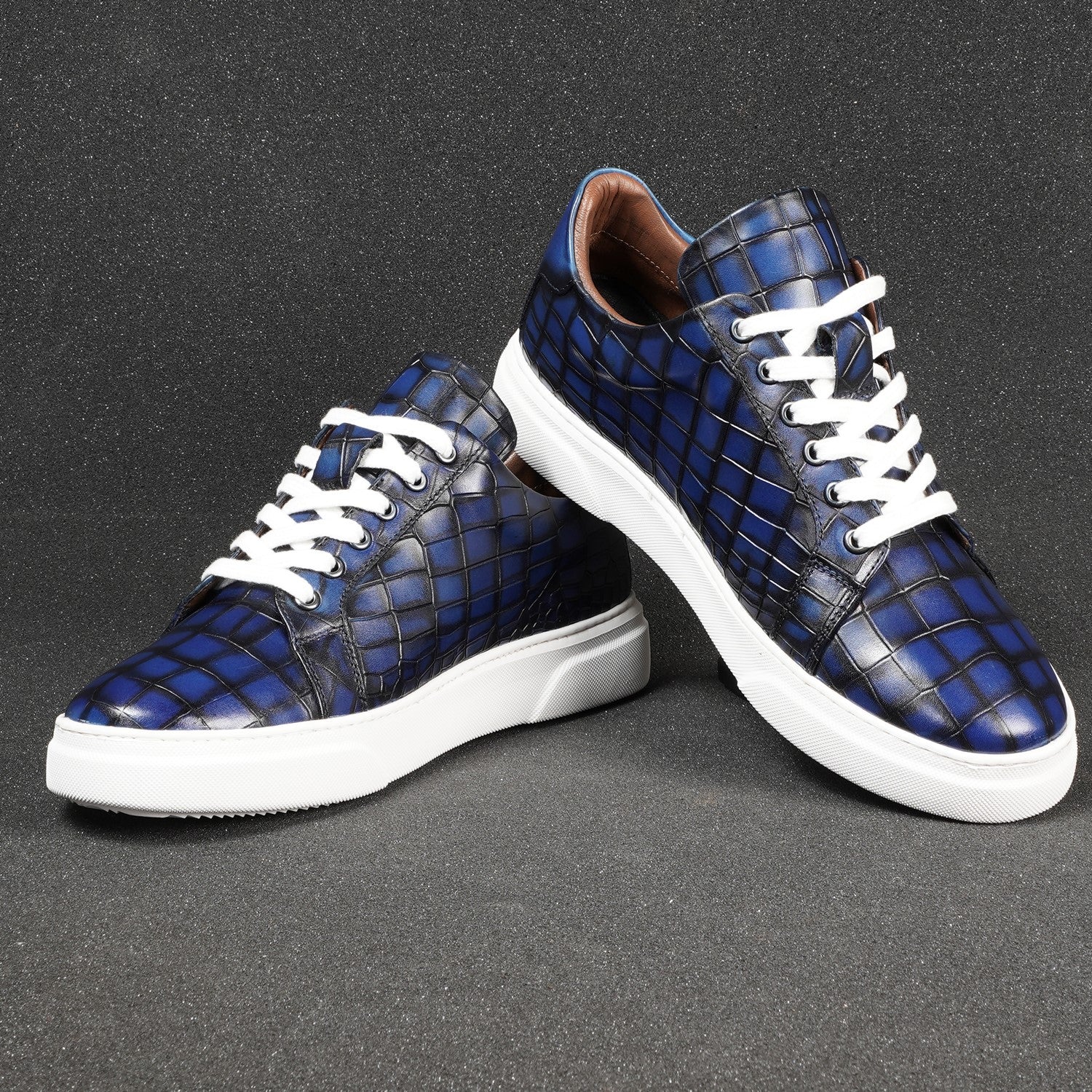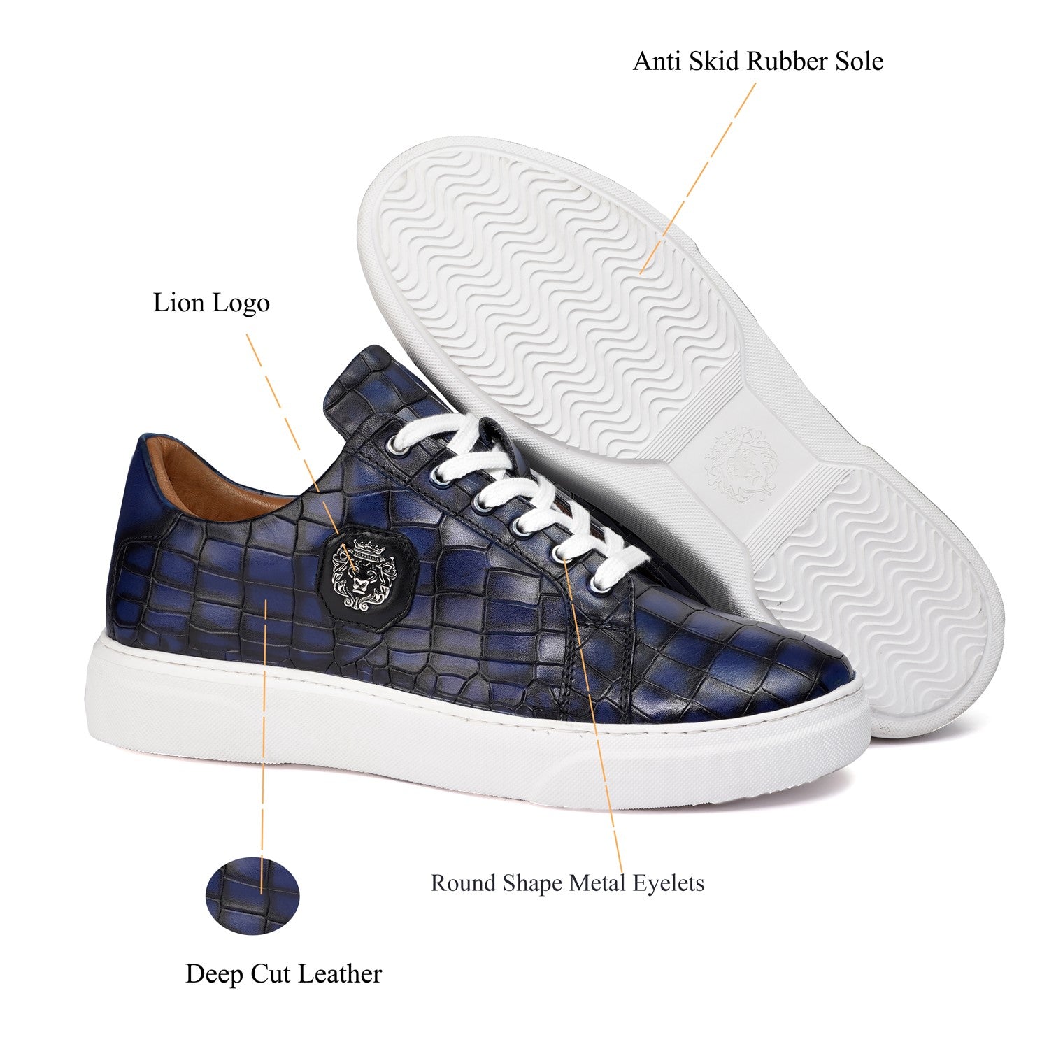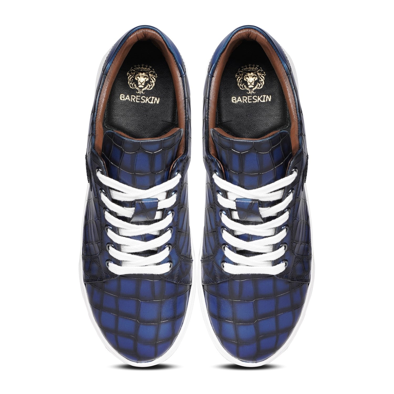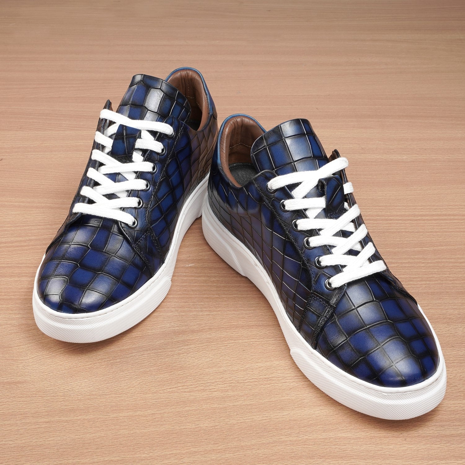 Blue Deep Cut Croco Leather White Sole Low Top Sneakers