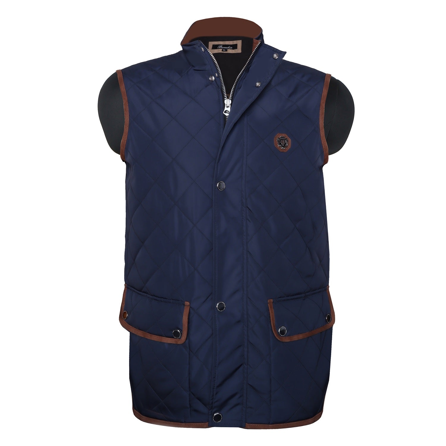 Blue Diamond Stitched Button Zip Closure Puffer Vest Jacket For Men by Brune & Bareskin