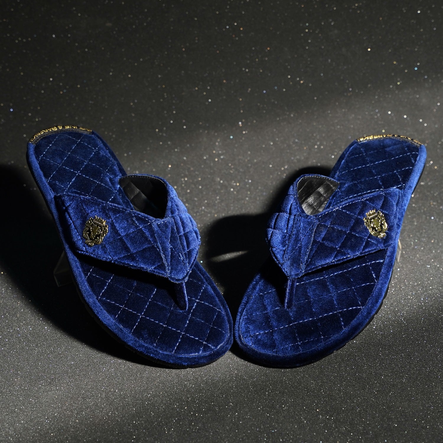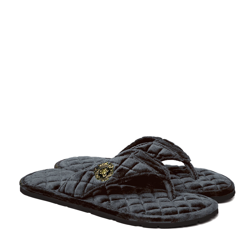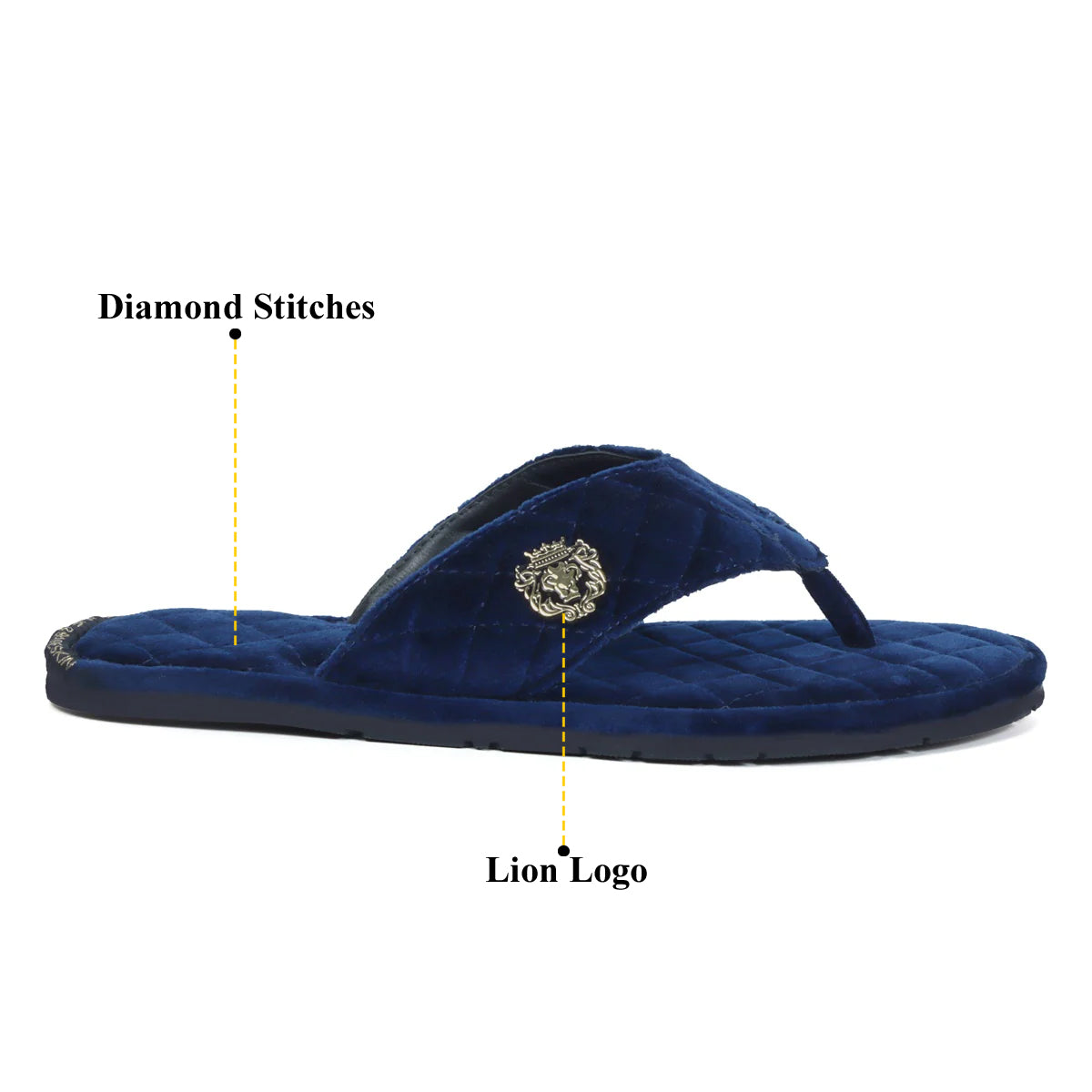 This comfy and super soft slipper is made using durable Italian Velvet. The slipper has a three-point throng construction with a quilted diamond stitched pattern on the base and a strap with extra cushioning. The wide strap provides a more secure and comfortable fit. It has memory foam in the base which helps to retain its quilted design. This dual shade effect velvet slipper looks fab when worn with Jeans, Shorts, Capris, and other casual wear. The BRUNE & BARESKIN Signature Lion logo on the quilted strap enhances the elegance further. Anti-Skid Rubber outer sole ensures the perfect walking grip.