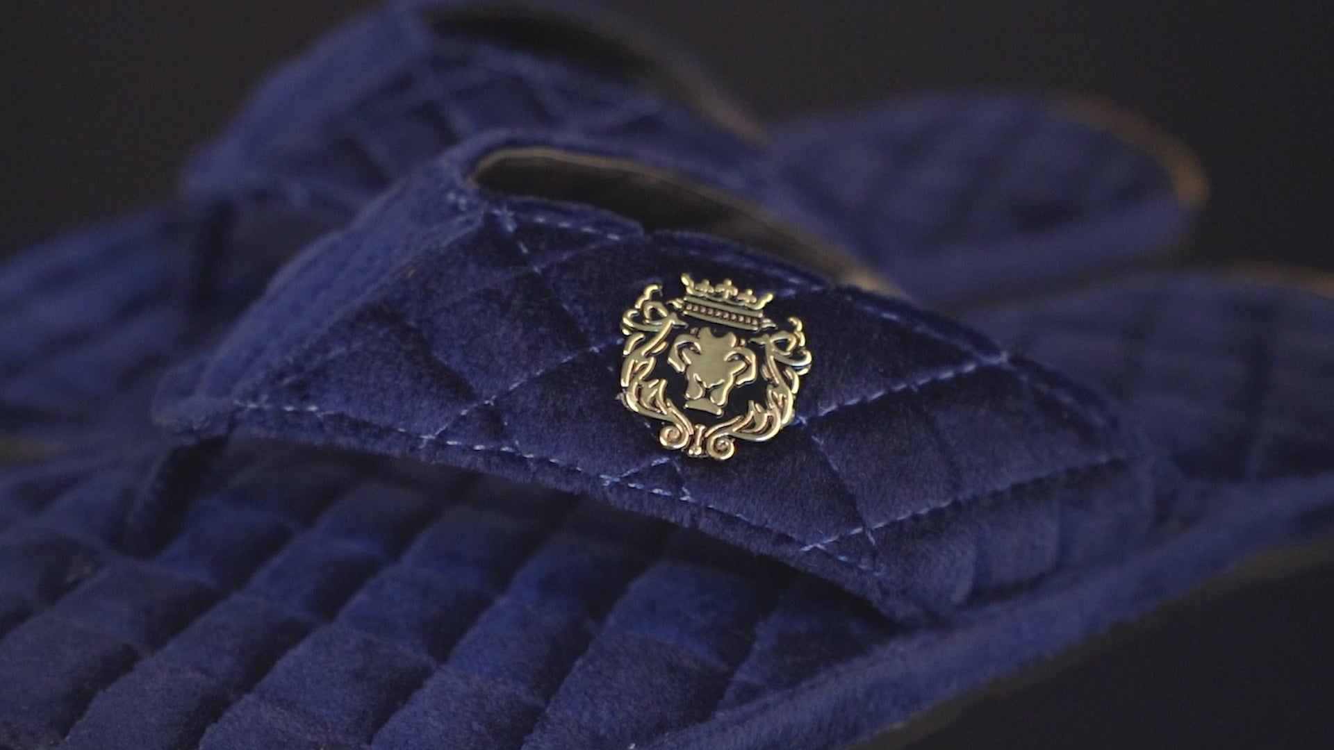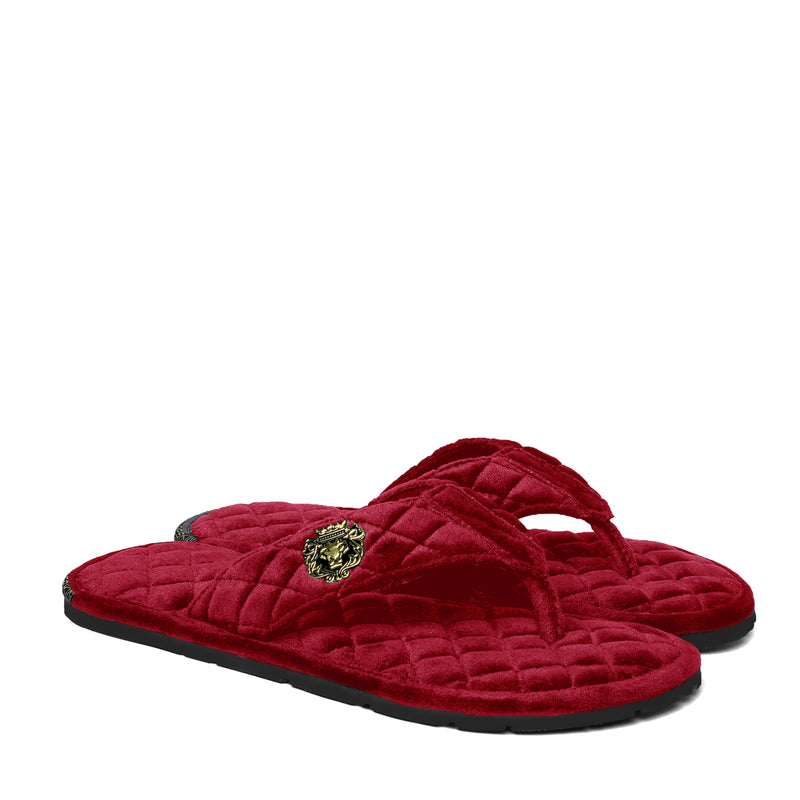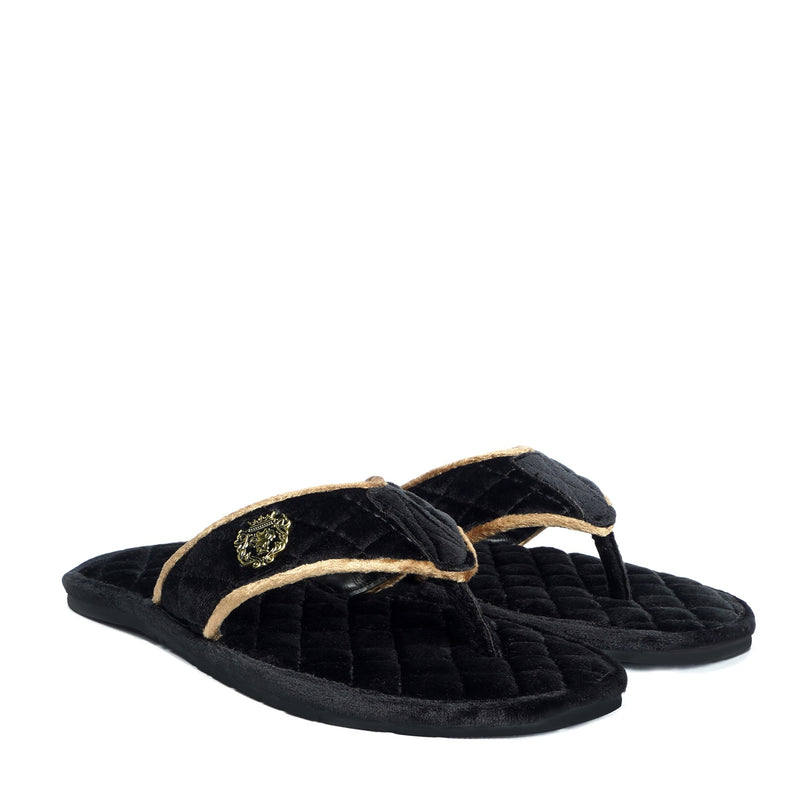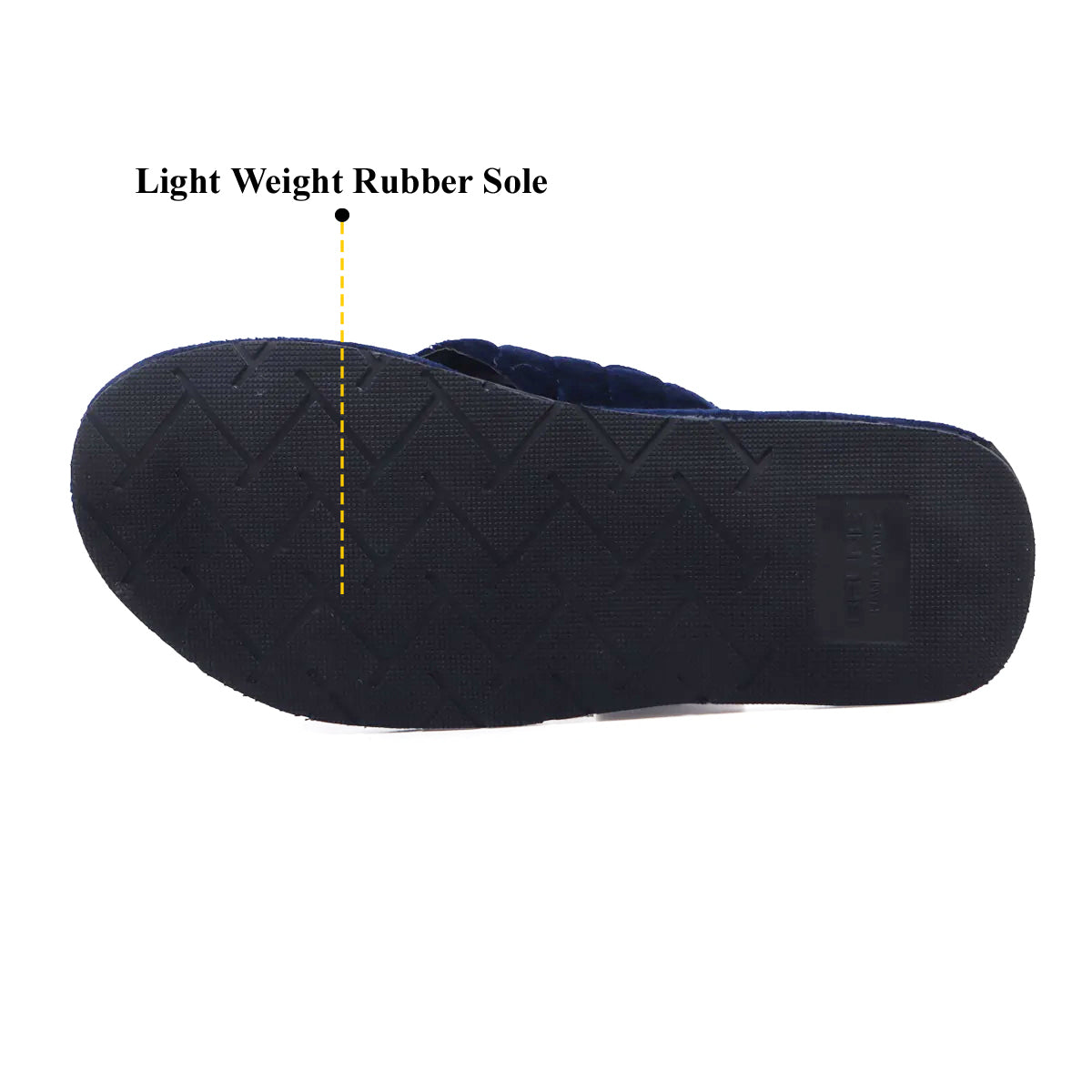 This comfy and super soft slipper is made using durable Italian Velvet. The slipper has a three-point throng construction with a quilted diamond stitched pattern on the base and a strap with extra cushioning. The wide strap provides a more secure and comfortable fit. It has memory foam in the base which helps to retain its quilted design. This dual shade effect velvet slipper looks fab when worn with Jeans, Shorts, Capris, and other casual wear. The BRUNE & BARESKIN Signature Lion logo on the quilted strap enhances the elegance further. Anti-Skid Rubber outer sole ensures the perfect walking grip.