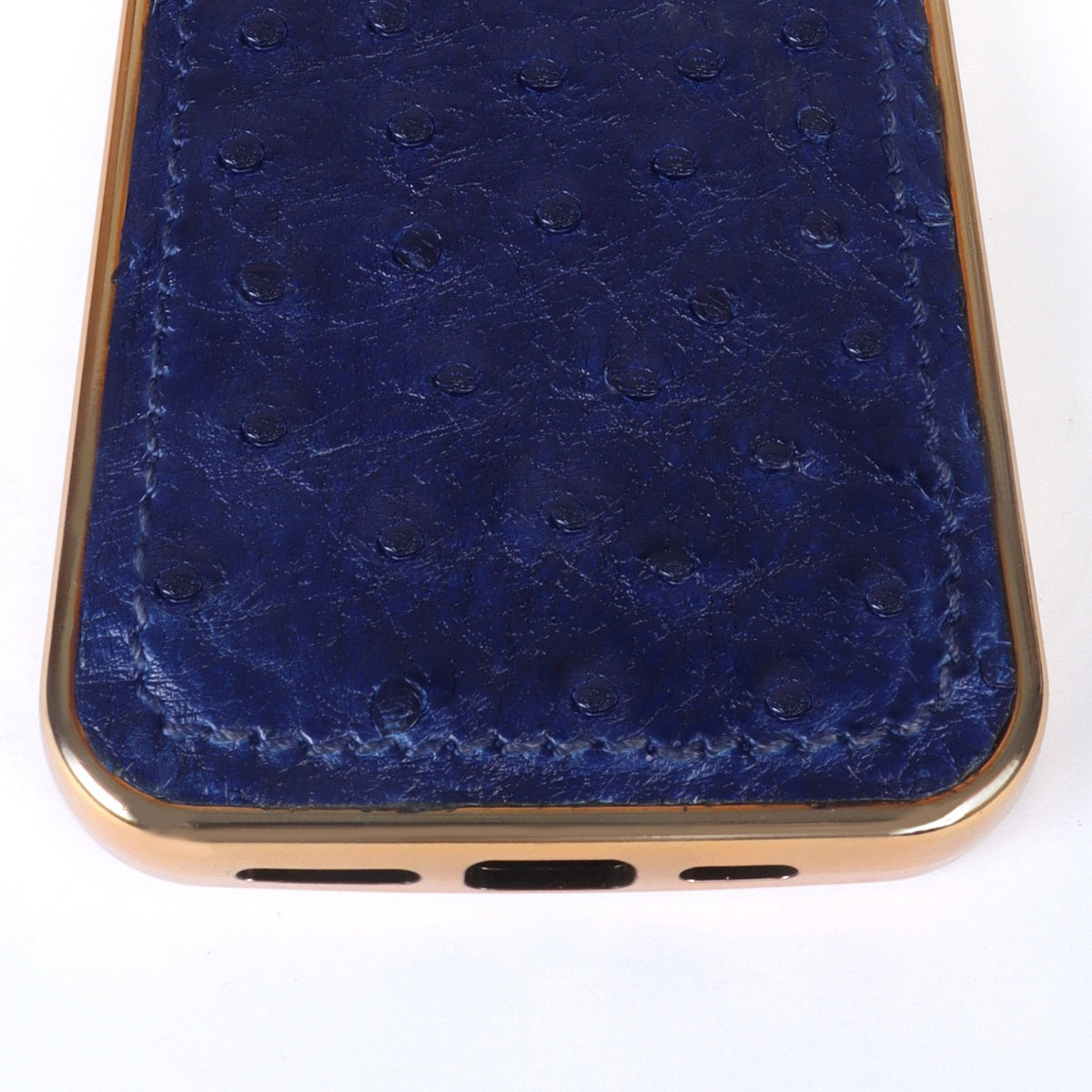 Golden Rim Mobile Cover in Blue Real Ostrich Leather