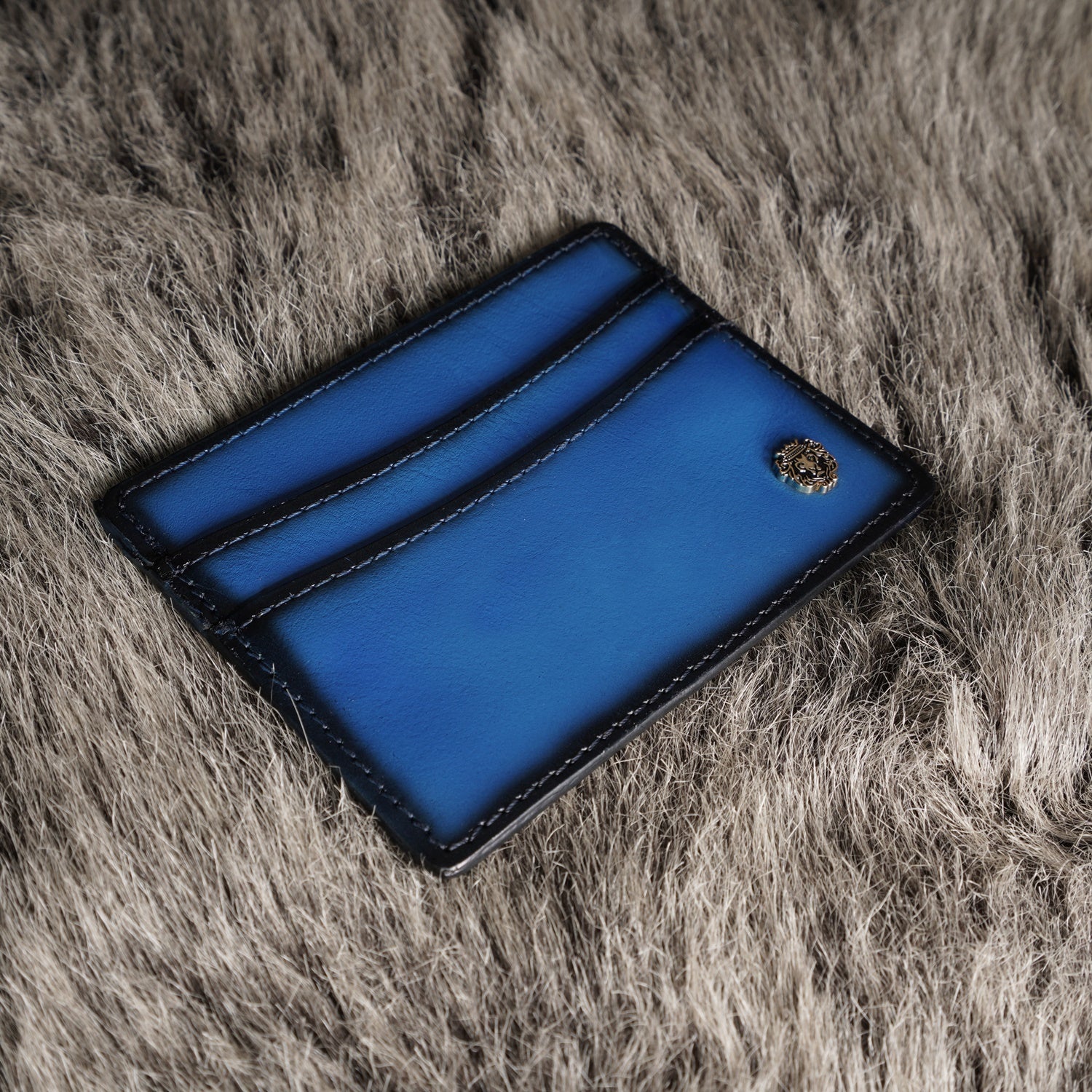 Blue Hand Painted With Metal Lion Unisex Card Holder By Brune & Bareskin