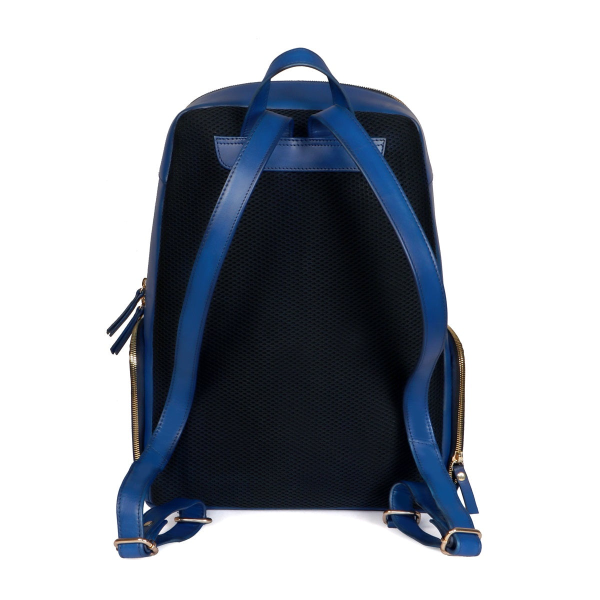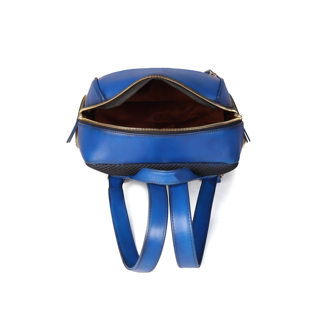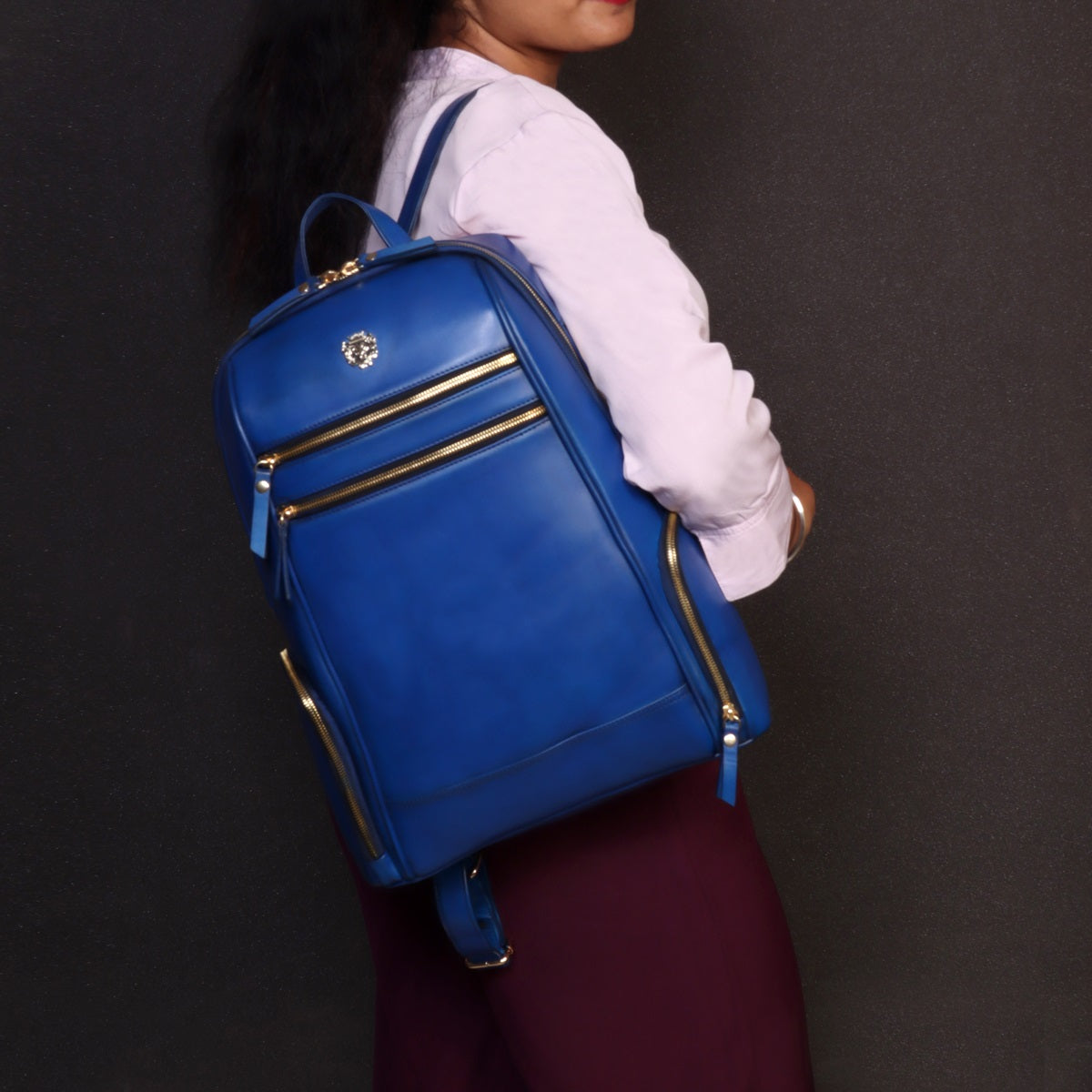 Blue Italian Leather Multi-Pockets Metal Lion Logo Women's Backpack