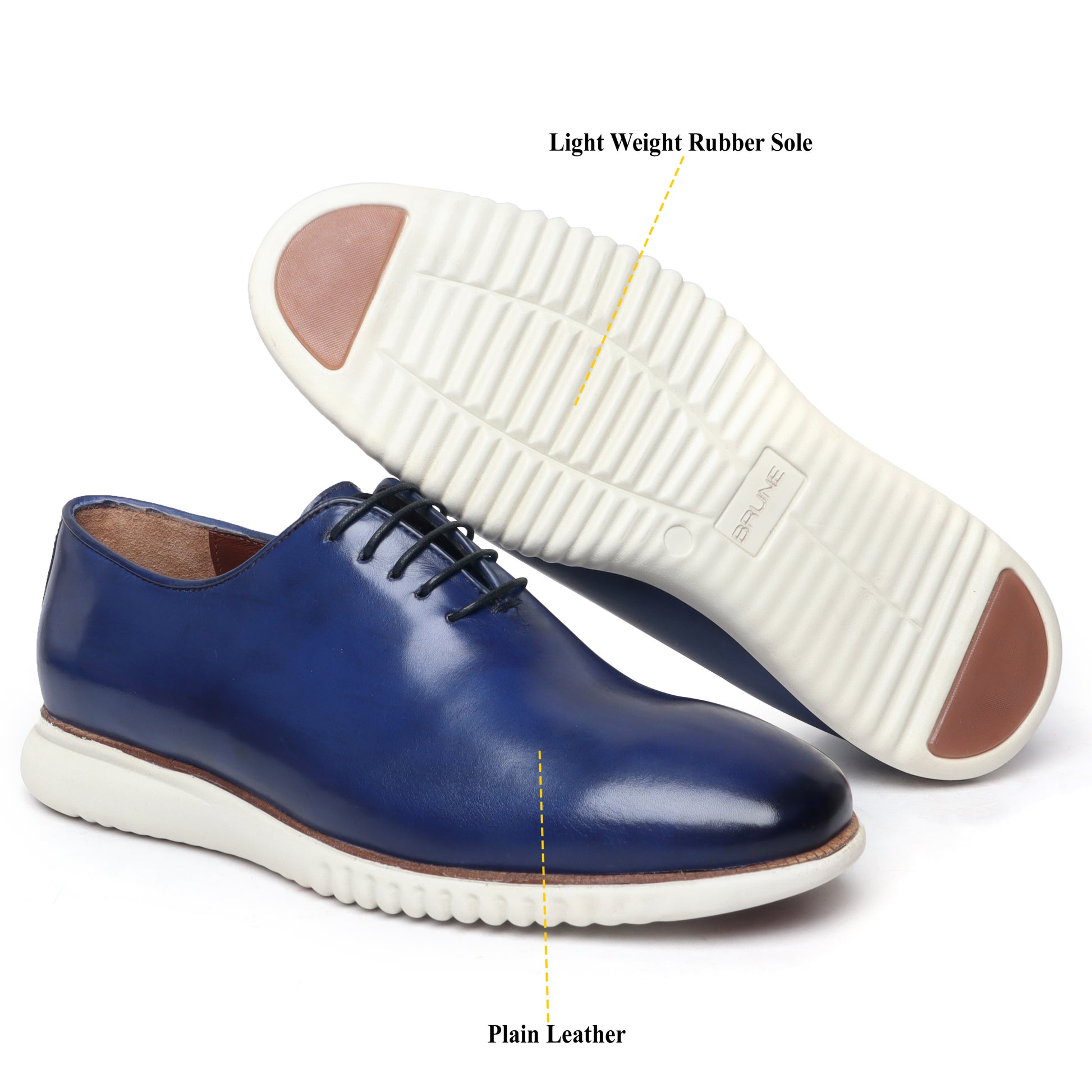 Look sporty and smart by wearing these Brune & Bareskin Blue Leather Ultra Light Weight Sneakers Shoes. Sneakers have a 100% Genuine Leather upper which is crafted very precisely. Patterned Rubber Sole provided the all day long wearability. Team these shoes with casual attires of your choice to look astonishing.