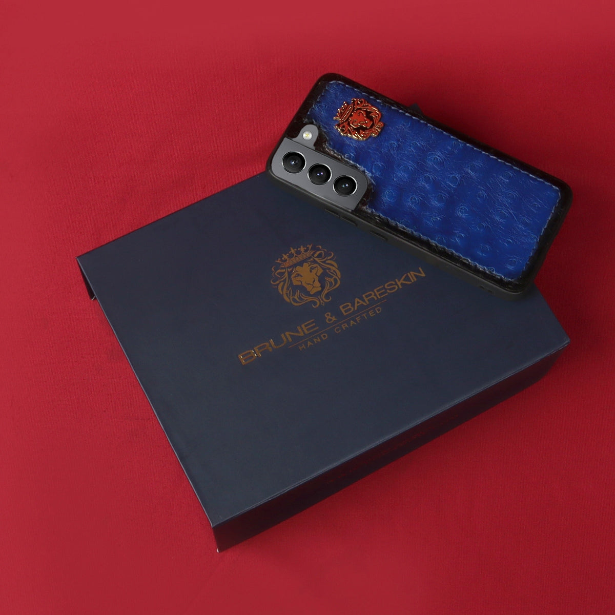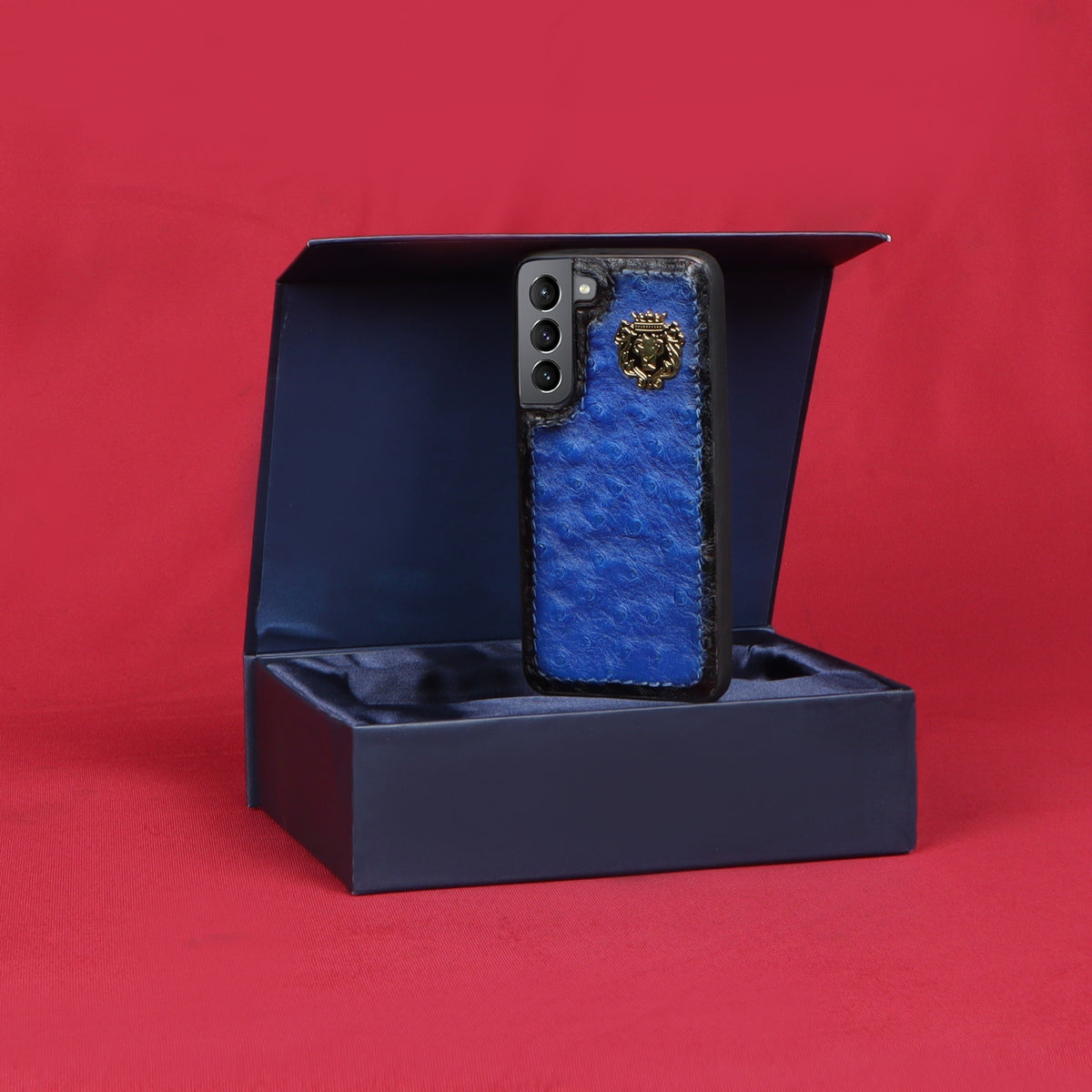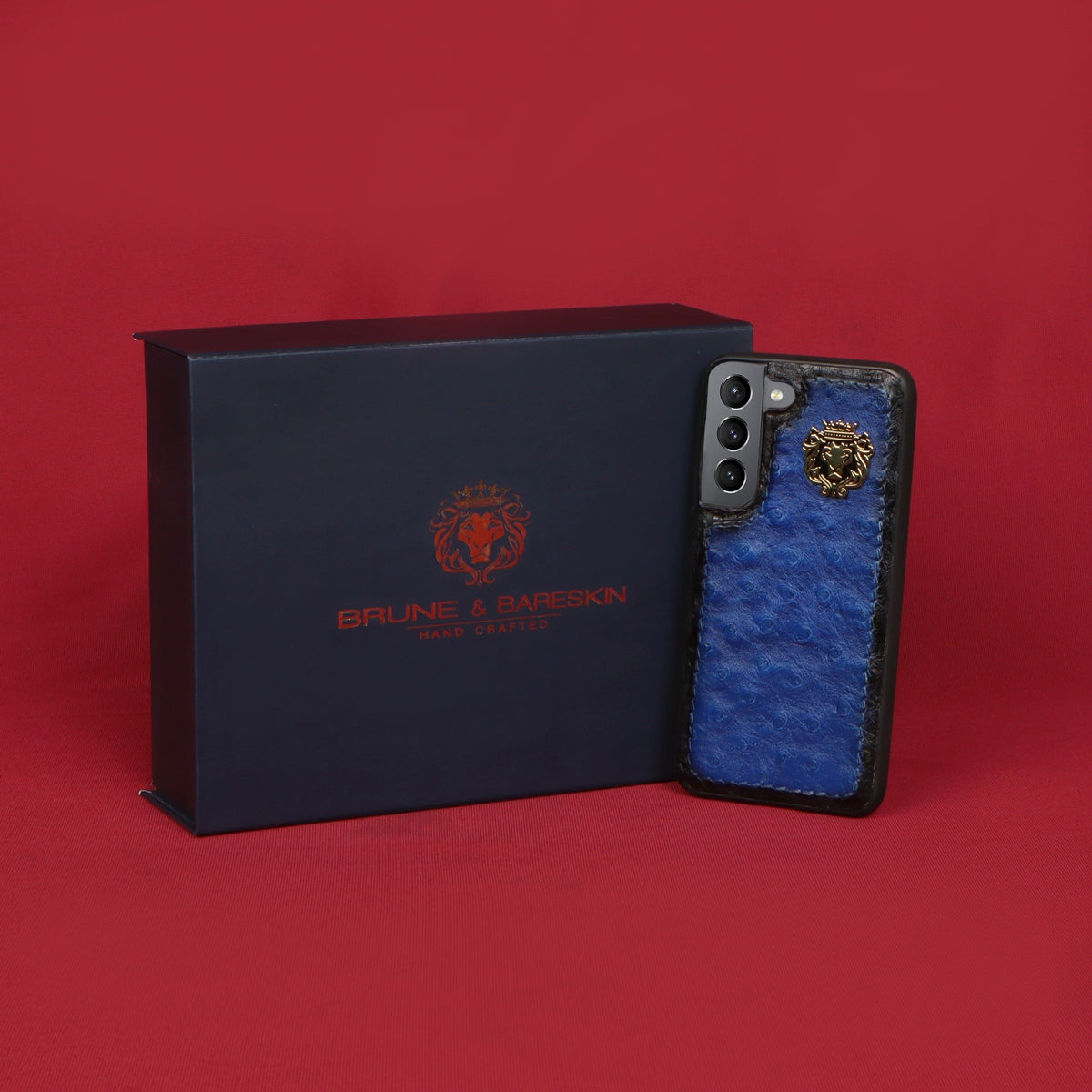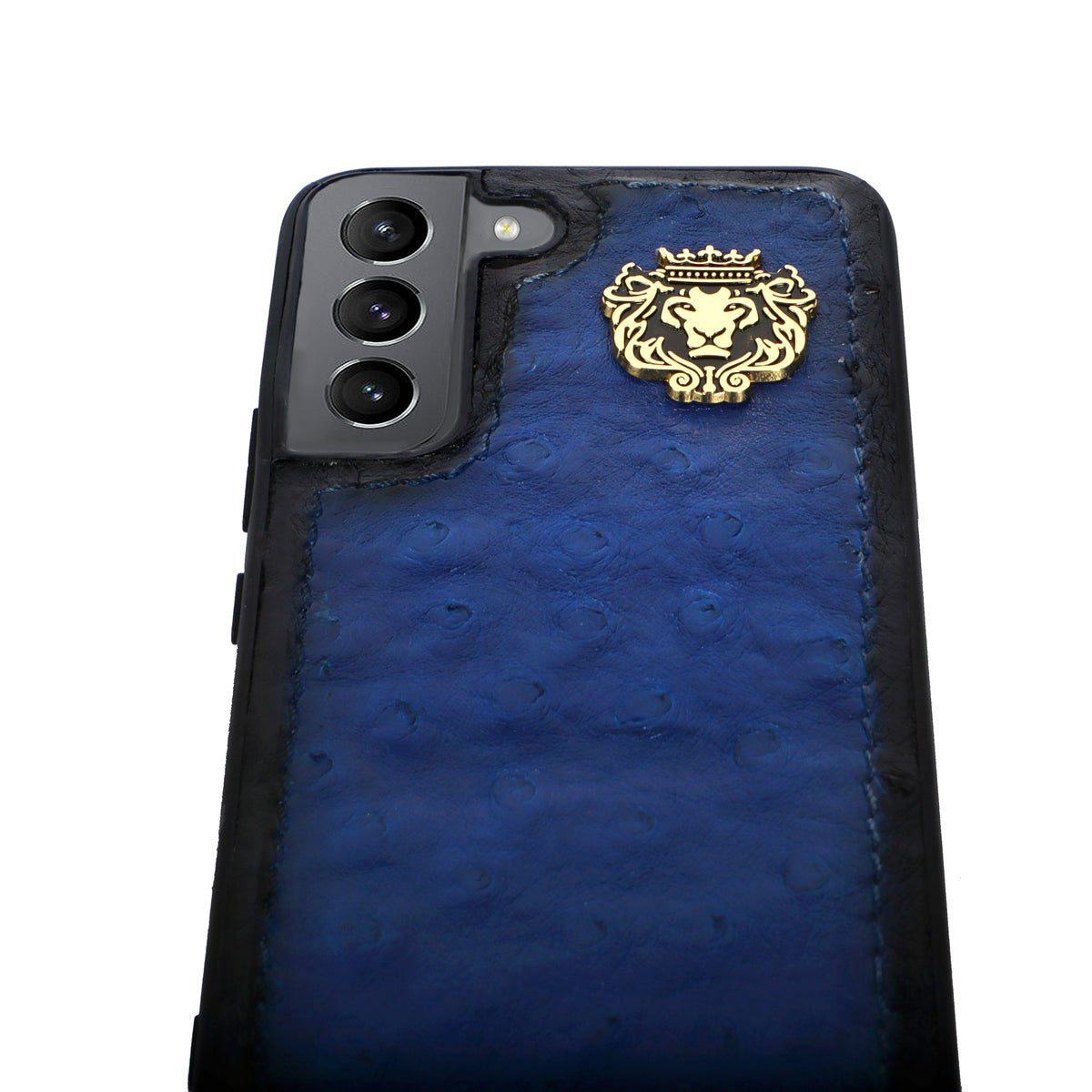 Ostrich leather is a luxurious and durable material that is commonly used in high-end mobile phone covers. Brune & Bareskin special Ostrich blue leather Samsung mobile cover is made to give you a completely elegant look. The quality of the leather cover ranks high on durability and style factors. The latest Samsung Ultra series real ostrich blue leather mobile covers are made to give you an extra style edge. The elegant mobile cover you would love to have. The metal lion logo leaves a remarkable mark of style. The hand-stitched around the border provides more rigidity. 100% authentic ostrich leather is a mobile cover you would love to have.