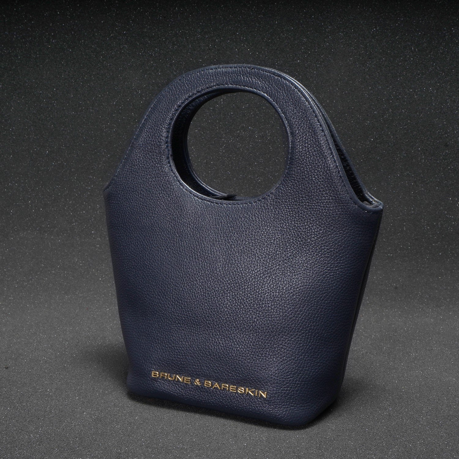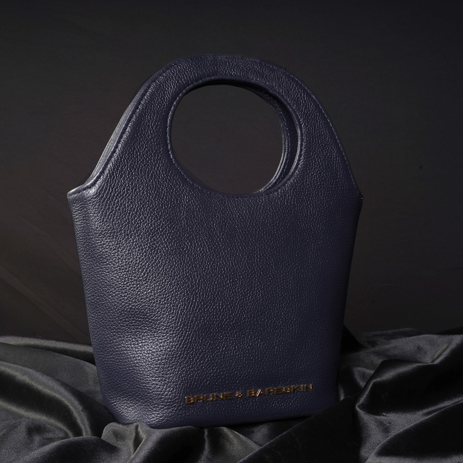 Blue Pebbled Leather Handbag with Loop Handle
