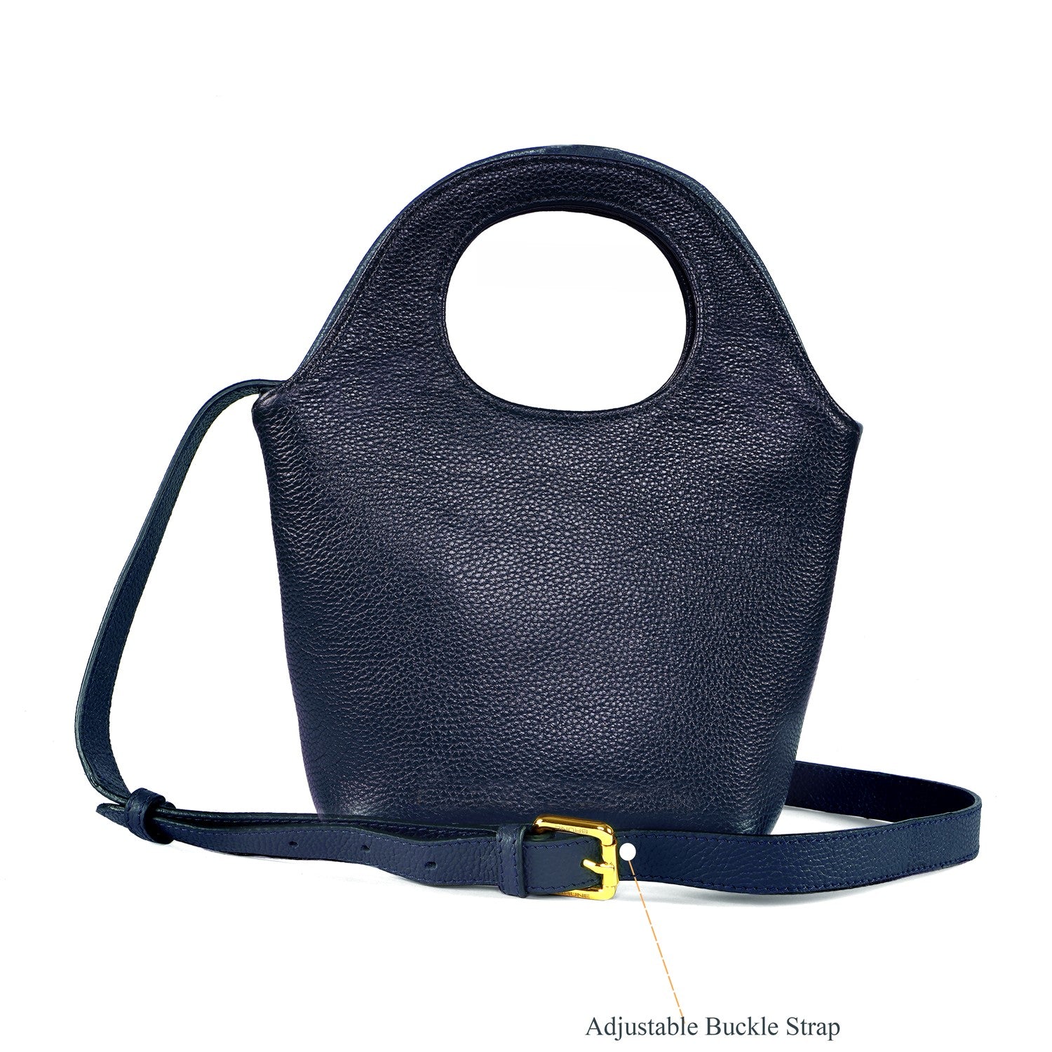 This elegant blue pebbled leather handbag combines style and durability with its rich, textured surface that resists wear while adding a luxurious feel. It features a distinctive loop handle for a comfortable grip and a stylish touch, paired with a secure dog hook fastening for added functionality. The golden zip closure not only ensures your belongings stay safe but also enhances the overall aesthetic with a hint of sophistication. Designed for both everyday use and special occasions, this handbag strikes the perfect balance between practicality and timeless elegance.