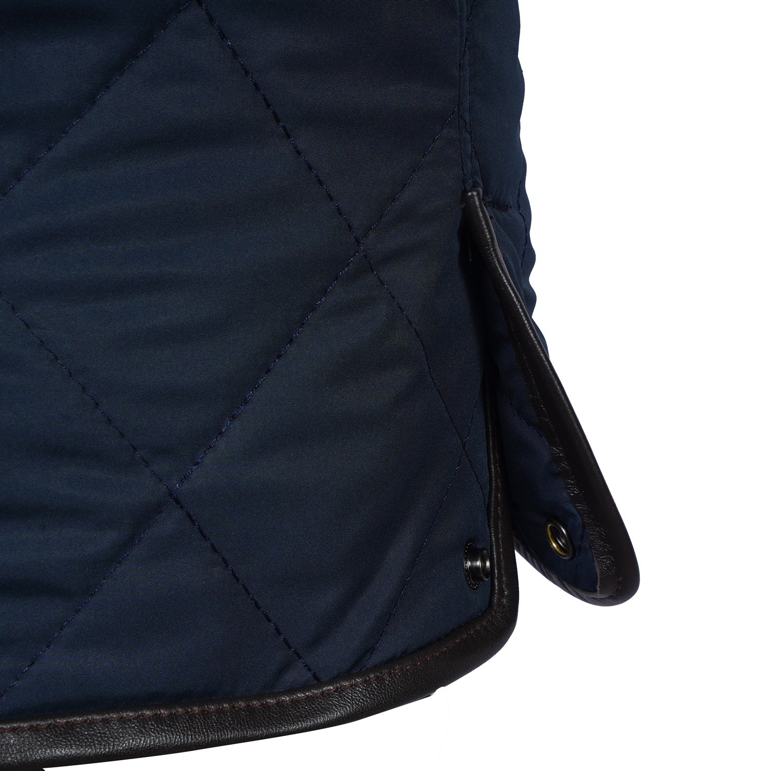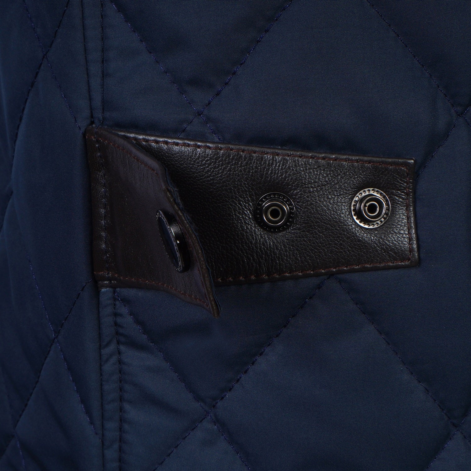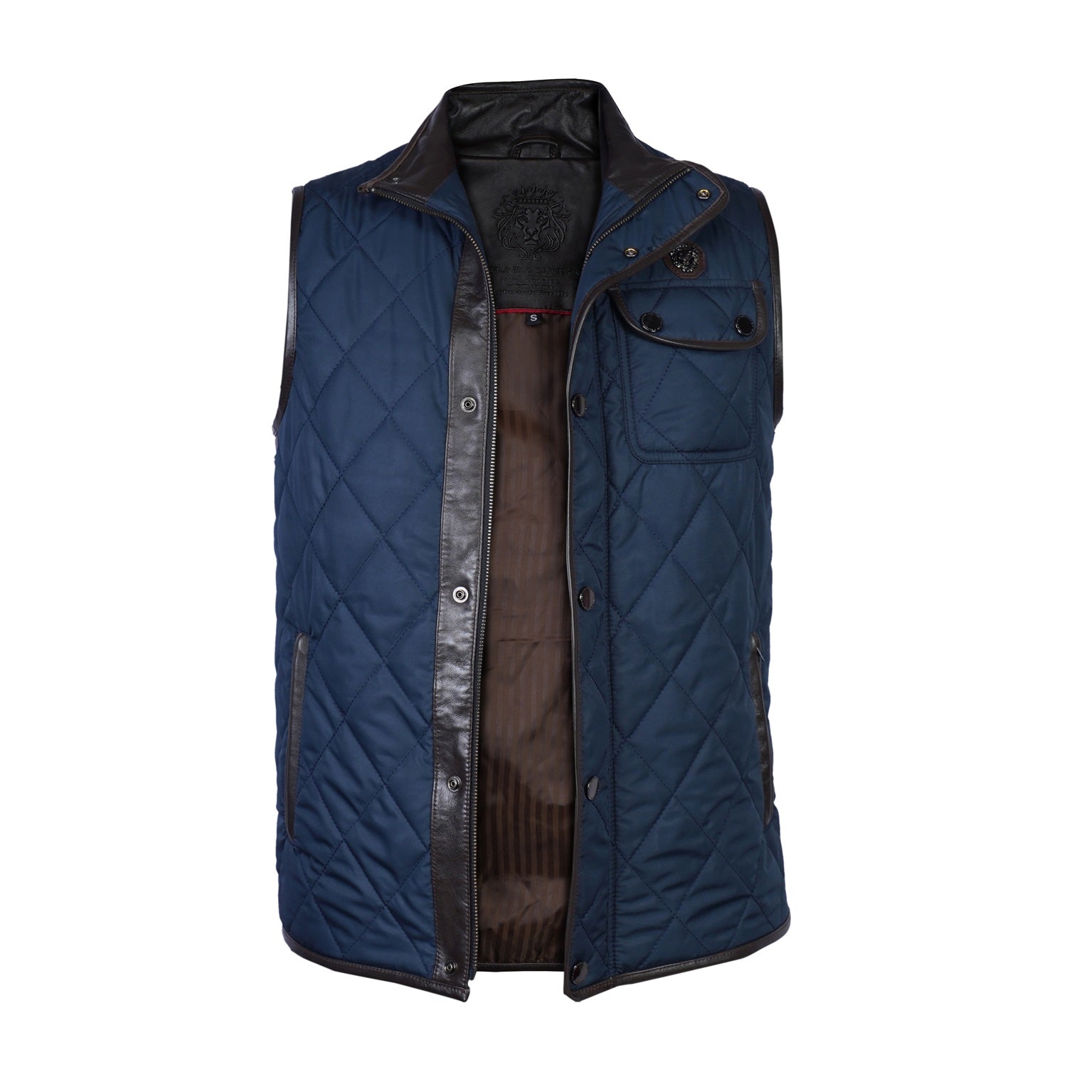 Look sophisticated and exclusive with this quilted, luxurious puffer vest. This men's puffer vest from Brune & Bareskin is perfect for any outdoor adventure. With its blue color, diamond stitched pattern, and contrasting leather trims, this vest looks great, plus it's water-resistant and warm. It also features a stand-up style collar with front buttoned over hidden zipper closure, one Chest Pocket, two front waist pocket with an additional side entry pocket. Conquer every challenge with style.