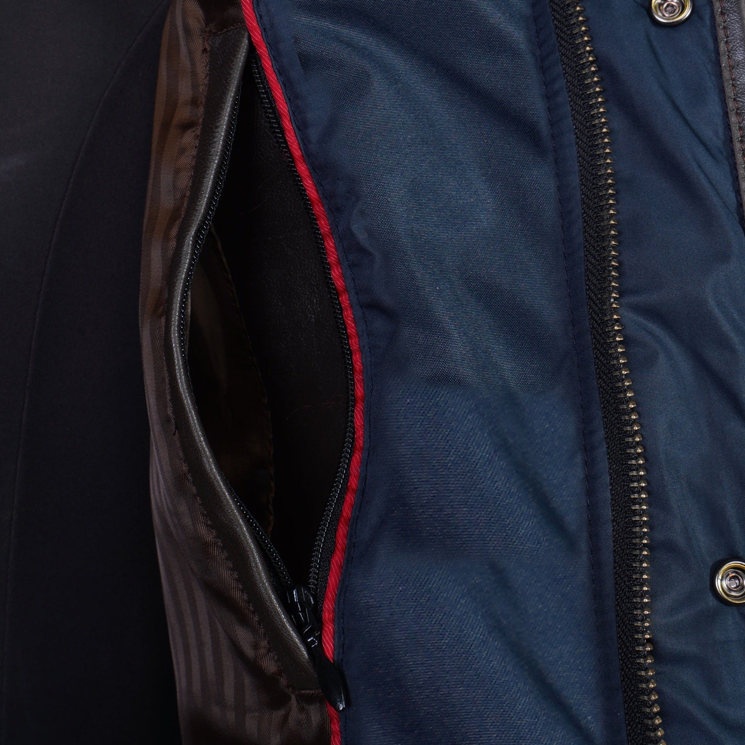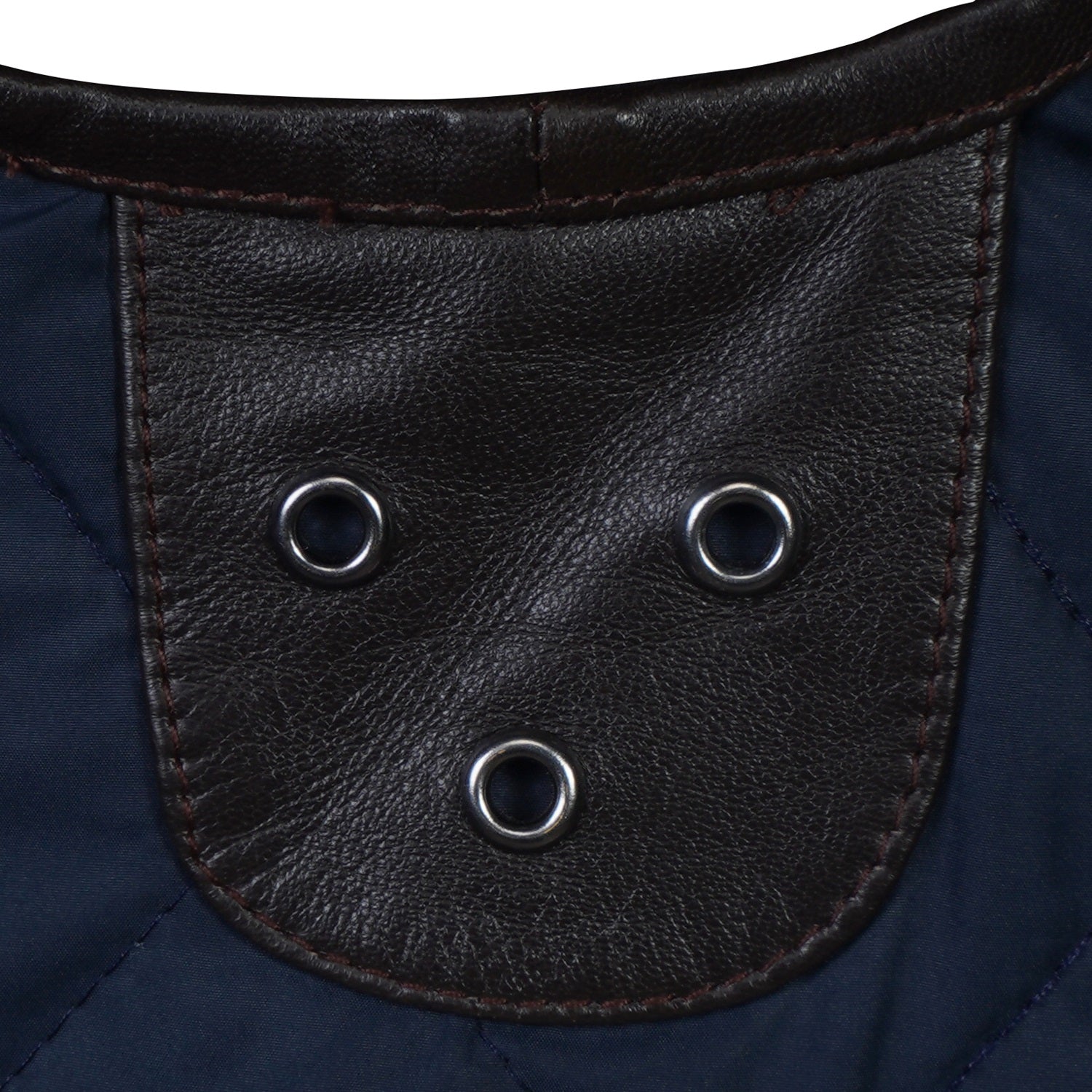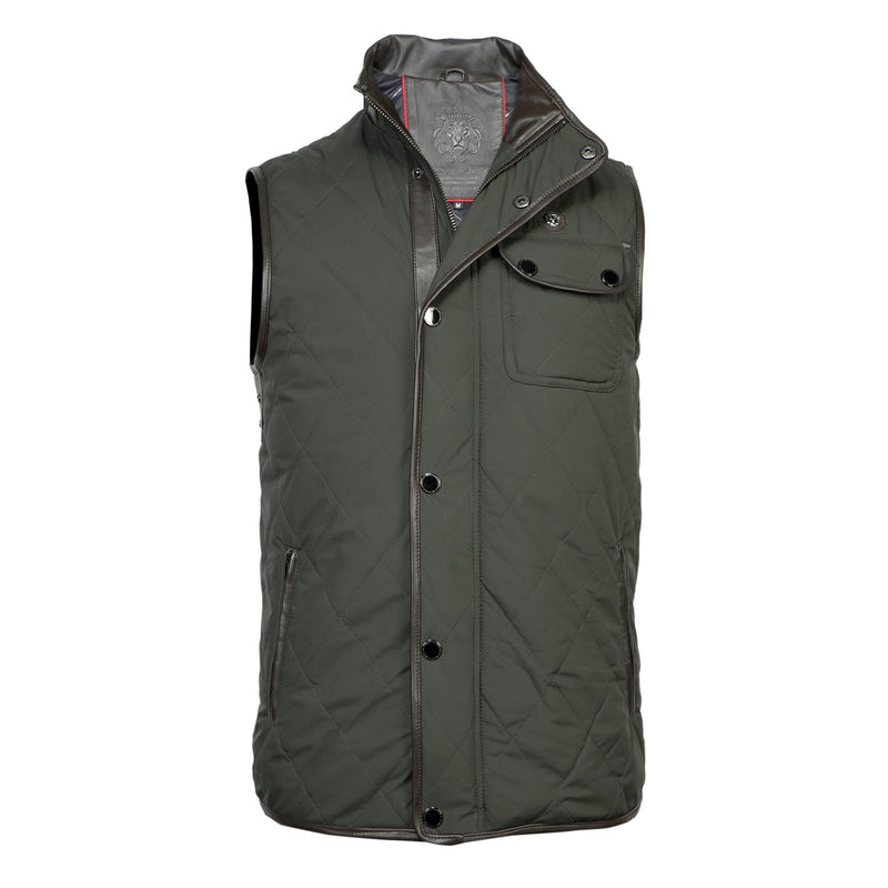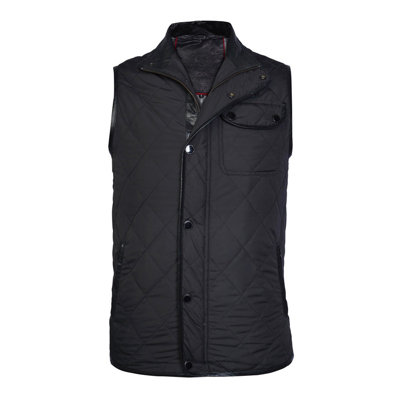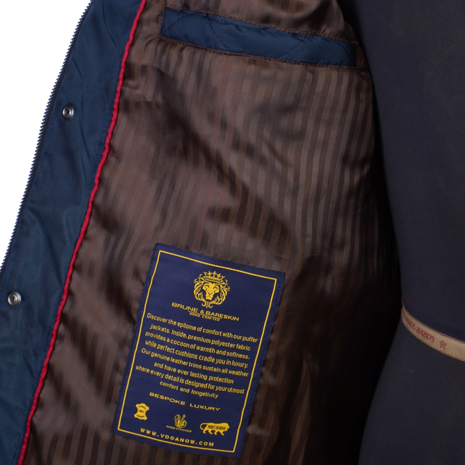 Look sophisticated and exclusive with this quilted, luxurious puffer vest. This men's puffer vest from Brune & Bareskin is perfect for any outdoor adventure. With its blue color, diamond stitched pattern, and contrasting leather trims, this vest looks great, plus it's water-resistant and warm. It also features a stand-up style collar with front buttoned over hidden zipper closure, one Chest Pocket, two front waist pocket with an additional side entry pocket. Conquer every challenge with style.