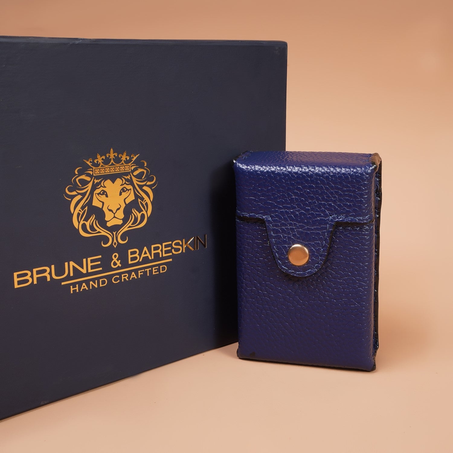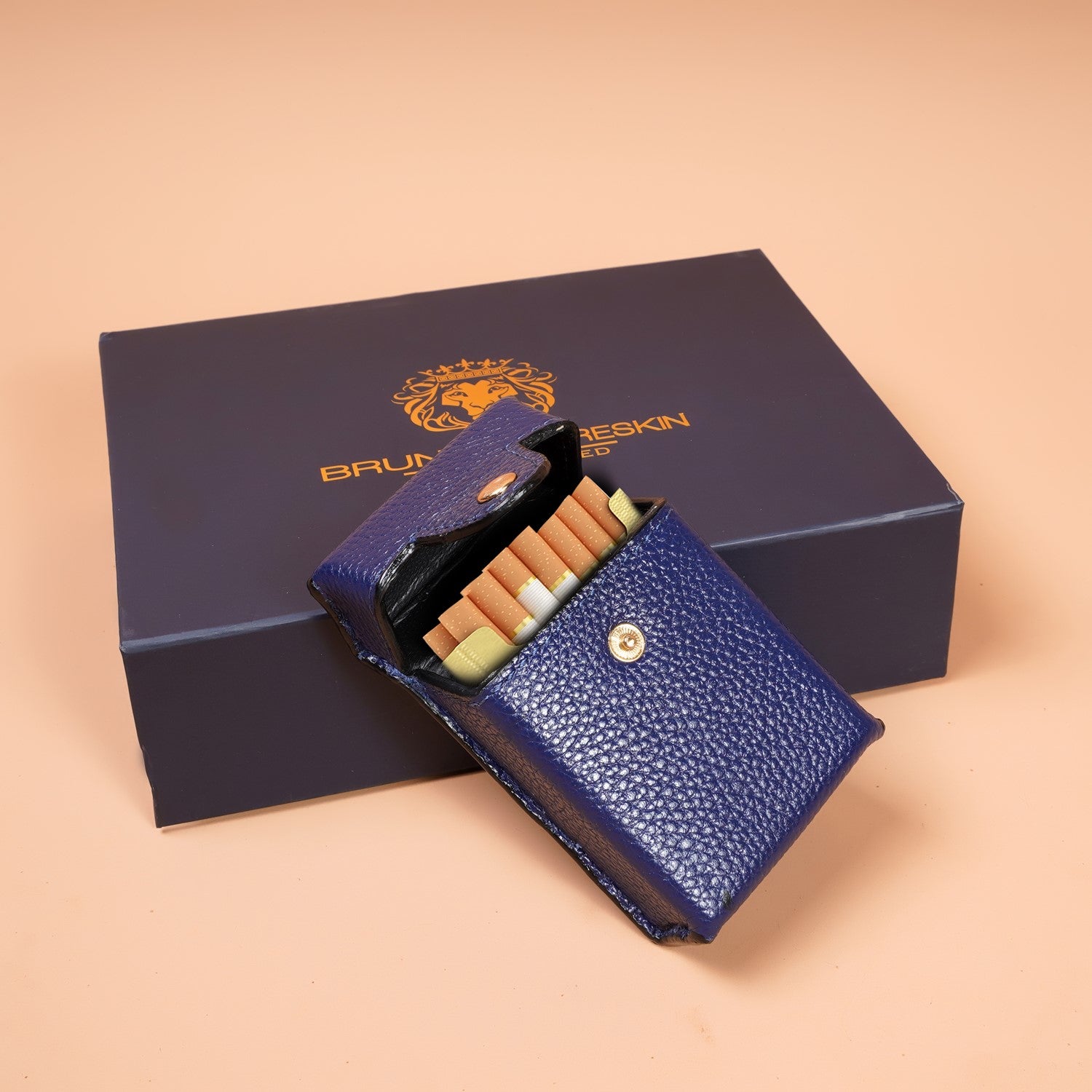 Blue Textured Leather King Size Cigarette Carrying Case exudes refined sophistication, handcrafted from premium pebbled blue full-grain leather that offers a tactile, rugged texture for distinctive grip and a patina that deepens with use, perfectly suited for Brune & Bareskin's luxury ethos.