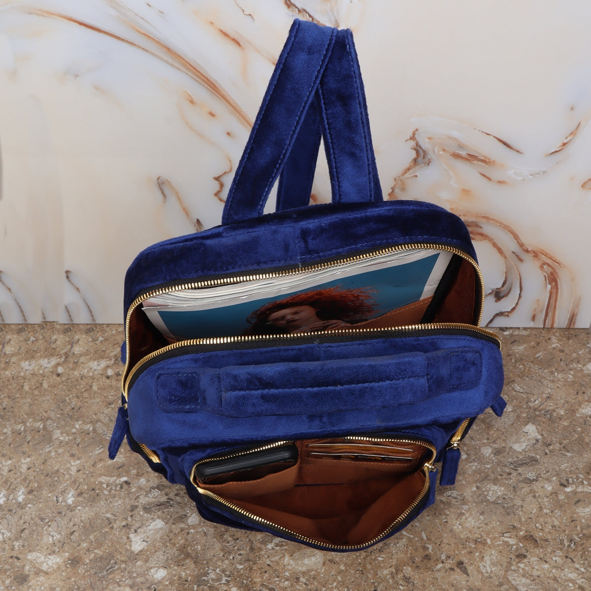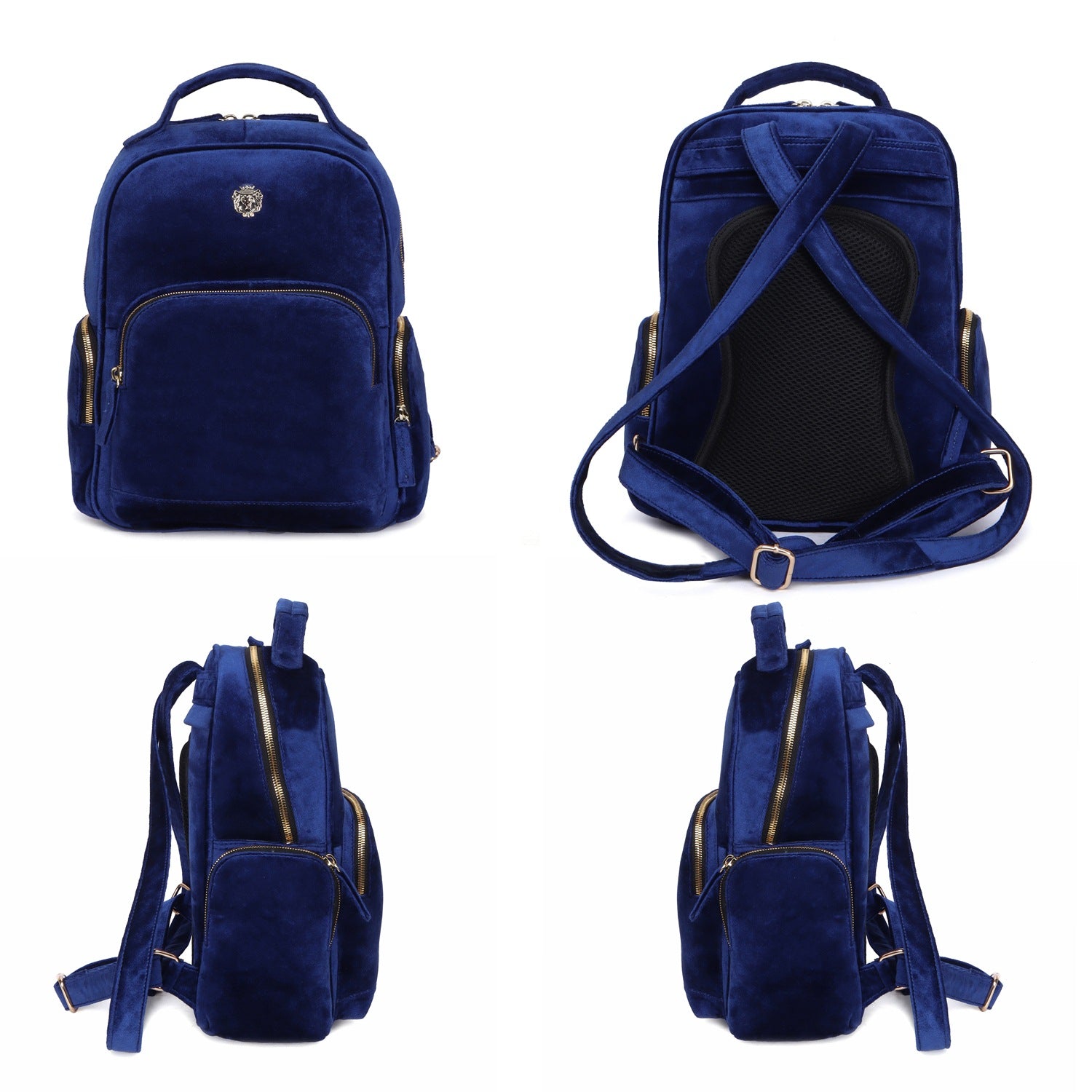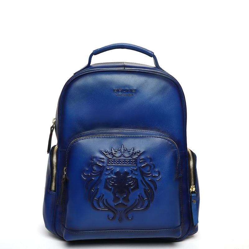 Blue Velvet Women's Backpack Multi-Step Pockets Signature Lion Logo By Brune & Bareskin
