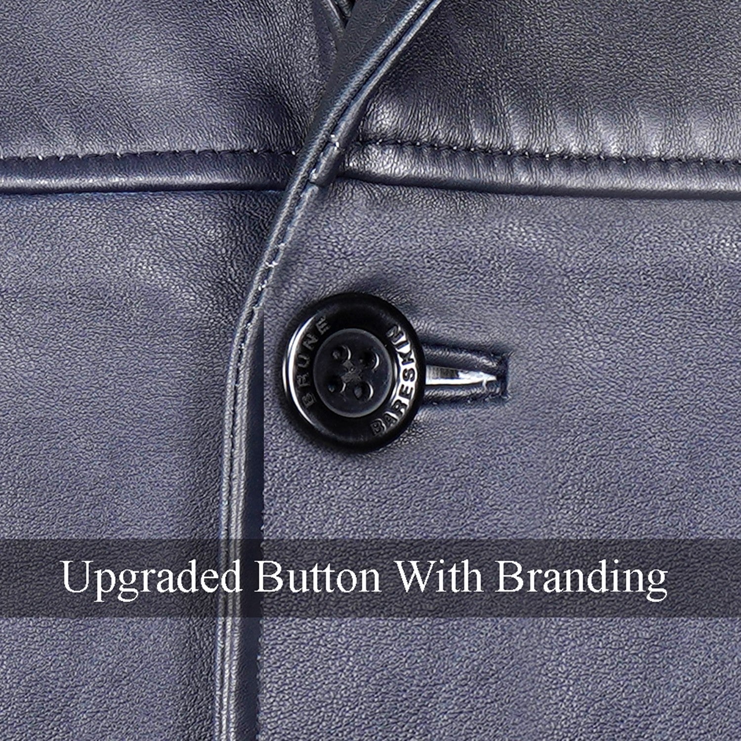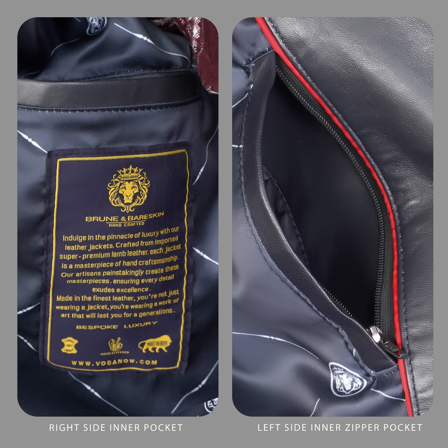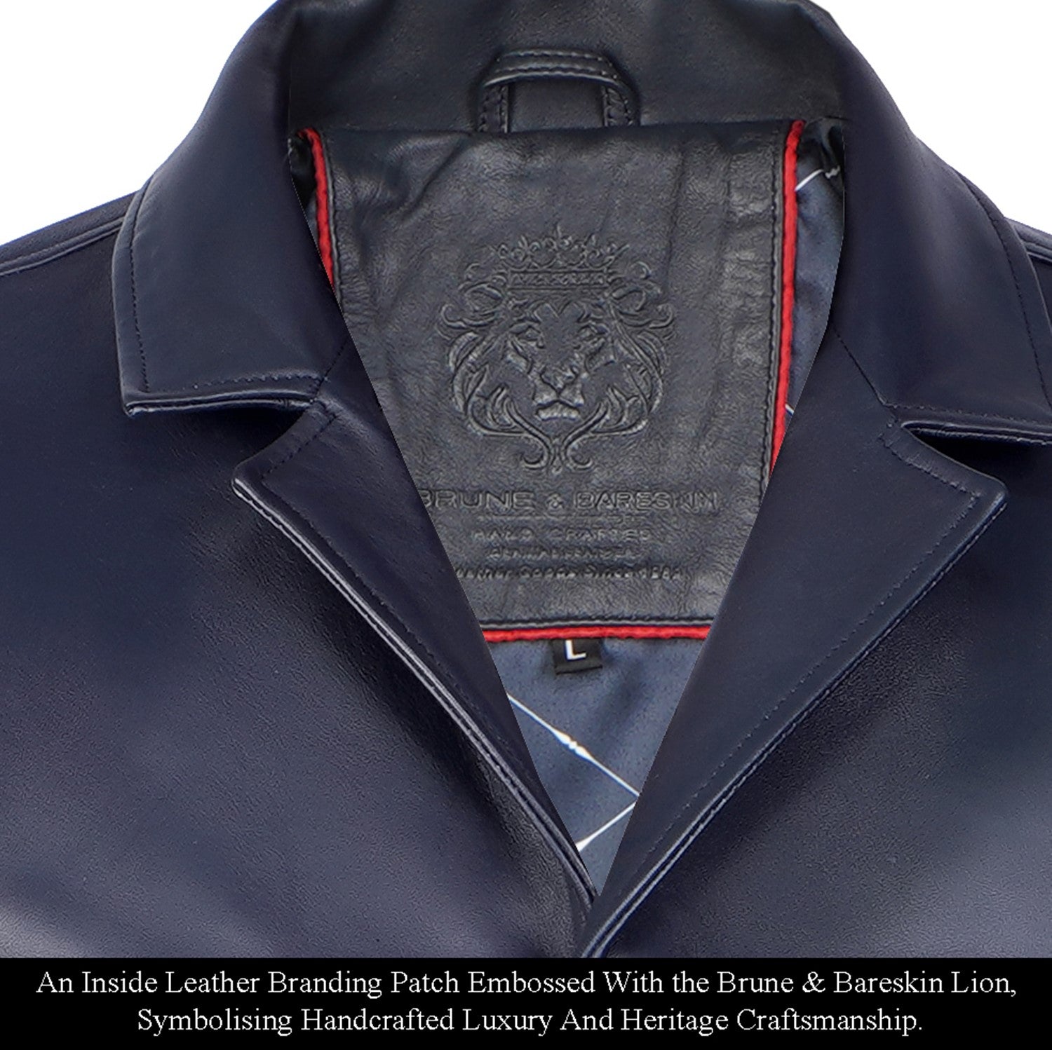 Introducing a luxurious addition to your wardrobe, the Brune & Bareskin Blue Premium Lambskin Leather. Handcrafted this stylish shirt-style jacket features multiple side pockets and a front button closure.