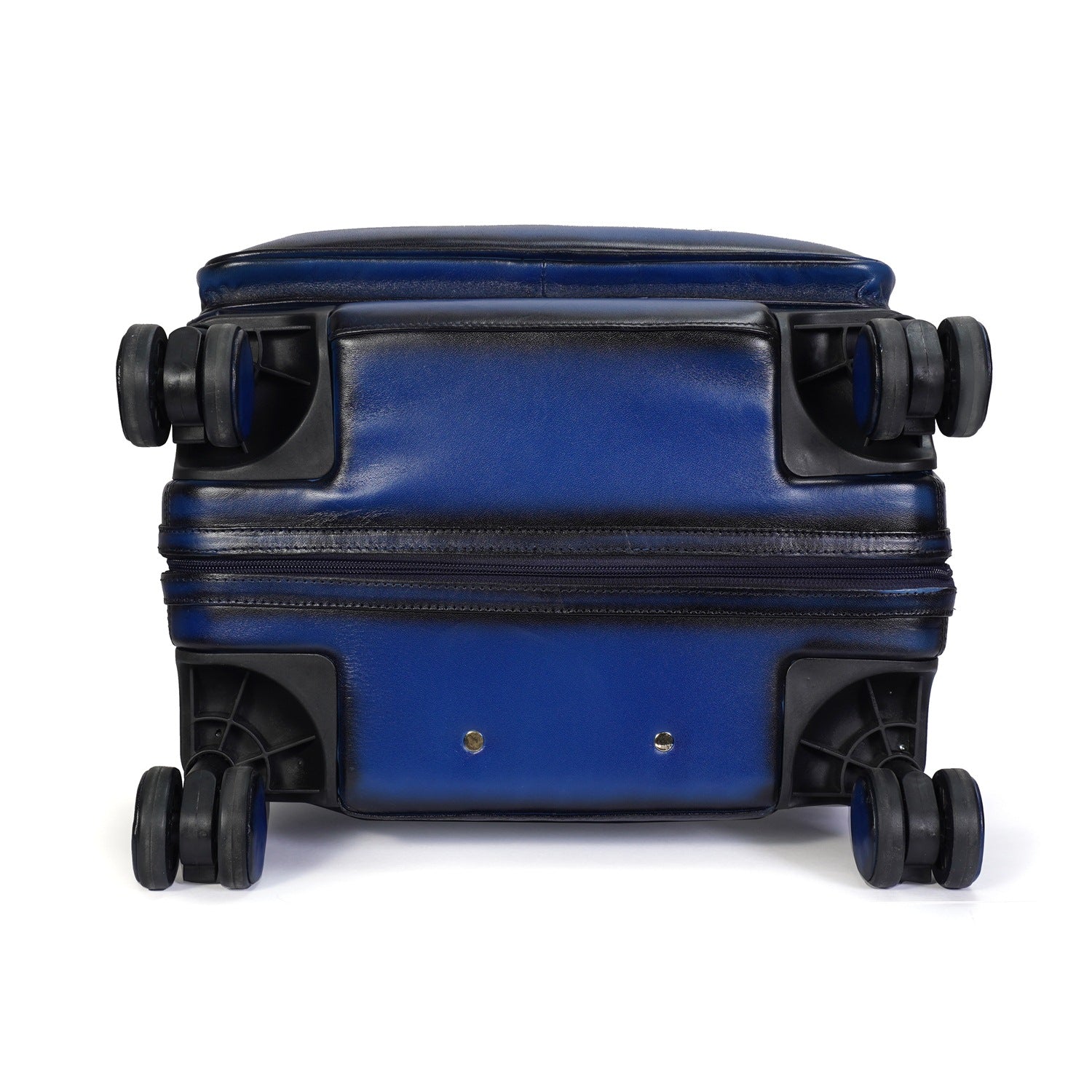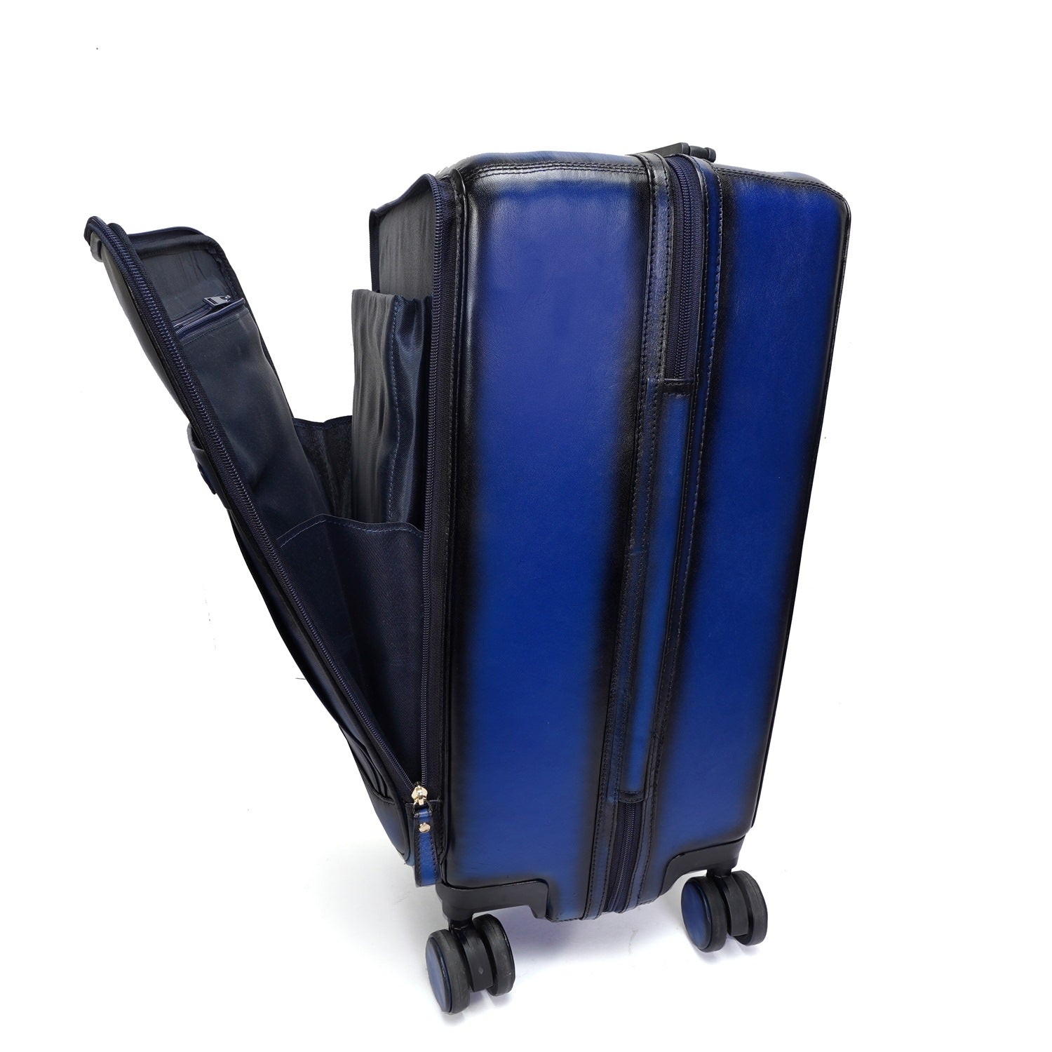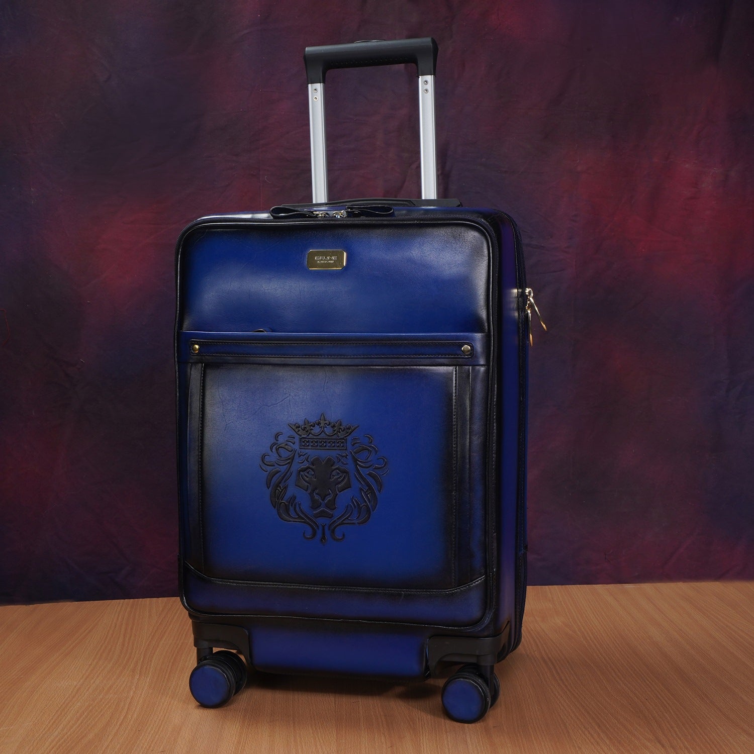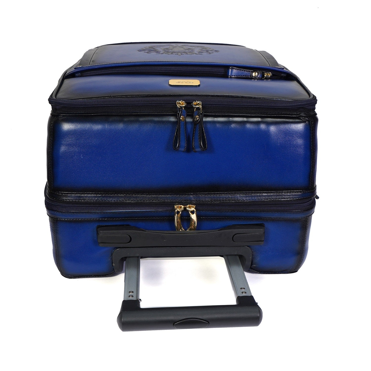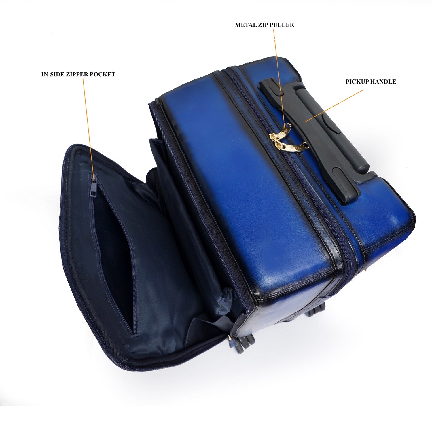 Blue Wheel Leather Strolley Travel Bag With Golden Zipper