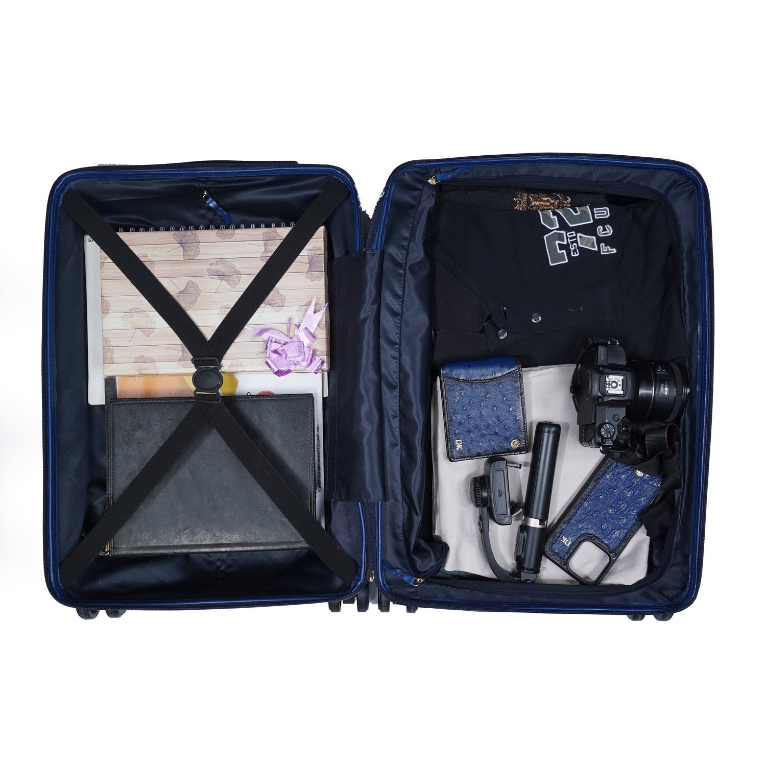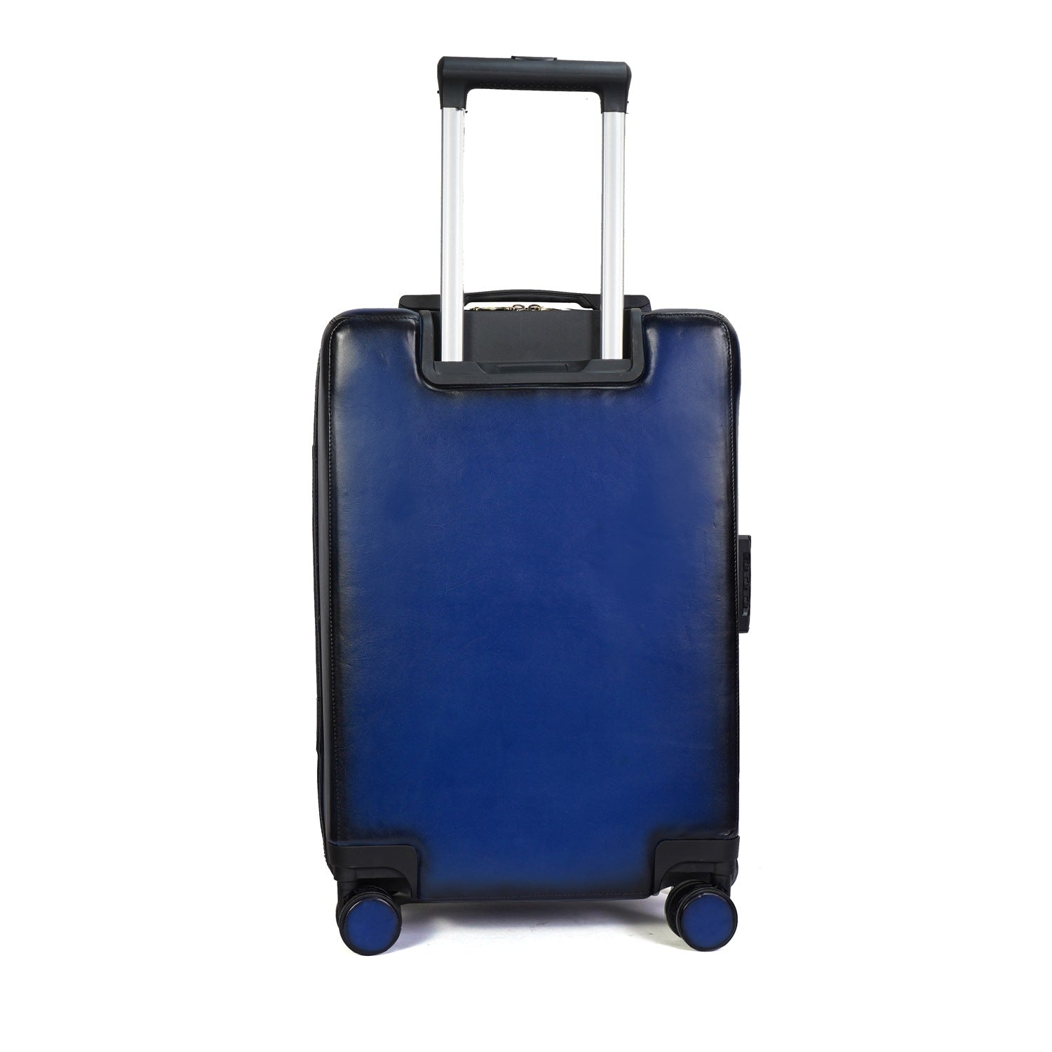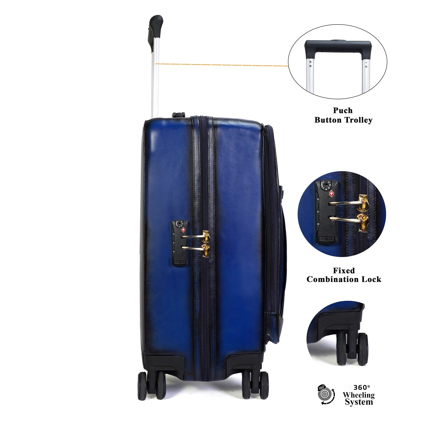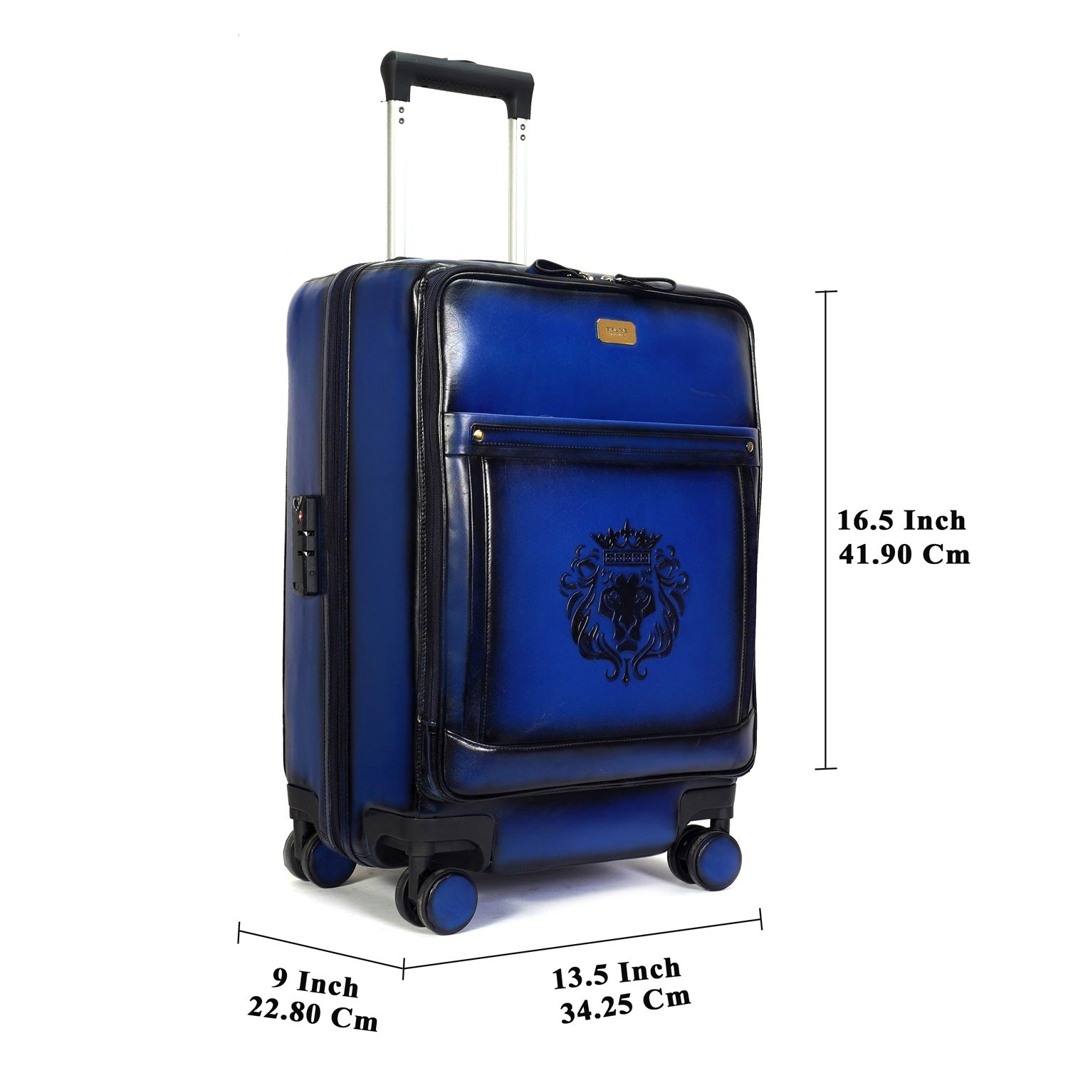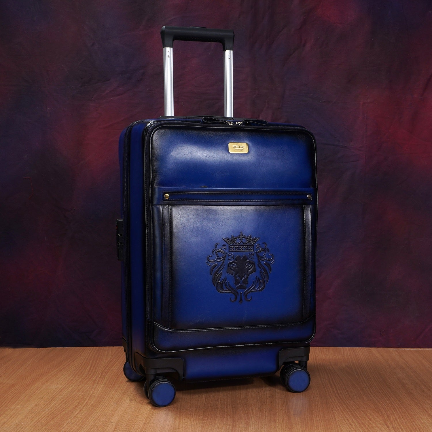 Blue Wheel Leather Strolley Travel Bag With Golden Zipper