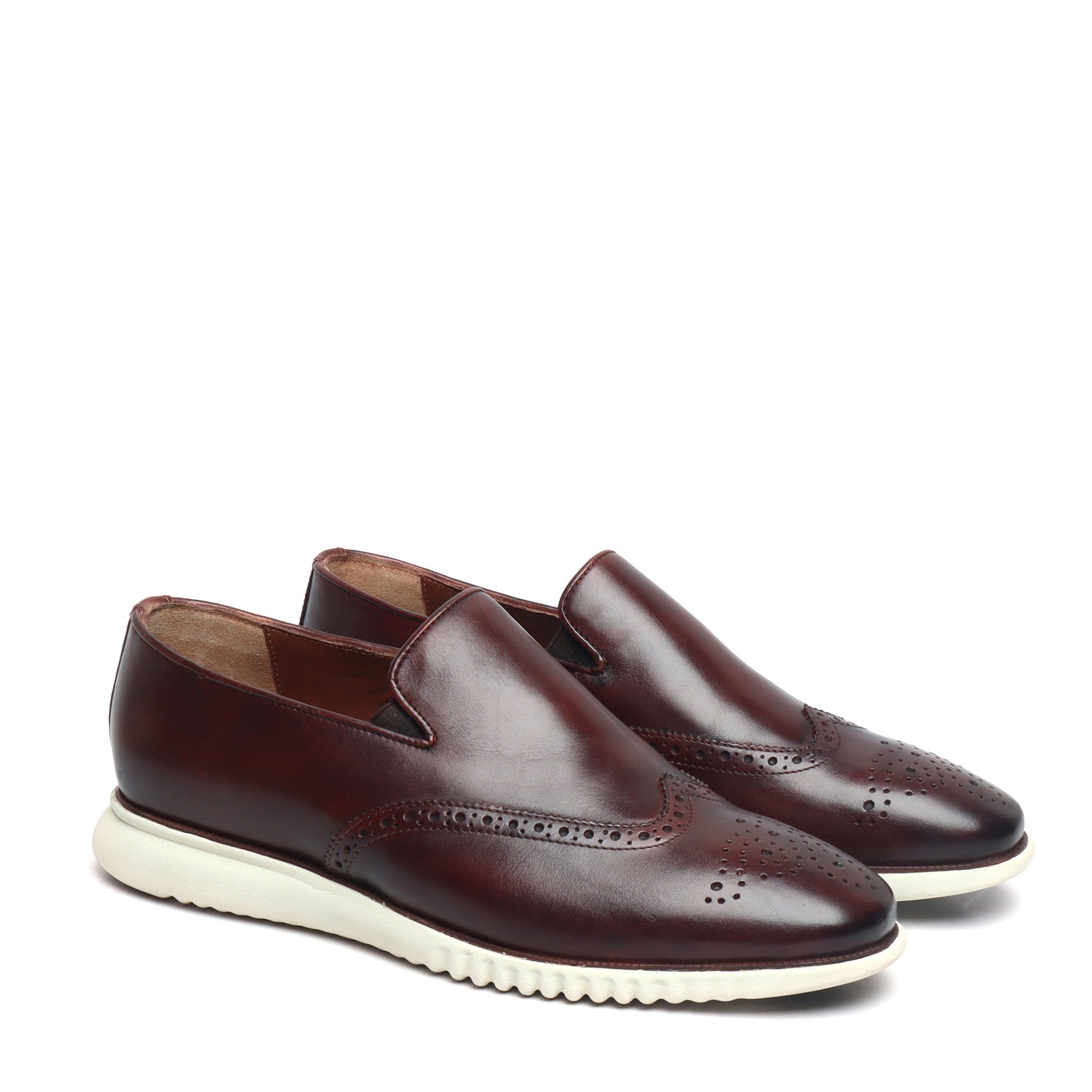Dark Brown Burnished Leather Wingtip Light Weight Loafers By Brune & Bareskin