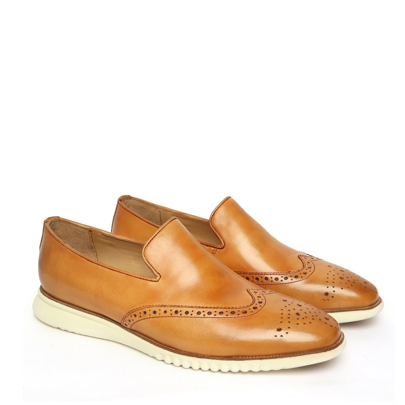 Brown Burnished Leather Wingtip Light Weight Loafers By Brune & Bareskin