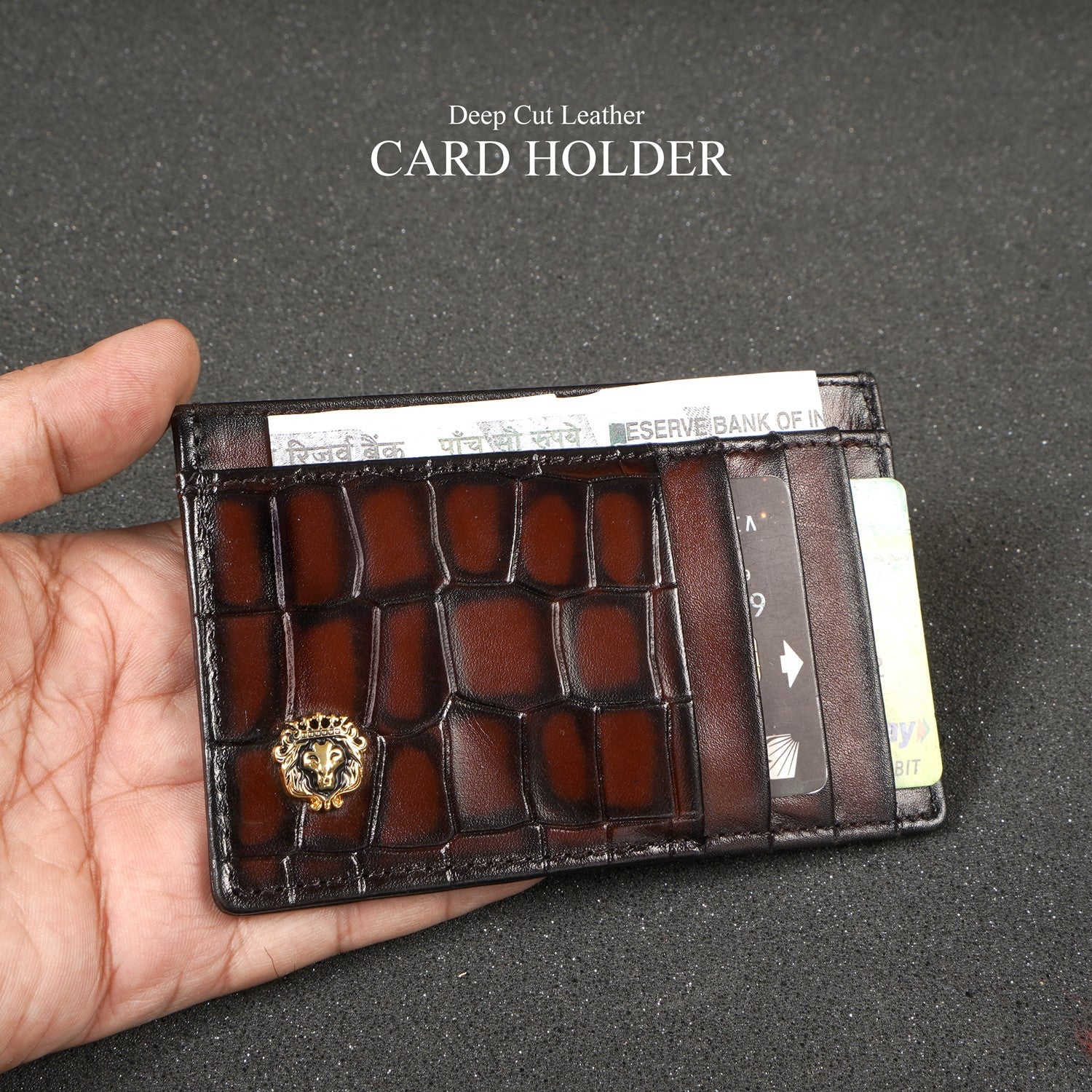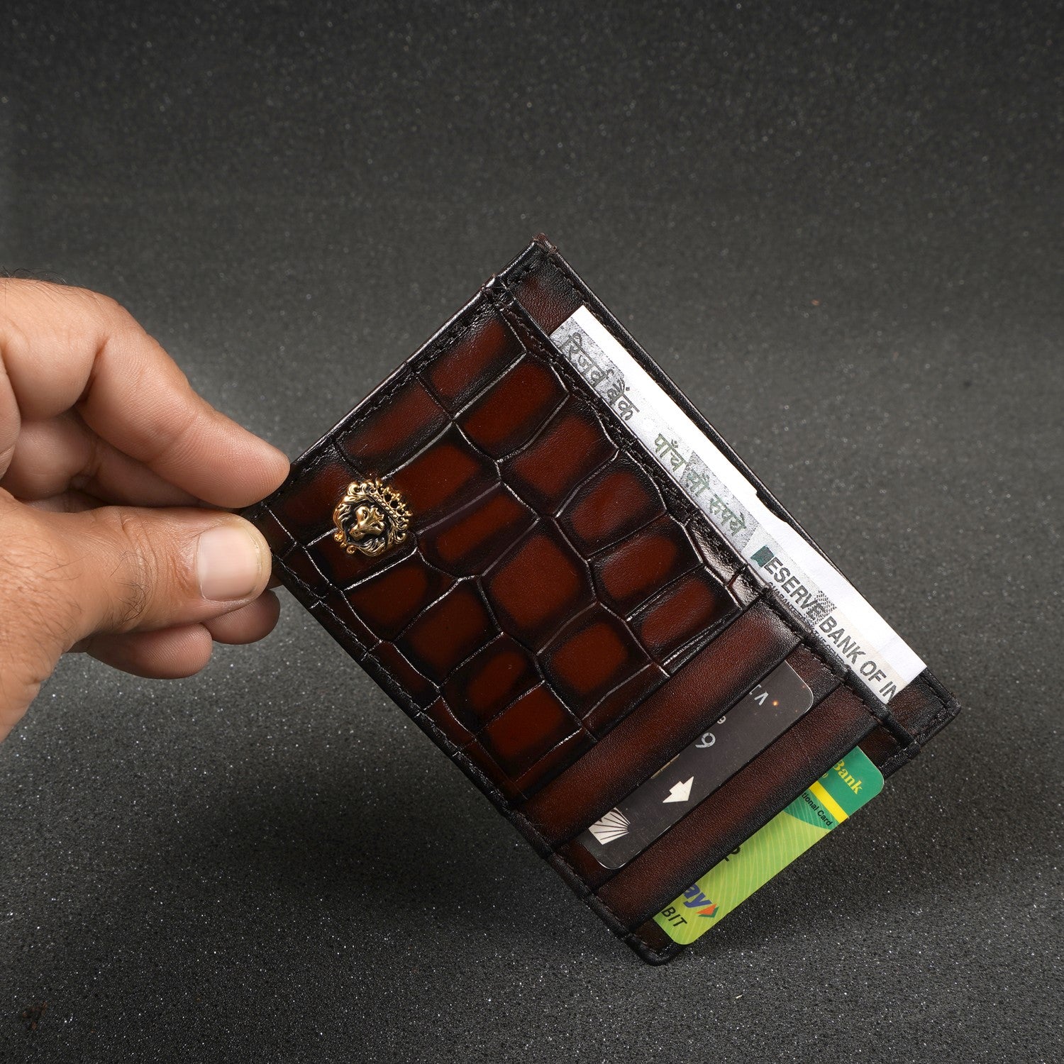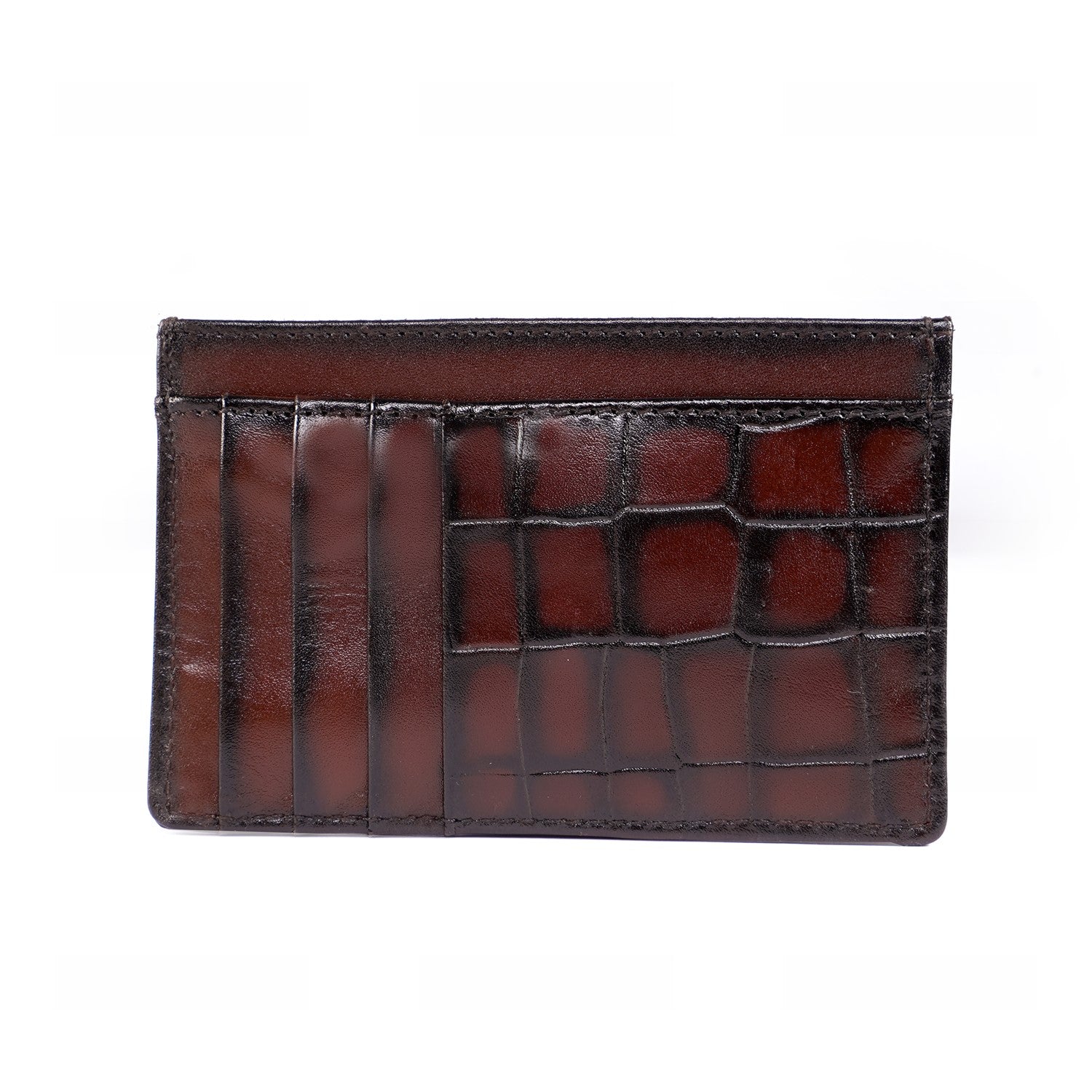 Dark Brown Croco Deep Cut Leather Prolonged Card Holder By Brune & Bareskin