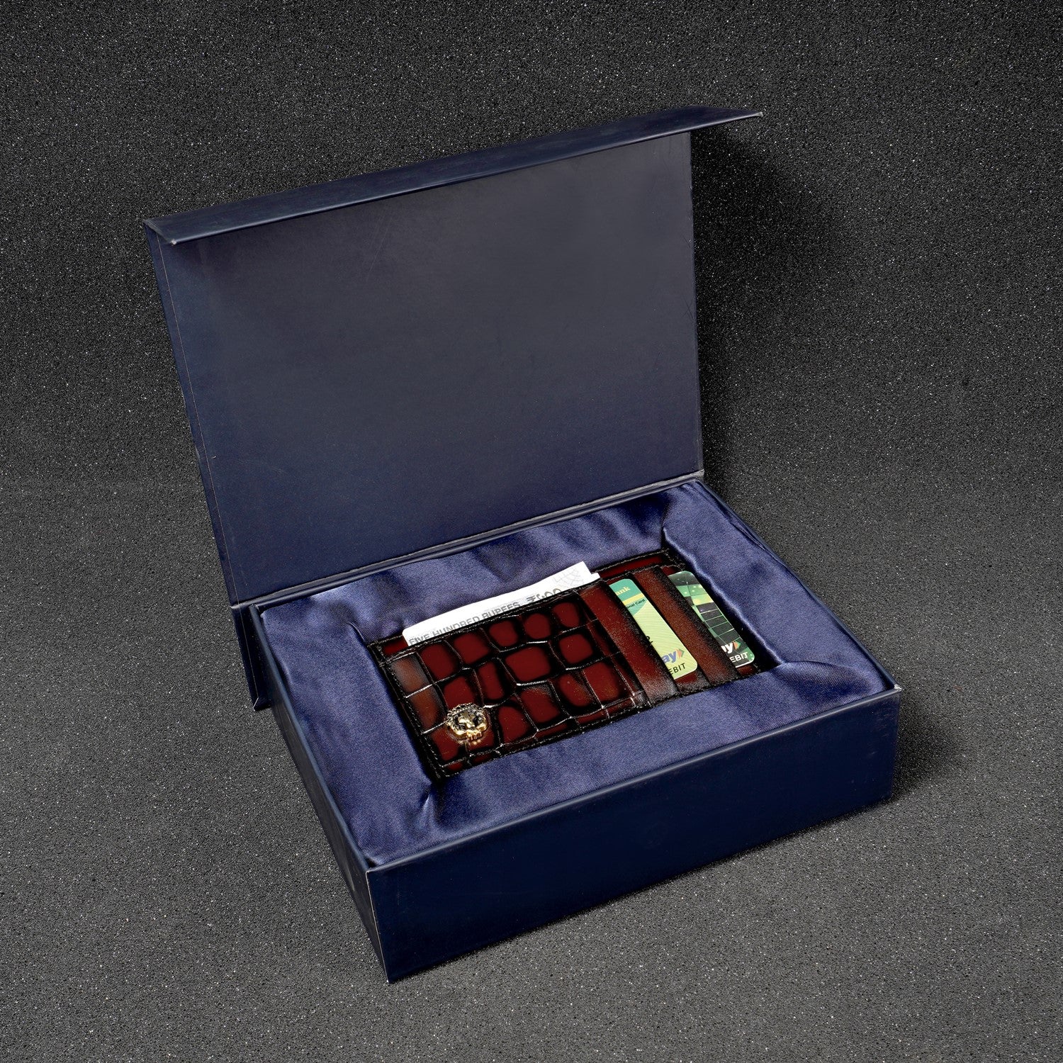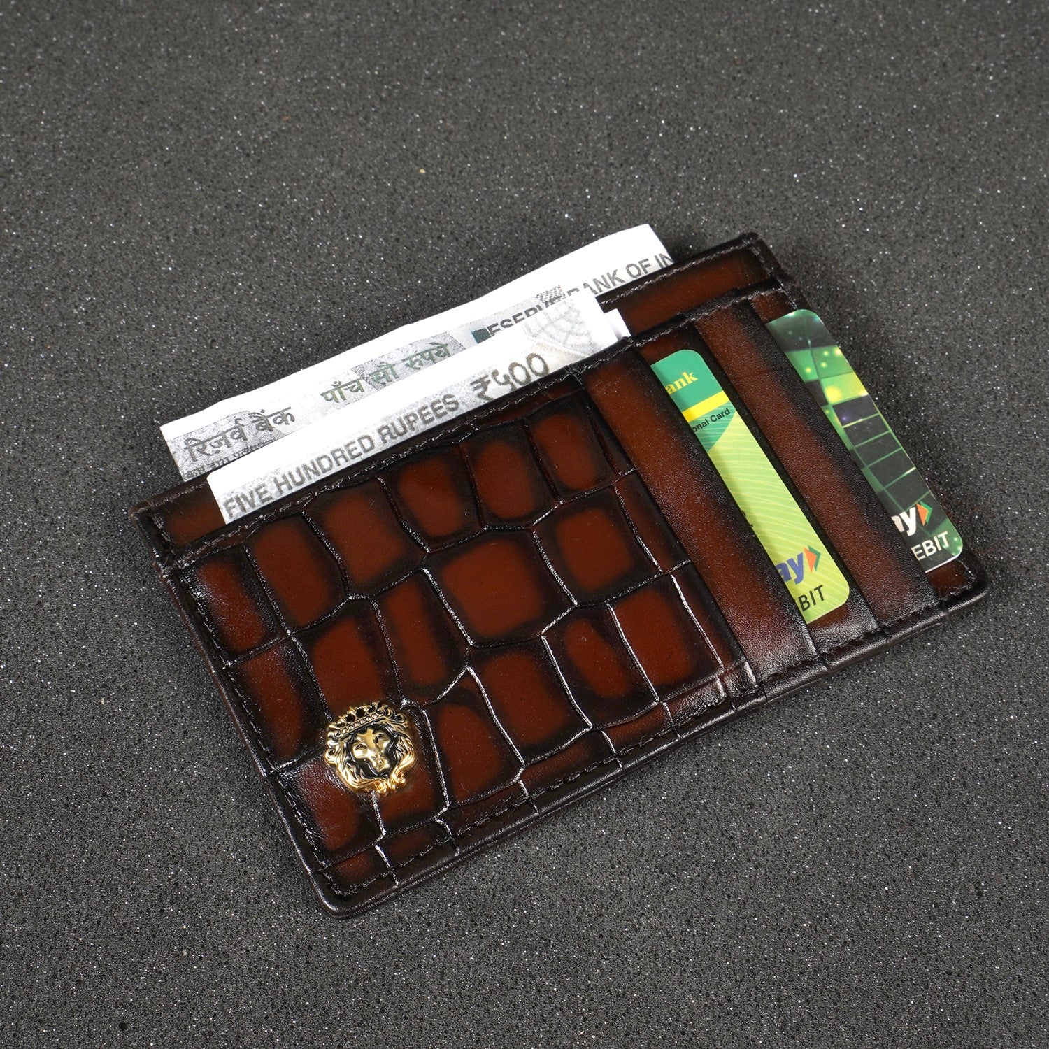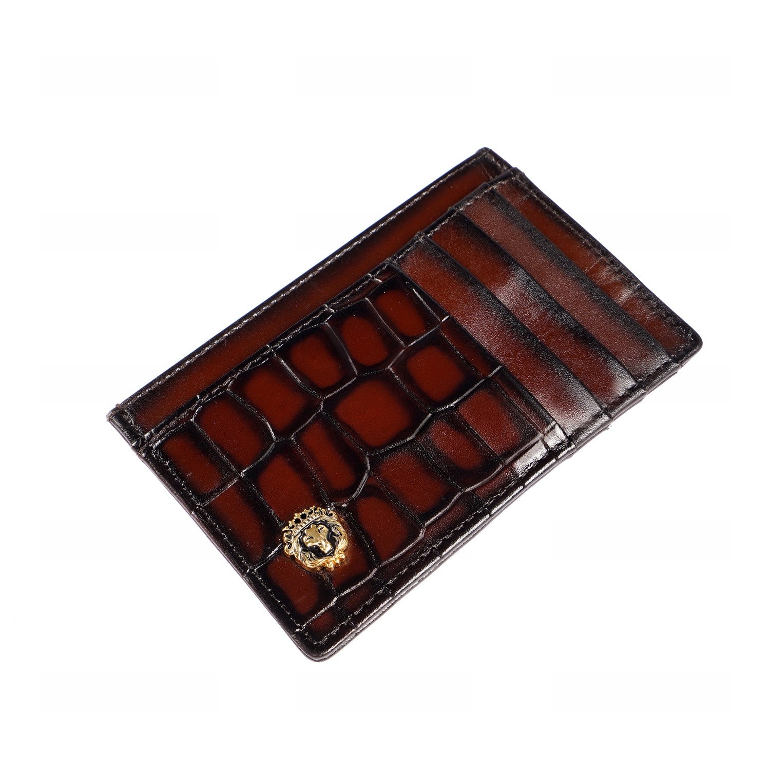 Dark Brown Croco Deep Cut Leather Prolonged Card Holder By Brune & Bareskin