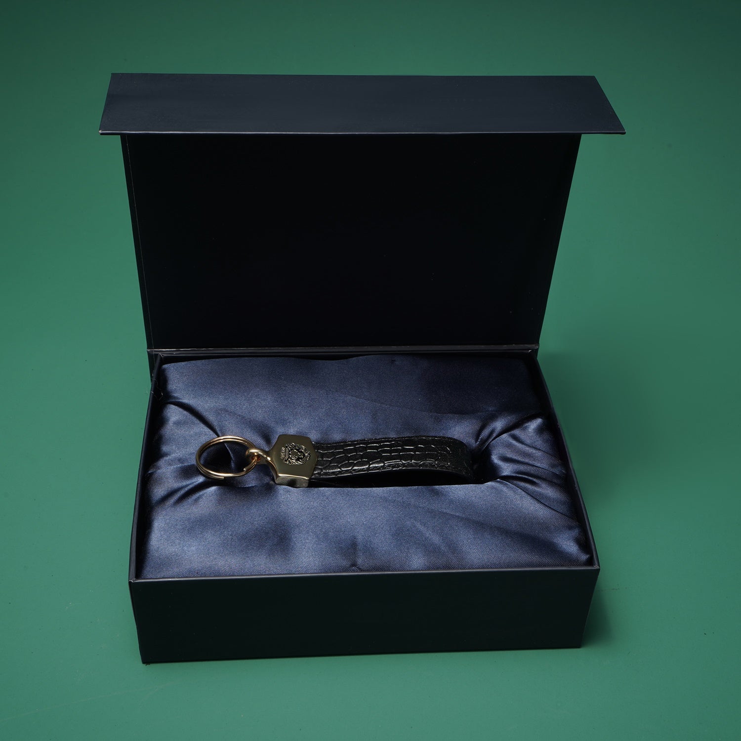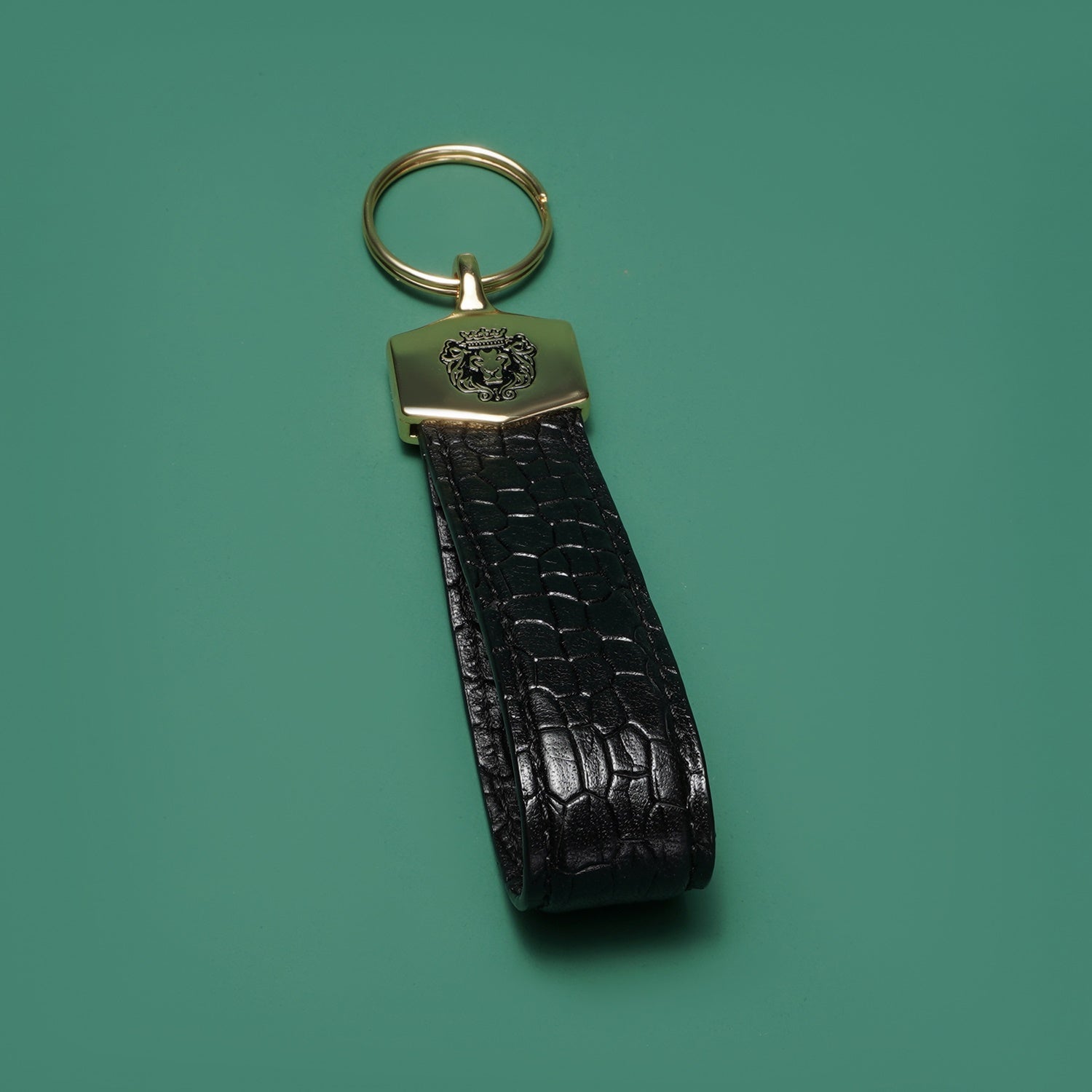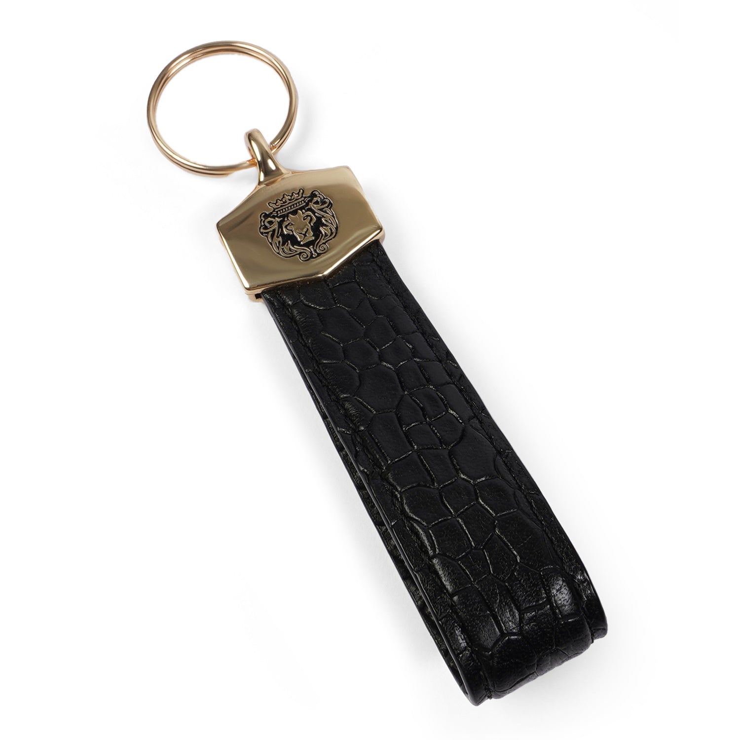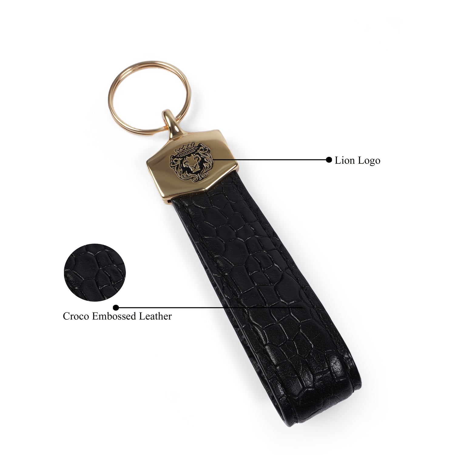Black Croco Embossed Leather Keychain